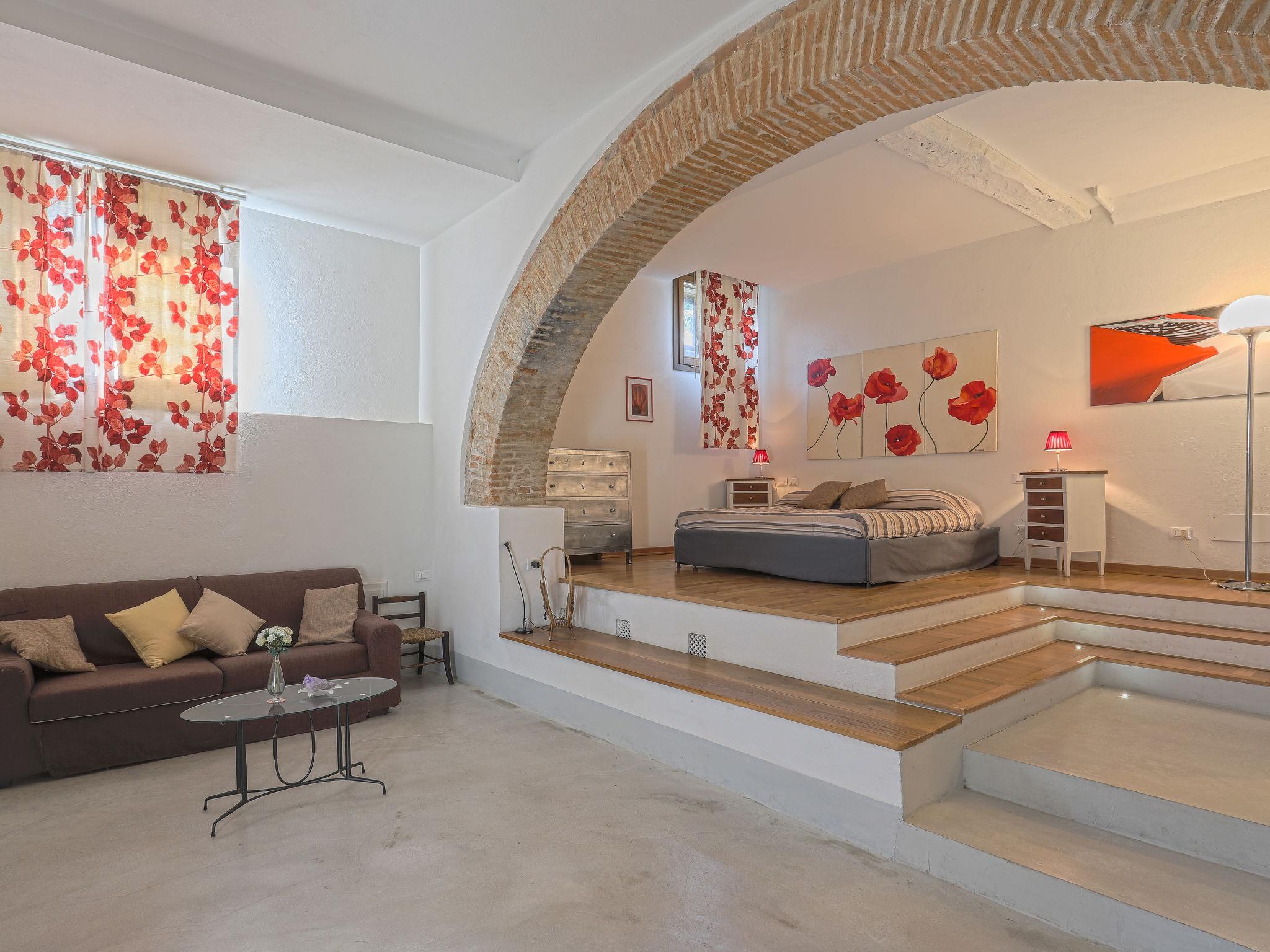 "Lunaria", 2-room apartment 80 m2, on the ground floor. Object suitable for 2 adults + 1 child. Spacious and bright, fully renovated in 2012, very tasteful and stylish furnishings: living/dining room with open-hearth fireplace, dining table, satellite TV and international TV channels (flat screen), hi-fi system. Exit to the garden. 1 open large double bedroom with 1 bed (160 cm), 1 sofabed and shower/bidet/WC. Open kitchen (oven, Gas stove, 6 gas rings, toaster, kettle, freezer, electric coffee machine). Heating (extra). Parquet floors, natural stone floors. Terrace, garden, lawn. Terrace furniture, barbecue, deck chairs (2). Beautiful panoramic view of the countryside. Facilities: washing machine, mosquito net, children's high chair, baby cot for up to 2 year olds, hair dryer. Internet (WiFi, free). Parking space n 1 (1 car). Please note: suitable for families. Non-smokers only. Maximum 1 pet/ dog allowed. Private entrance. No mandatory extra charges to be paid on-site except for local tax. Bedlinen, towels, final cleaning and all energy costs are included. IT051005B5TMGPXWX