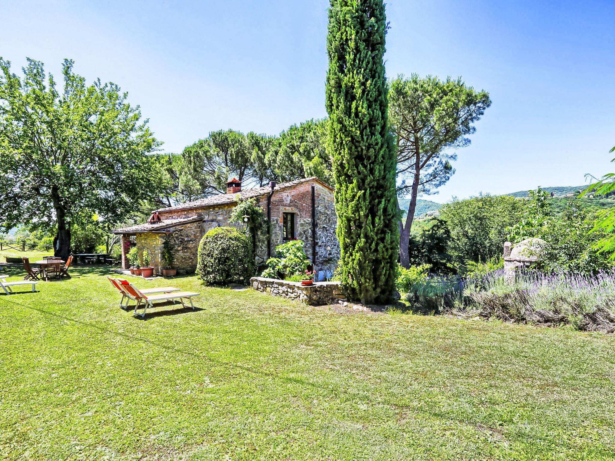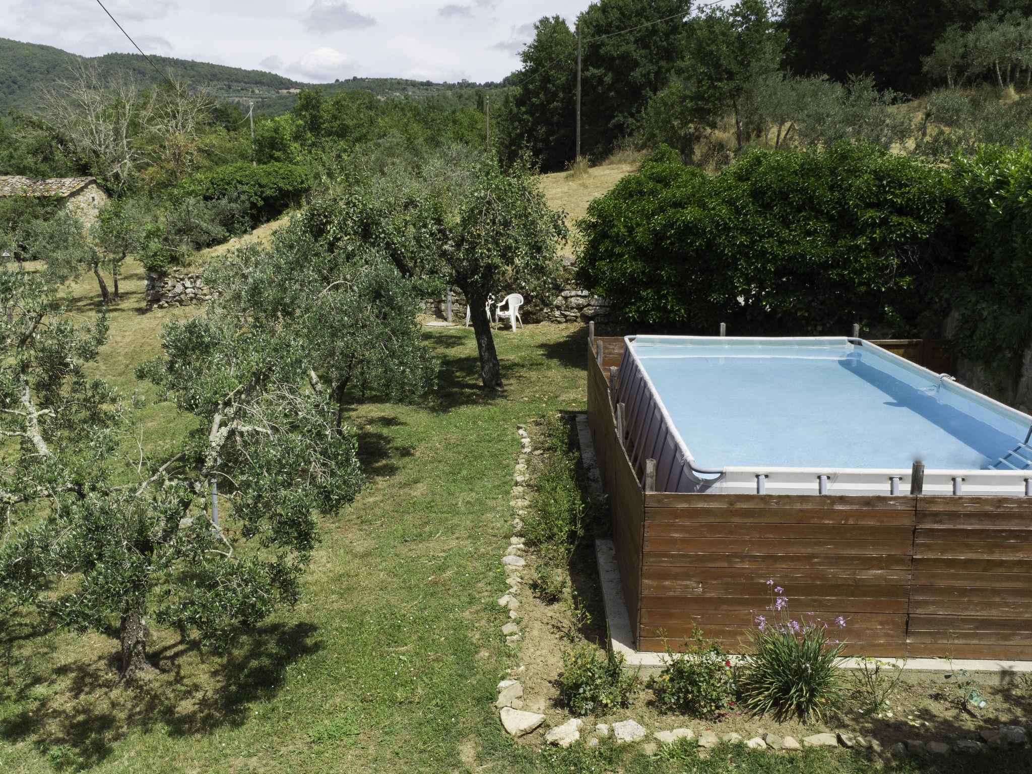Lamone 1 km from Ambra: Characteristic farmhouse in a quiet location, located in an area of castles (Cennina, Lupinari, Gargonza) with panoramic views of the typical Tuscan countryside. Ideal for those seeking absolute relaxation but also for those who love the wild nature and make excursions to the famous Tuscan art cities, finding the house in the center of the Florence-Siena-Arezzo cultural triangle. The property is furnished with typical Tuscan furniture. Very large and well equipped outdoor areas for outdoor dining. Very old, child friendly, cosy country house "Il Lamone", surrounded by trees and meadows. 30 km from the centre of Arezzo, 35 km from the centre of Siena, 60 km from the centre of Firenze, in a secluded, quiet, sunny position, in the countryside. For shared use: property 4 ha. Private: property, large garden 2 ha, swimming pool (above ground) (7 x 3 m, depth 125 - 125 cm, seasonal availability: 27.Apr. - 30.Sep.). Garden furniture, barbecue, pool maintenance by the owner/gardener. In the house: with TV, central heating system, washing machine, heating available only from 01.Nov. - 15.Apr.. Room cleaning on request (extra). Motor access to the house. Parking at the house. Shop, grocery, restaurant 800 m, bus stop "Ambra" 2 km, railway station "Bucine" 9 km. Tennis 4 km, riding stable 5 km. Please note: car recommended.