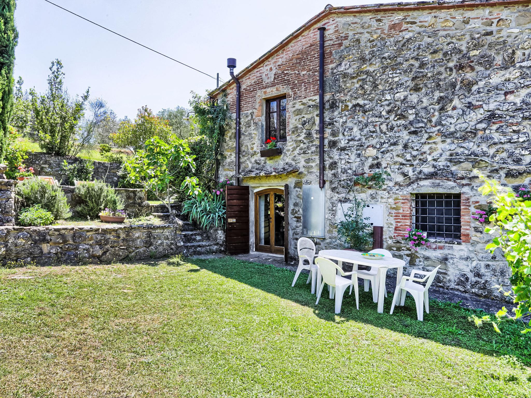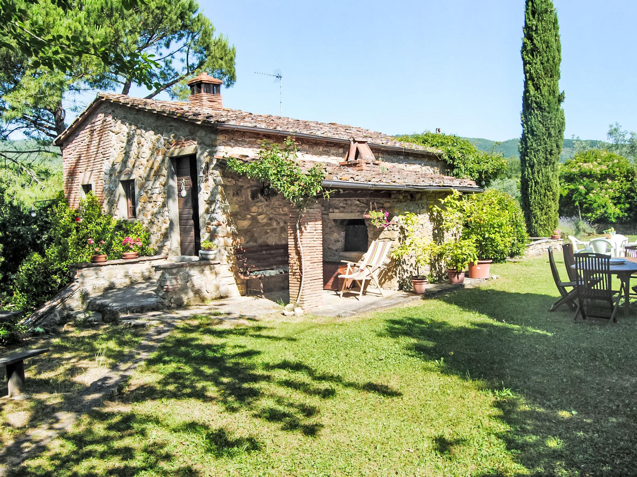 "Il Lamone", 4-room house 140 m2 on 2 levels. Rustic and cosy furnishings: 1 double bedroom. 1 double bedroom. Shower/bidet/WC. Upper floor: living room with 1 sofabed and open-hearth fireplace (only for decoration), satellite TV, radio and CD-player. Exit to the garden. Open dining room with dining table. Kitchen (4 hot plates, oven, toaster, microwave). Large garden. Terrace furniture, barbecue, deck chairs. Panoramic view of the valley and the forest. Facilities: washing machine, iron. Internet (WiFi, free). Parking at the house. Maximum 1 pet/ dog allowed. Timber beams. American coffee machine. Bathroom without window. IT051005C2FER5VDZE