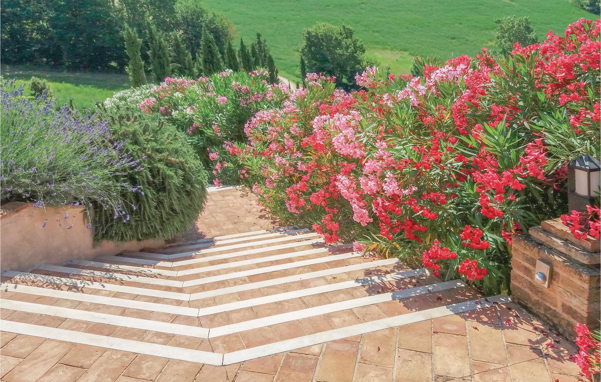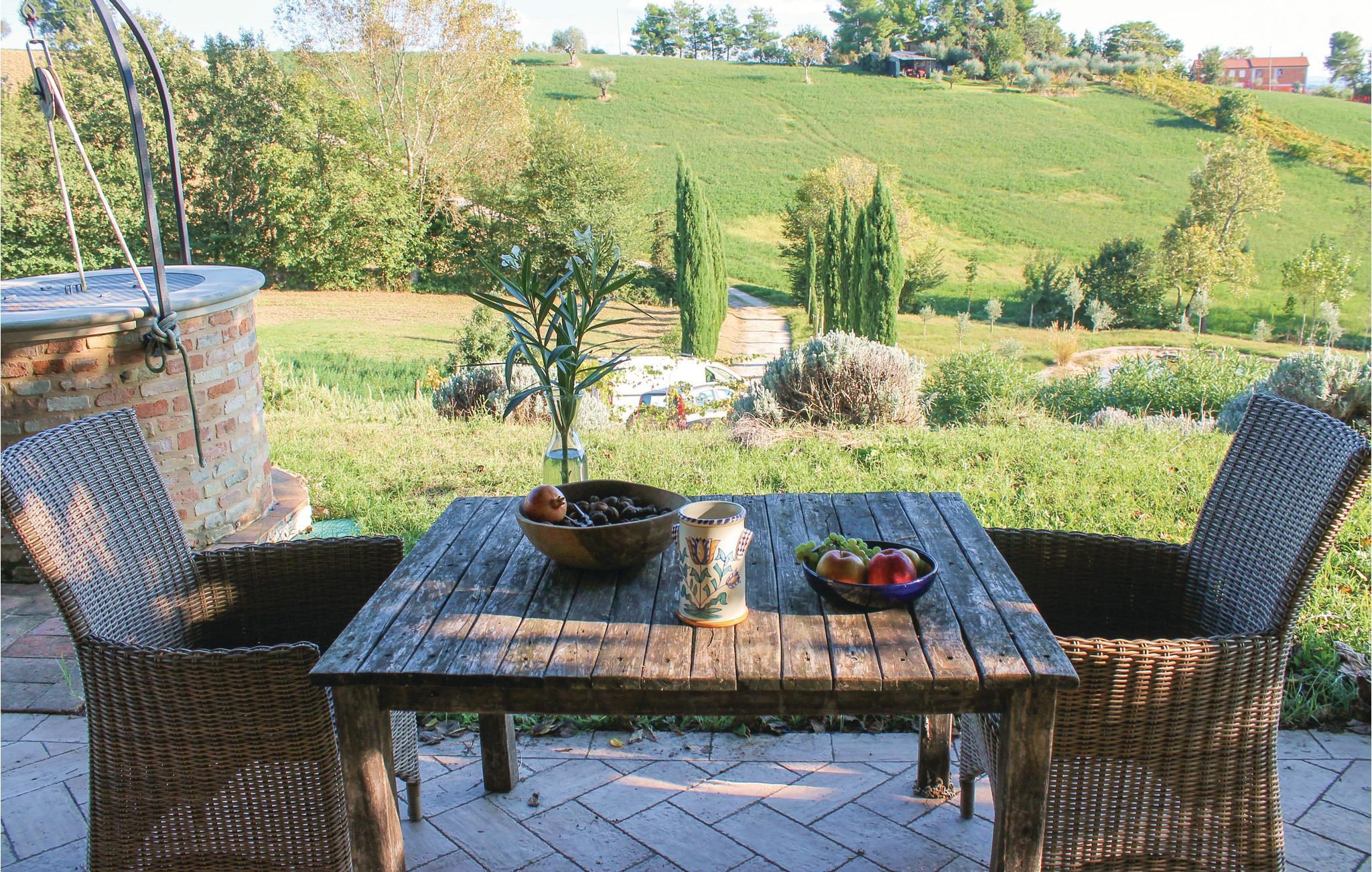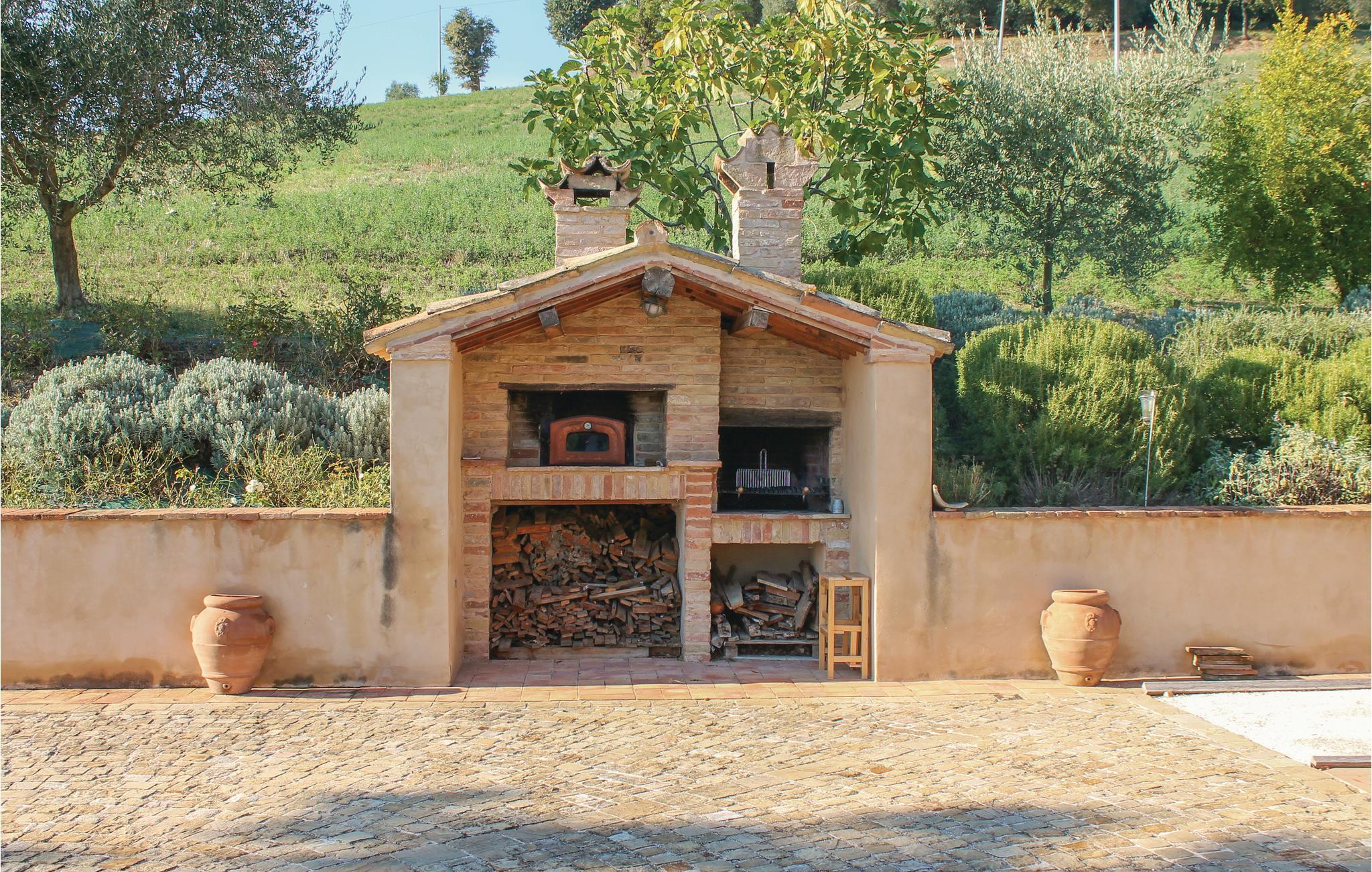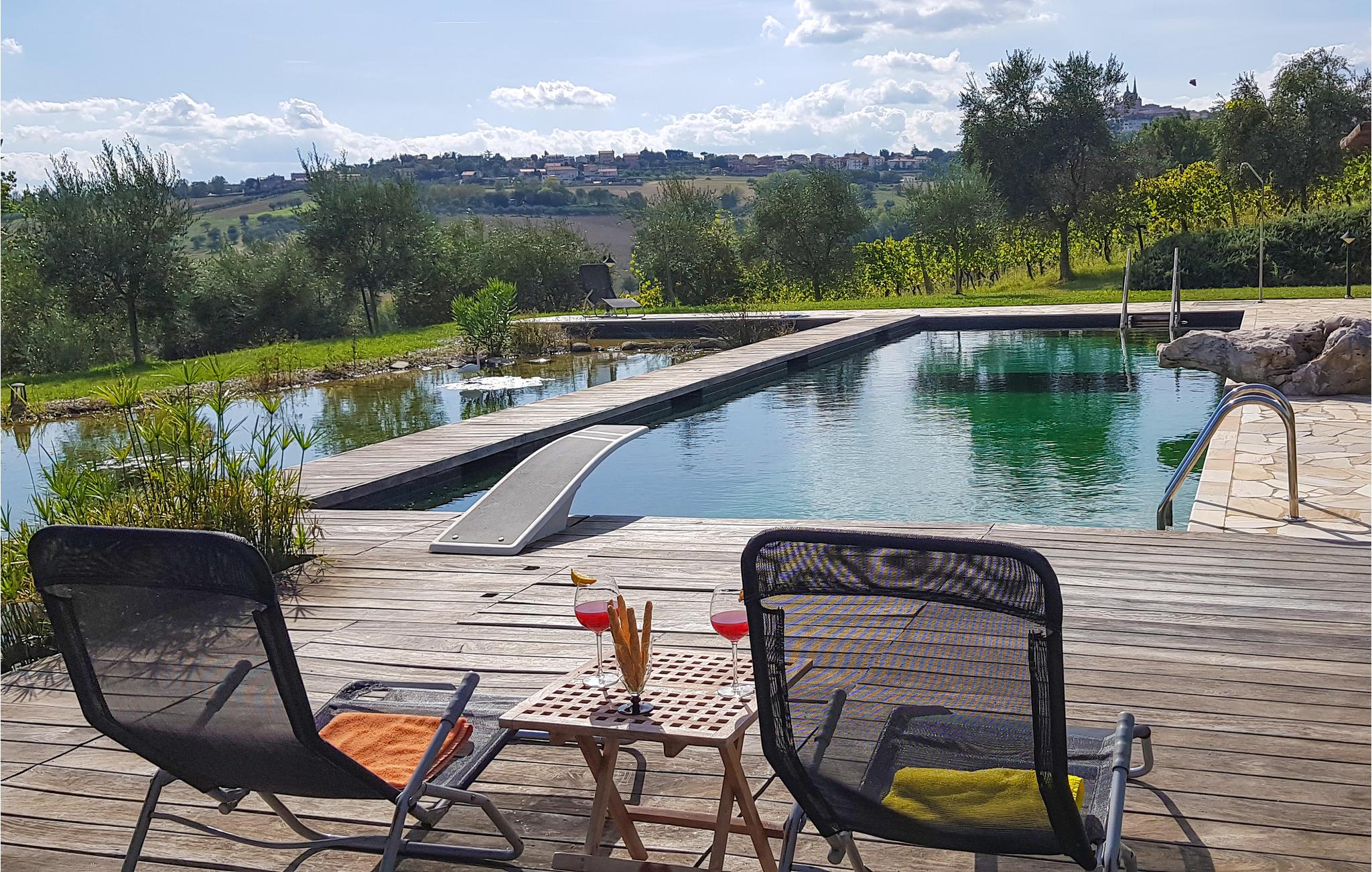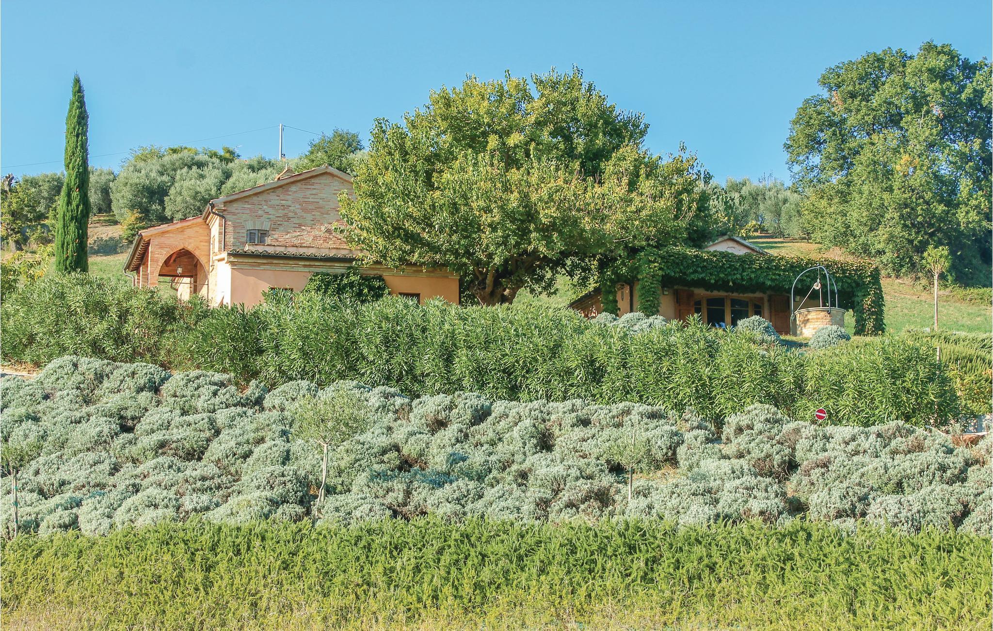 Dette enfamiliehus ligger i et kuperet området med skøn udsigt over Ostra Vetere (6 km). Jeres feriehus ligger på en 5.000 m² stor grund, hvor der nedenfor ligger en skøn pool (åben hele året) som I vil sætte pris på, når dagene er varme. Her er også en lille, charmerende, kunstig sø, hvor I kan sidde i kanten, slappe af og spise under åben himmel. På hovedbygningens overetage ligger ejeres lejlighed som ikke bebos, når huset er udlejet. Få meter væk ligger et anneks. I området kan I tage på spændende udflugter til Urbino (56 km) og Fabriano (45 km), hvor I kan se kunst og kultur og smage på de lækre gastronomiske specialiteter. Der er ca. 60 km til de herlige strande ved Numana og Sirolo.