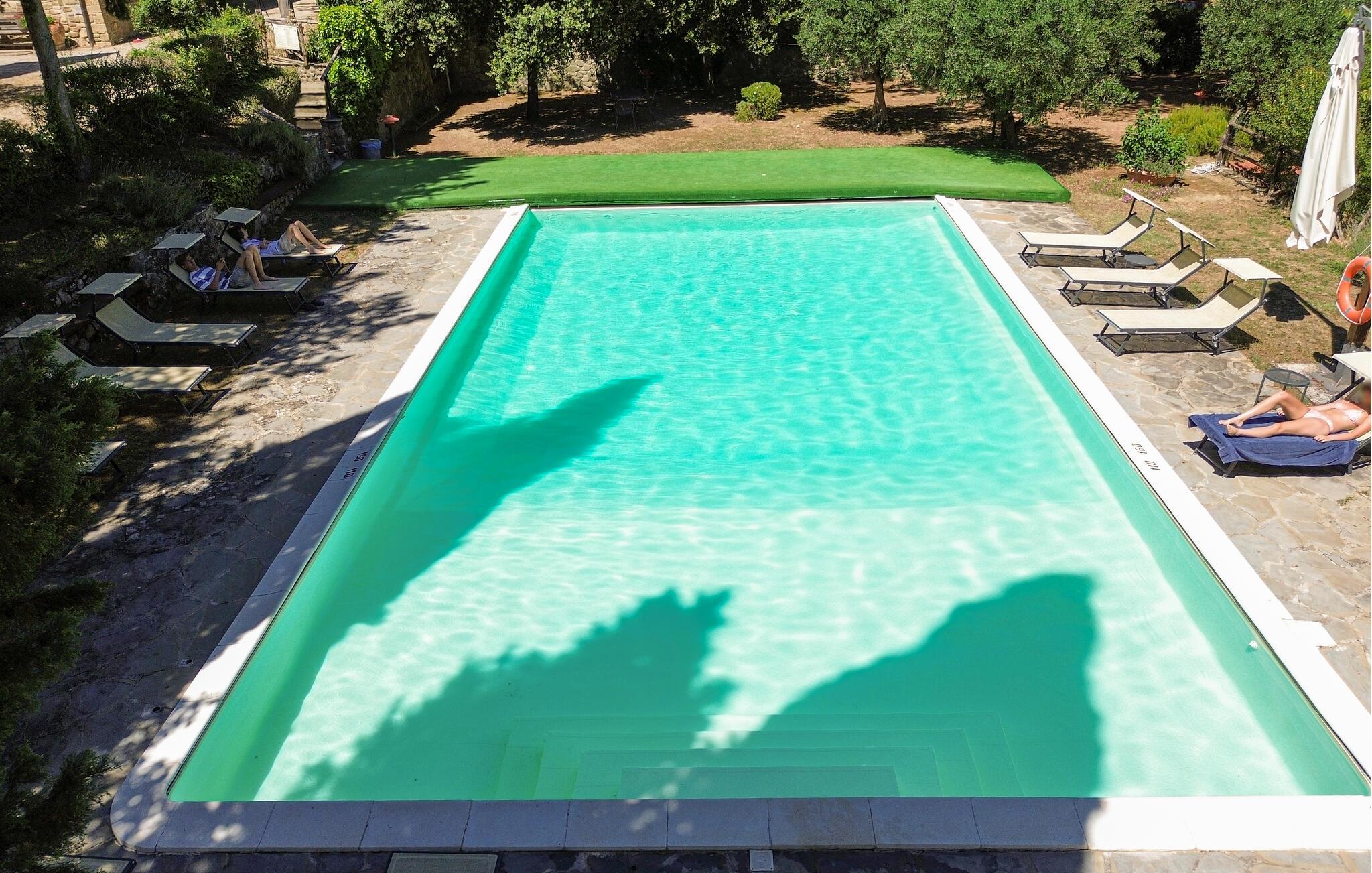 På den smukke fælles grund venter en pragtfuld pool, hvor I kan nyde den fredelige atmosfære i de lange solskinstimer. Nyd et spil boccia eller bordtennis og se udsigten over det toscanske landskab ved solnedgang med et glas vin.