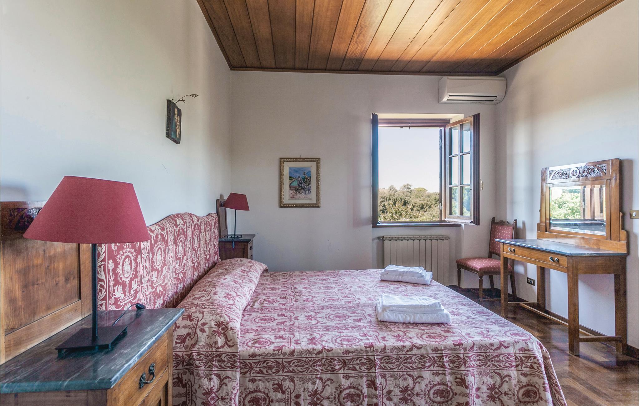 Rummeligt feriehus i bakkerne i den maleriske middelalderbebyggelse Anguillara Sabazia ved bredden af Lago di Bracciano. Jeres feriehus ligger i et roligt boligkvarter ovenfor søen, byder på en stor veranda til afslapning og måltider i det fri og en velplejet, indhegnet have med pool. Rolig beliggenhed med god privatsfære. Over en intern vej på 600 m kommer I fra haven til fods eller med bil til søens udstyrede bred, hvor I kan leje både, surfboards og vandcykler og tage på bådsture til de maleriske kystbyer Tervignano og Bracciano. I løbet af sommermånederne byder landsbyen Anguillara og Bracciano-søen på mange arrangementer med god vin og mad. Der er kun 30 km til kysten af Lazio, og I kan komme til centrum af Rom (39 km) med et tog, der kører hver halve time. Nedenunder har I en stor salon og et billardværelse til rådighed. Soveværelserne har panoramaudsigt til siderne over søen, og klimaanlæg mod forespørgsel. To overdækkede parkeringspladser til rådighed.