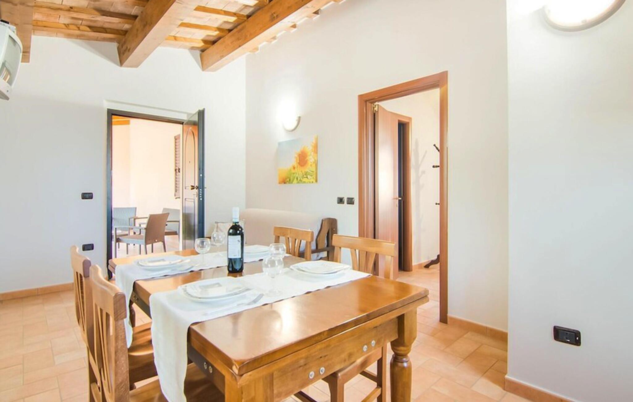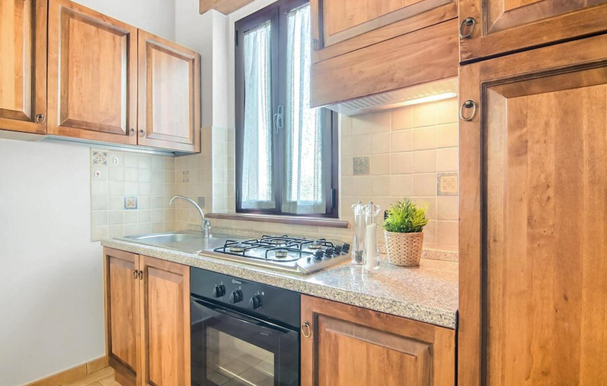 Denne lyse og velholdte ferielejlighed tilbyder dejlige ekstrafunktioner for både store og små. Fremstil lækre pastaretter i det åbne køkken, planlæg jeres aktiviteter over sjove måltider, og slap af med et brætspil efter en lang dag.