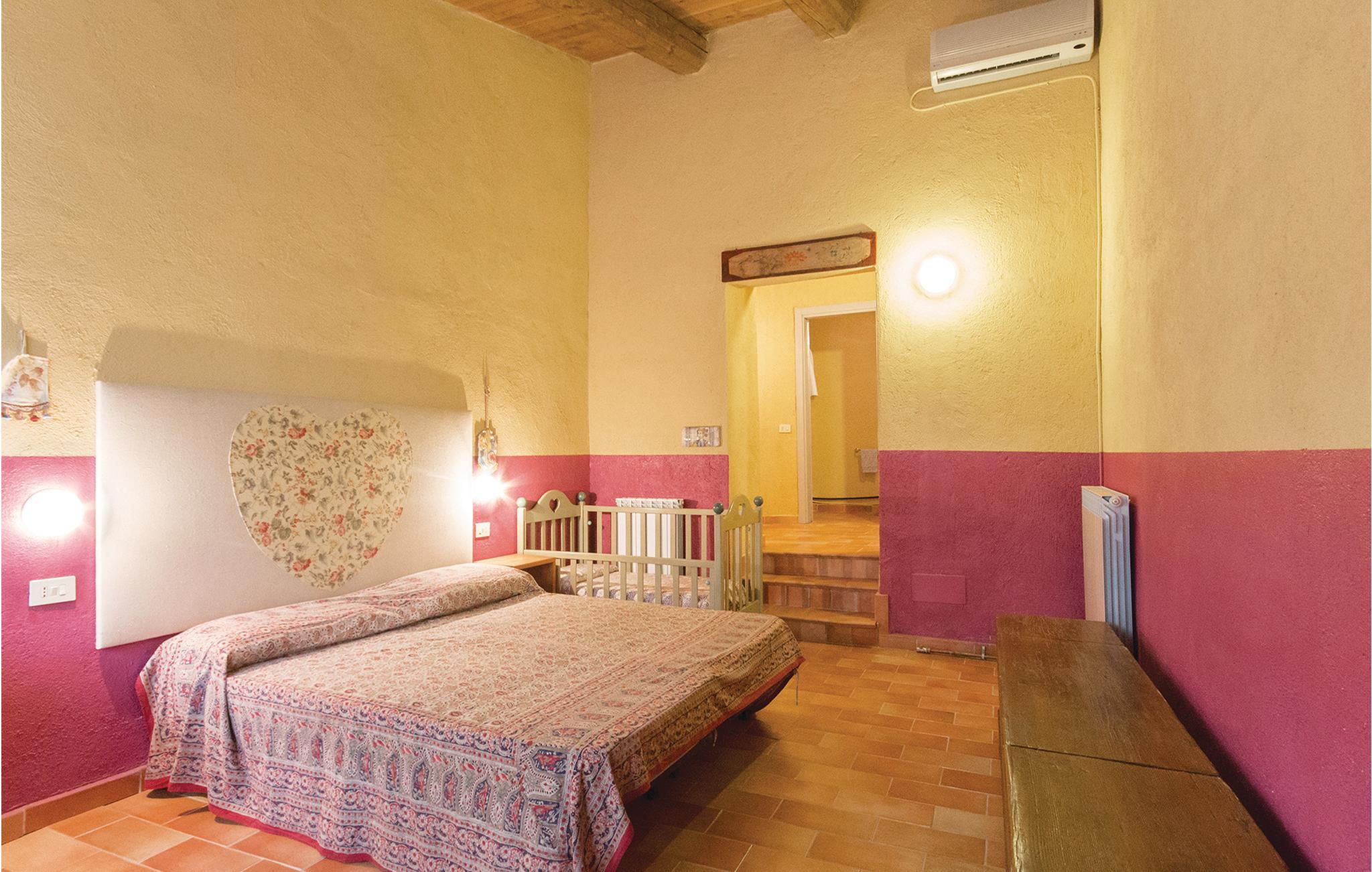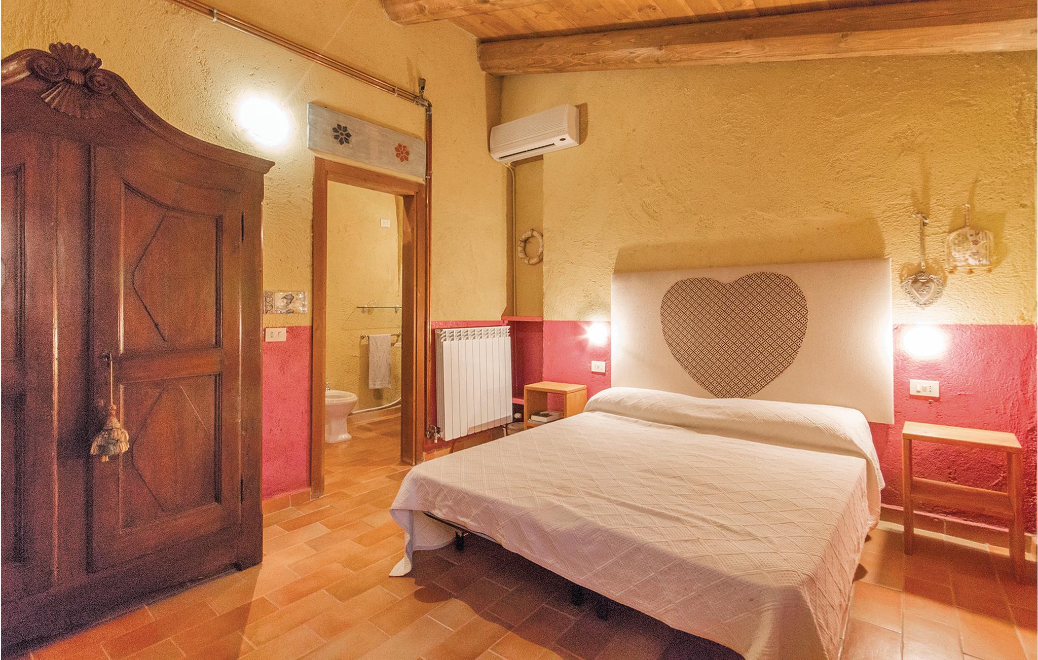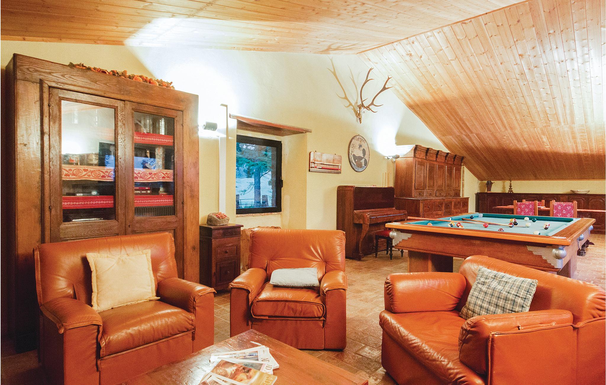 Dette hus ligger på en stor privat grund centralt i Apenninerbjergene er især velegnet til en stor familie eller vennegruppe. Afstande: byen Apecchio 6 km, den gamle by Città di Castello 27 km, Gubbio 45 km, Fano (havet) 70 km. Området er helt ideelt til jer, der gerne vil opleve og udforske Toscana, Umbrien og de mange seværdigheder i regionen. I har et stort grønt område og en swimmingpool til rådighed. Huset har en nybygget fløj i stueplan med uafhængige værelser med badeværelse, alle udelukkende med adgang udefra, et stort, professionelt udstyret køkken i forbindelse med spisepladsen, udgang til en stor overdækket terrasse samt et badeværelse med bruser. I den ældre del på 1. sal er der en stor opholdsstue (ca. 70 m²) med kamin og billard. Enkelte, ubeboede værelser er ikke tilgængelige. De venlige husejere er også forpagtere af et wellnesscenter som ligger 20 km fra huset. Her er termalbad, sportsbaner og fagpersonale. På forespørgsel og mod betaling på stedet: særpriser til wellnesscenteret, kok, rideundervisning, vandreture og pilateskurser.