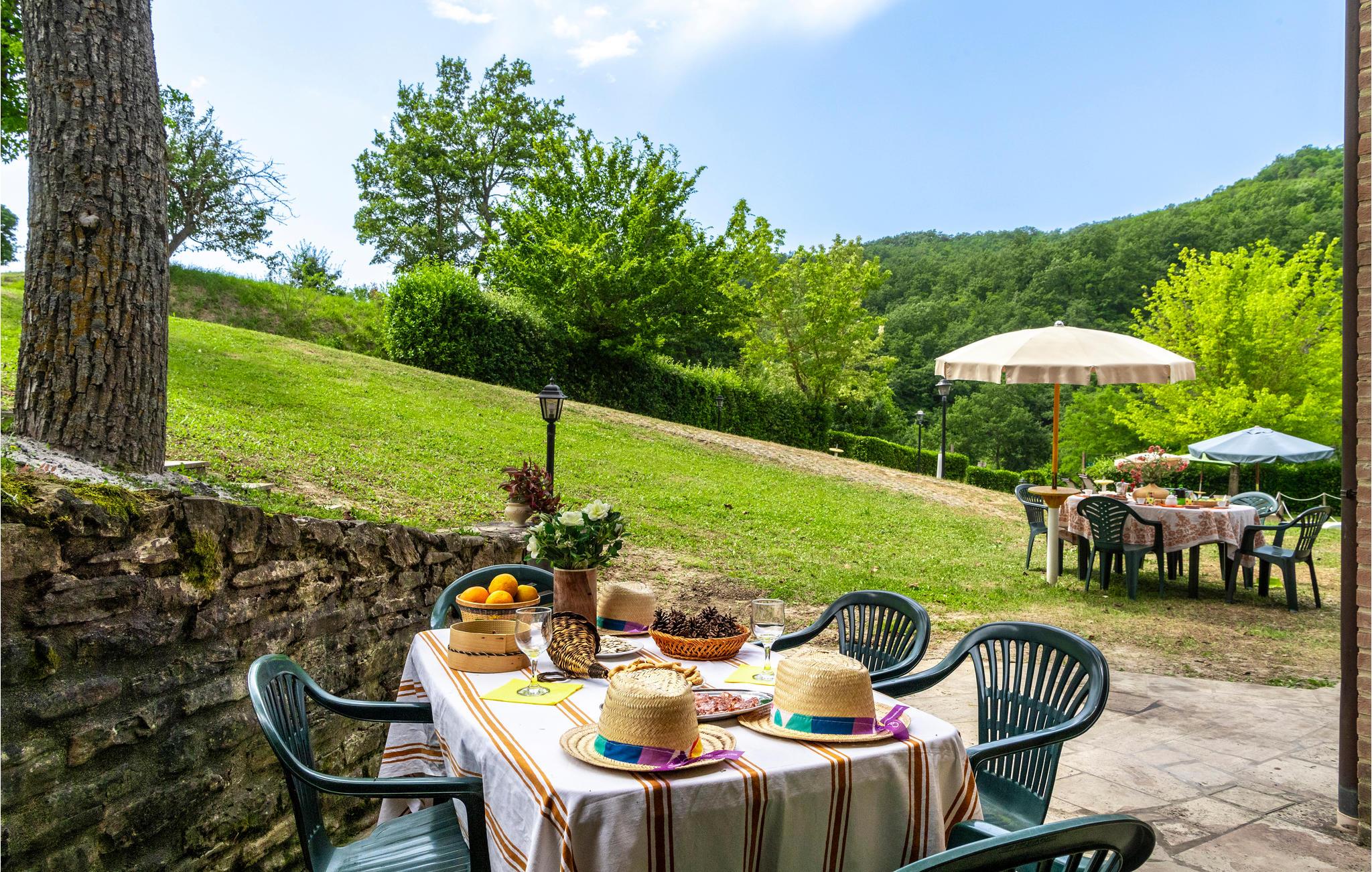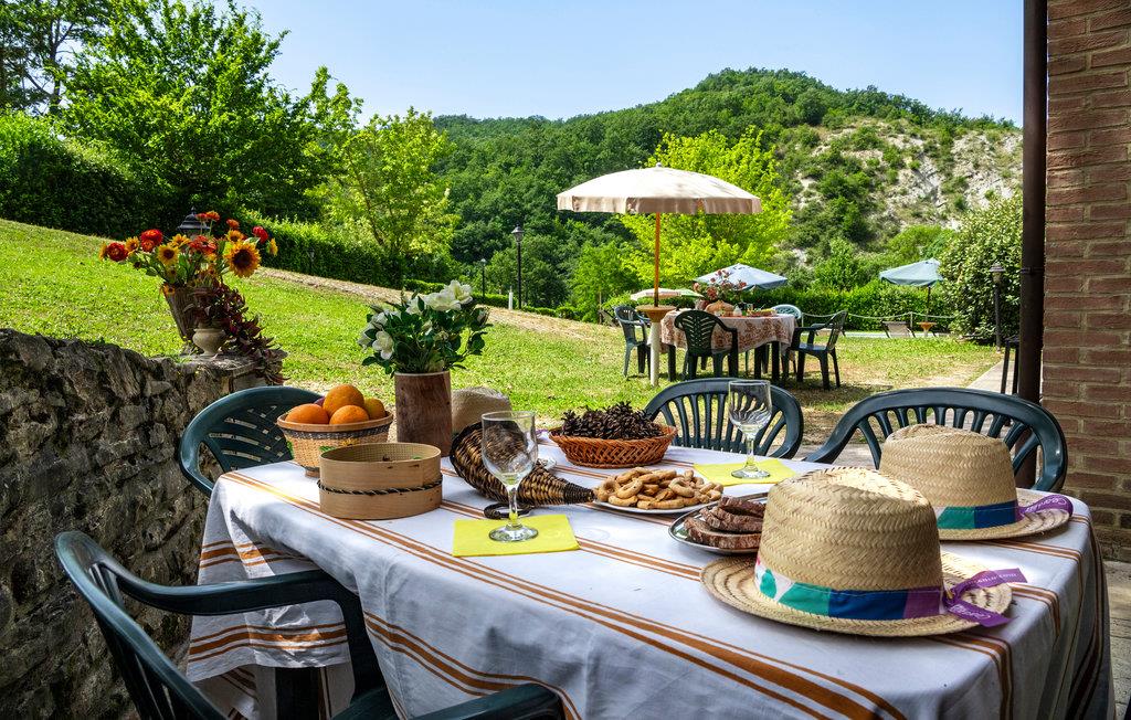Denne ferielejlighed ligger på ejendommen Valguerriera, ca. 4 km fra Piobbico, i en dal i Apennin, det ideelle rejsemål til jer, hvis I ønsker jer en afslappende ferie i uberørt natur. Ejendommen består af herskabshuset og tre landhuse, de generøse udendørsområder og den dejlige, fælles pool på 17 x 10 m med undervandsmassage. I landhusene er der i alt 11 indbydende indrettede ferielejligheder. Lejligheden byder på en uafhængig indgang i eget udendørsområde med bord, stole og parasol, hvor I kan slappe af og spise jeres måltider i det fri. Grill og vaskemaskine til fælles brug. Parkering på grunden. En barneseng er til rådighed. Her bor I i Marche, ved grænsen til regionerne Toscana og Umbrien, i nærheden af Piobbico (Pesaro og Urbino), i en rolig dal ved navn Candigliano, en af de dejligste og mest oprindelige dale i baglandet af Pesaro, der byder på mildt klima og hvorfra I nyder en vidunderlig udsigt til Apennin. I omgivelserne venter der kunst- og renæssancebyer som Urbino, UNESCO-verdenskulturarv, fortryllende middelalderlandsbyer som Piobbico, Apecchio, Sant’Angelo in Vado og Acqualagna, kendt for trøflerne, samt Urbania, Cagli, San Marino, Gradara og San Leo. Ejendommens beliggenhed er også fordelagtig til lidt længere dagsture som til Gubbio, Assisi, Perugia, Città di Castello, Arezzo, San Sepolcro, Loreto, Florenz og Siena, der alle rummer stort kunsthistorisk relevans, eller til San Marino, til borgen af Gradara, grotterne af Frasassi eller til Furlopasset. Afstande: 4 km Piobbico (dagligvarer og andre indkøb, bank, apotek, læge), 30 km Urbino, 55 km Fano og strandene langs Adriaterhavet, som I når på omkring en times kørsel. 6 km til wellnesscenter og 10 km til ridebane. Mulighed for guidede ture.