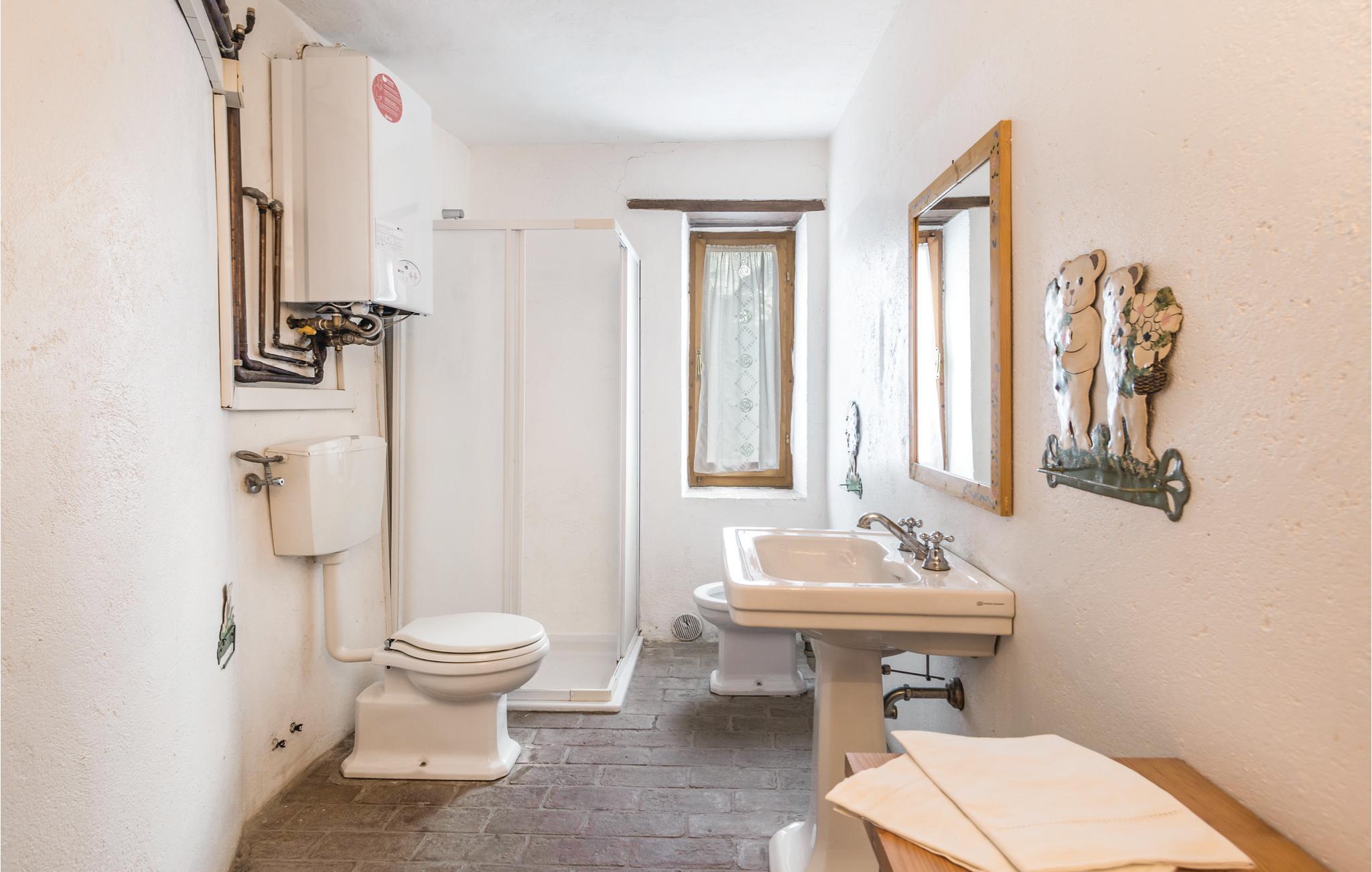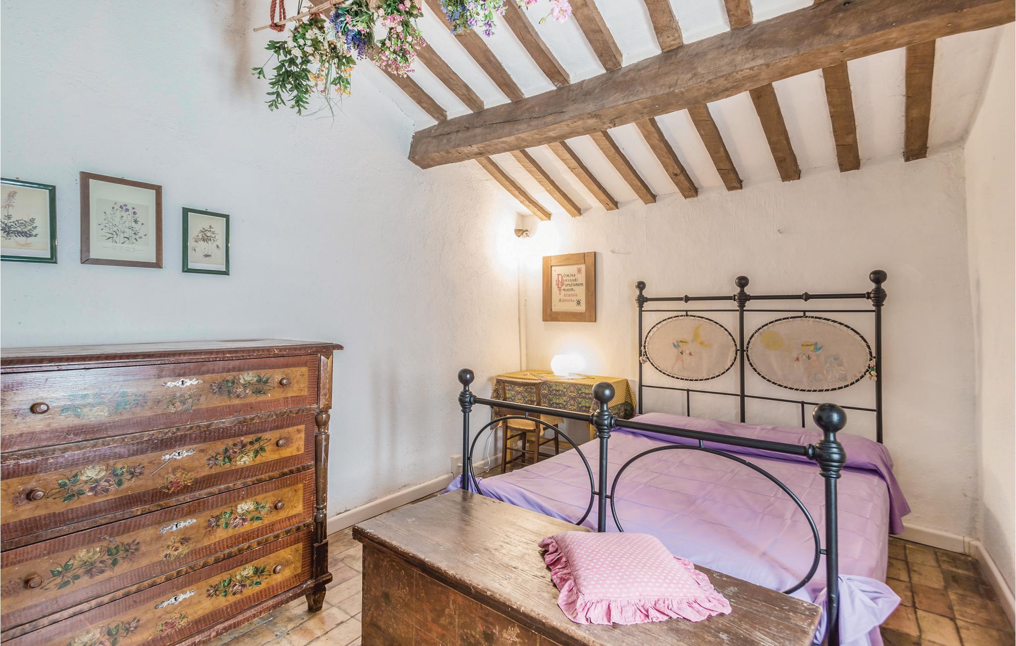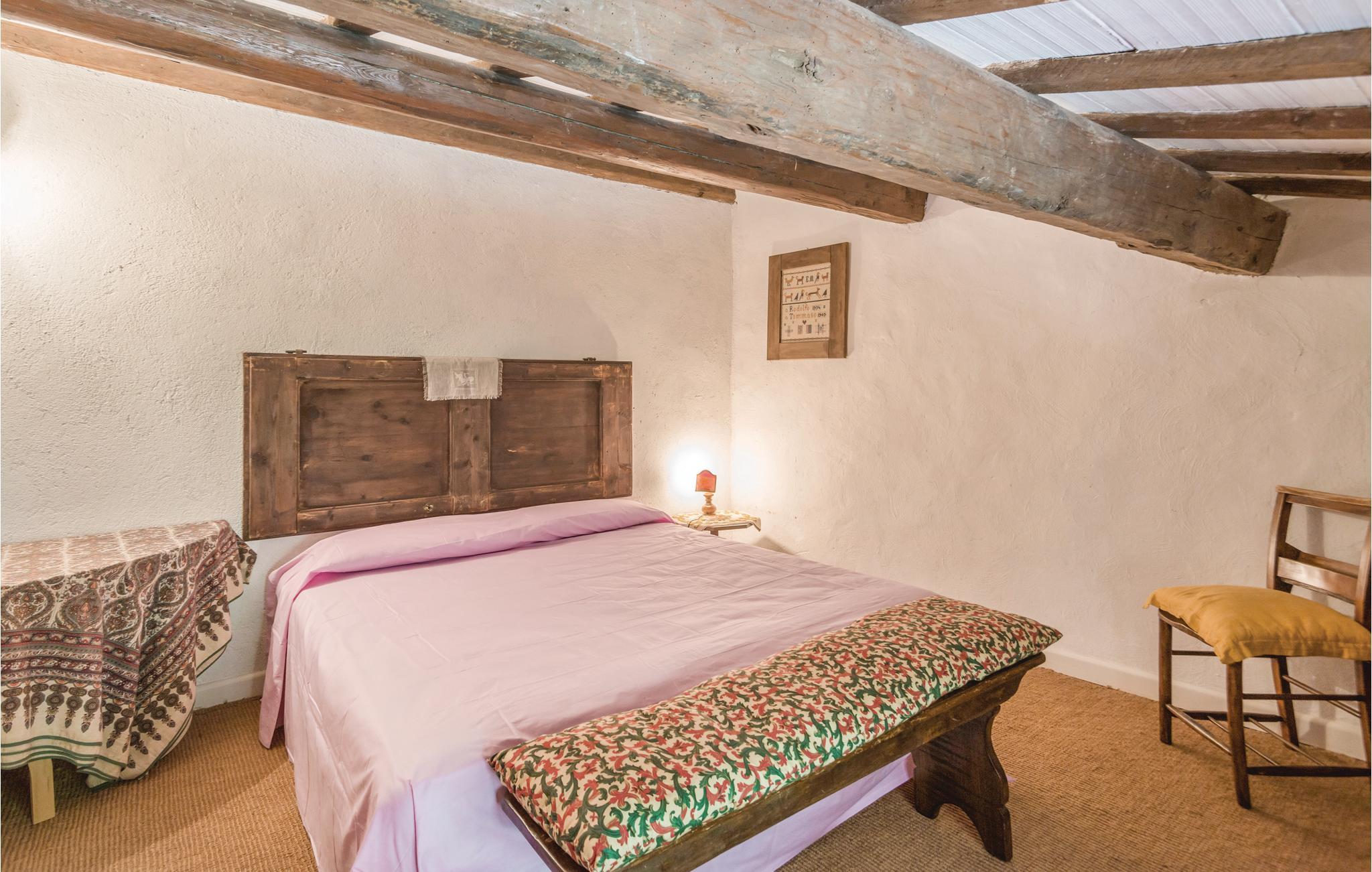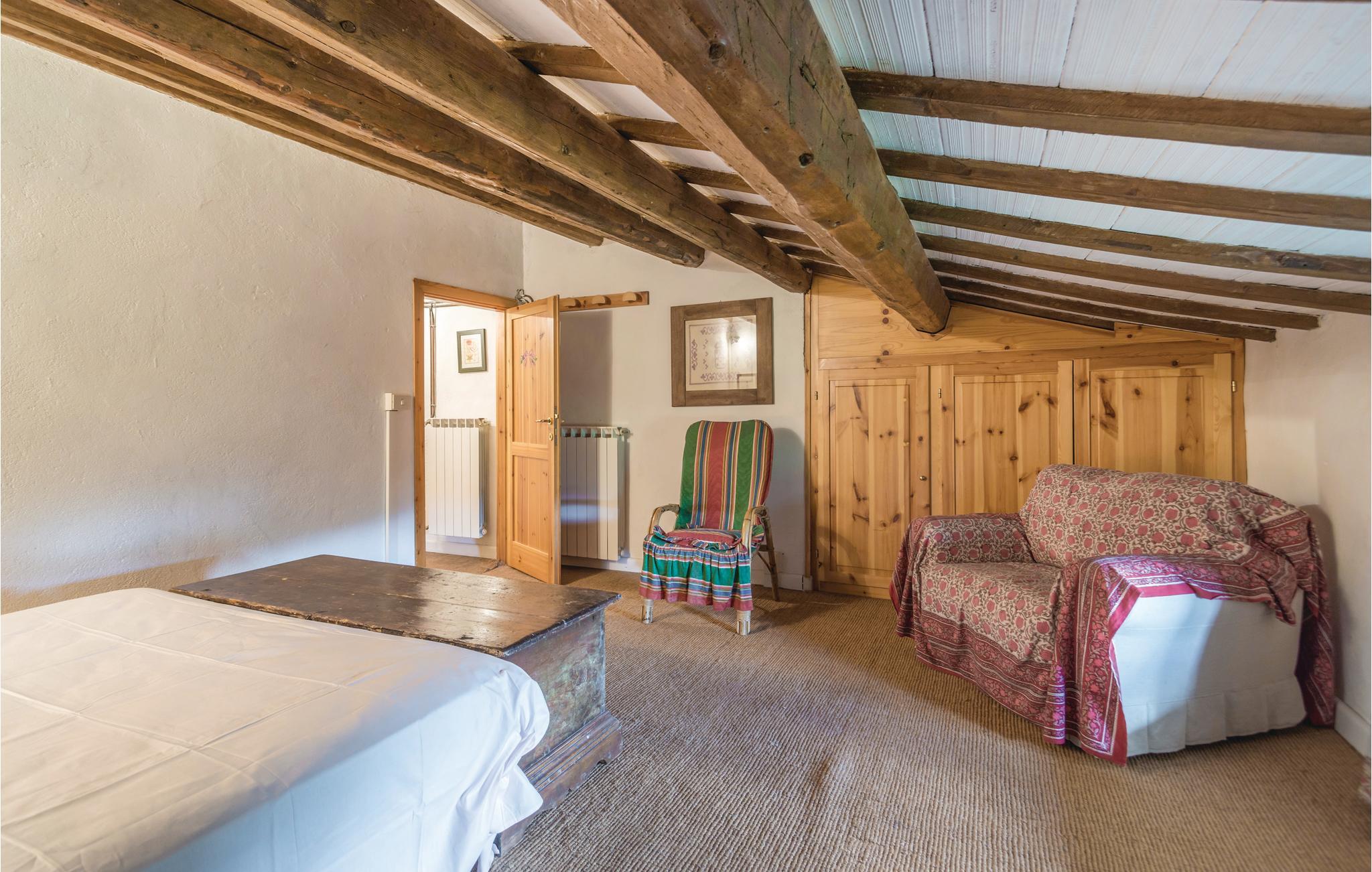 Denne store bondegård er bygget i egnstypisk stil, som blevet bevaret under renoveringen. Den ligger midt i det bjergrige umbriske område Appenninerne (700 m over havets overflade). Der er en fantastisk panoramaudsigt over det omkringliggende landskab, der er prydet af bjerge. På gårdens store grund er der en stort møbleret udendørs-areal, og en lille skov, man kan gå ture i. Ved siden af huset ligger der en swimmingpool. Huset egner sig især for børnefamilier eller mindre grupper, der gerne vil holde ferie sammen, tæt på naturen. De gæstfrie ejere ejer et rekreationscenter (spa, swimmingpool, fitness), der ligger ca. 20 km væk. Huset er på flere etager, og har flere indgange. I stueplan er der to stuer en suite, det ene med pejs fra det 15. århundrede, og det andet med tv. Adgang til en lille terrasse der er oplagt at spise morgenmad på, spisestue (adgang udefra), ved siden af rummeligt køkken (stort køleskab, ovn, gasgrill, fryser og opvaskemaskine). 2 soveværelser med dobbeltsenge (det ene med udgang til overdækket terrasse), 1 soveværelse med to enkeltsenge, 2 soveværelser med etagesenge, 1 badeværelser med brusebad, samt et wc der ligger ved siden af poolen. Høj stue (parterre) med adgang udefra: 1 soveværelse med dobbeltseng, 1 badeværelse med brusebad, 4 trin op, under et skråtag: gennemgangsrum med sofa og bord, 1 soveværelser med dobbeltseng (loftshøjde 2, 2,5 m). wc, to badeværelser med brusebad. I lille tårn: skønt soveværelse med dobbeltseng samt med enkeltseng (godt til unge mennesker). Enkel men godt gennemtænkt indrettet. Barneseng og stol på forespørgsel. Afstande: ca. 45 km universitetsbyen Urbino, en af mest interessante byer i Marken, samt samme afstand til Gubbio som regnes som den skønneste by i Umbrien. Andre afstande: Città di Castello 27 km, Arezzo 60 km, adriaterhavskystens skønneste sandstrande (Fano) 70 km (gode forbindelser). Forretninger af alle slags, tennisbane og supermarked 2 km, i 5 km omkreds mange pizzeriaer og forretninger.