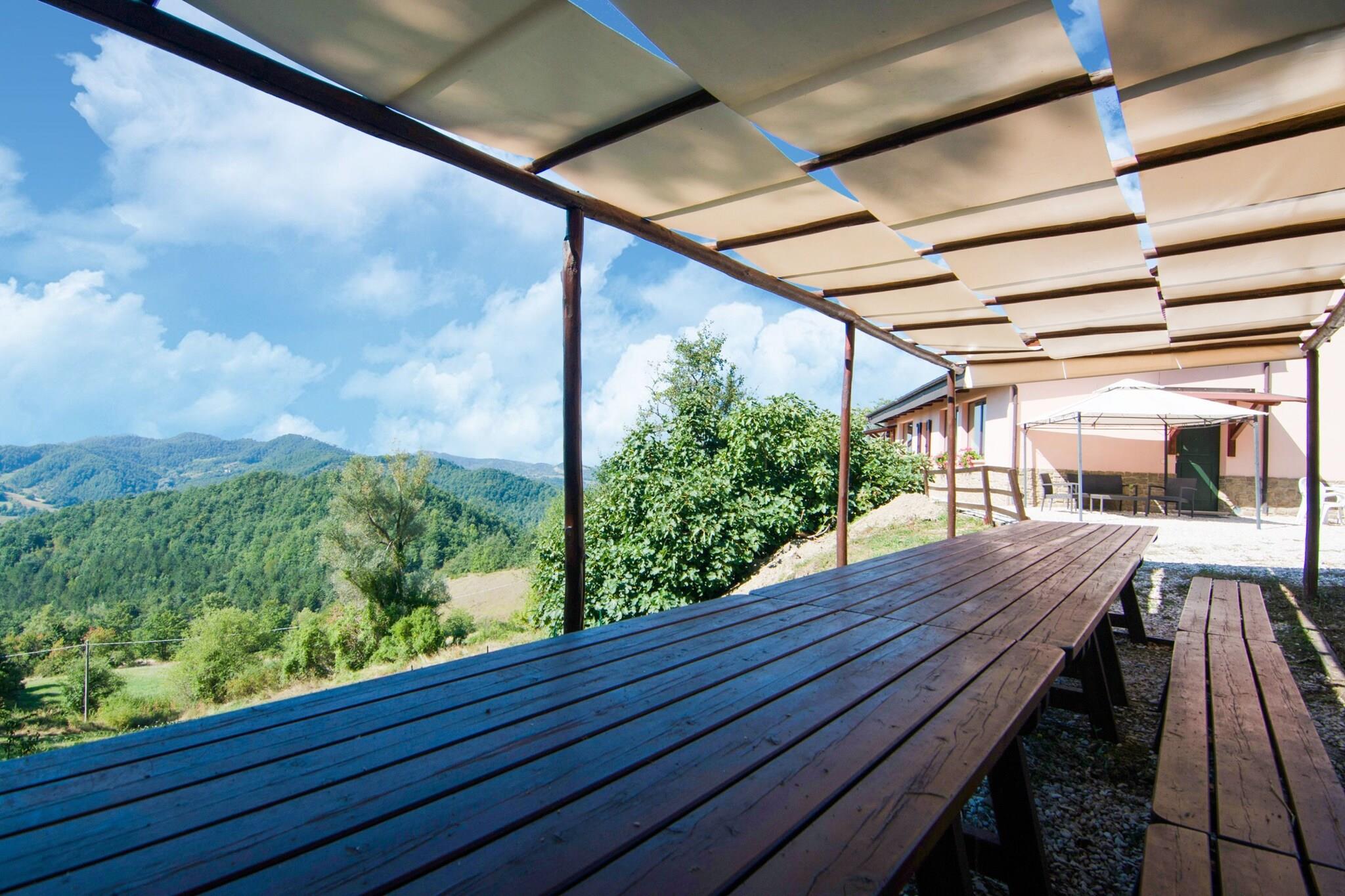 Denne landlige agriturismo med pool og jacuzzi er 880 meter over havets overflade i Apenninerne nær Monte Nerone og Catria. Der er i alt 6 lejligheder med rustik og landlig indretning. Fra den levende køkken i Amarena lejlighed har du en smuk udsigt over omgivelserne. Swimmingpoolen kan dækkes om forår og efterår, så det er også ideelt at tage en dukkert i swimmingpoolen i maj og september. På grund af beliggenheden er temperaturen meget behagelig i de varme sommermåneder. Der er en fælles grill til grillning af kød og grøntsager og på terrassen kan du nyde aftensmad med et glas lokal vin. Mountainbikes er tilgængelige for gæster i agriturismo . Området er meget velegnet, og der er mange grusveje til et eventyr cykeltur. Det omkringliggende område består af skove, enger og bjerge. Fra agriturismo kan du besøge forskellige byer, herunder Urbino, Gubbio og Città di Castello, men også en fridag fra havet.