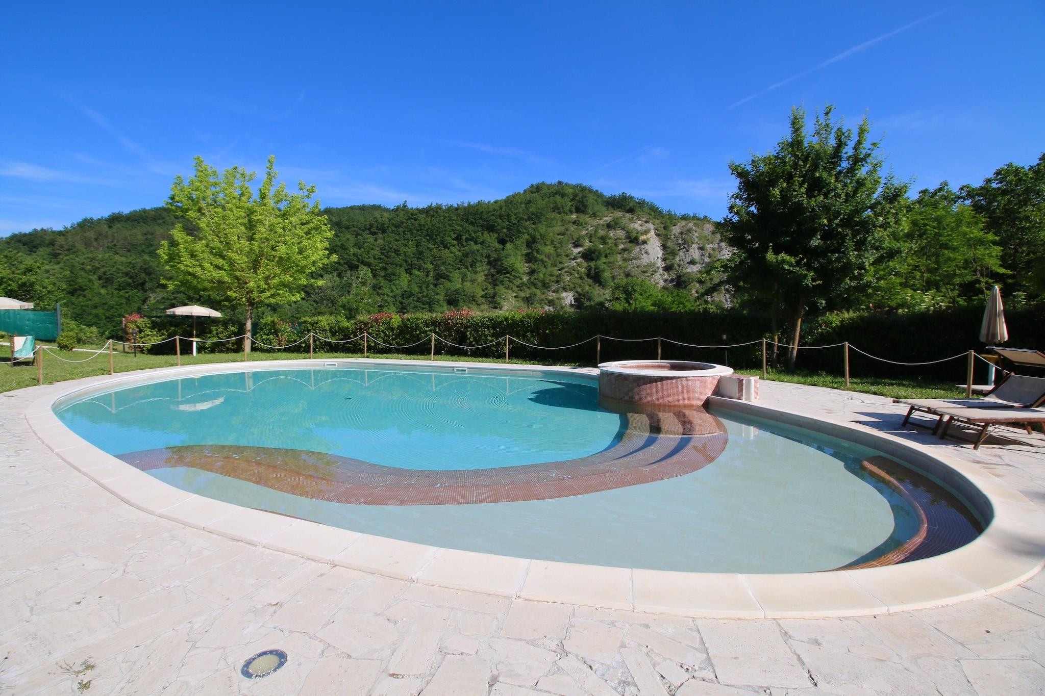 På denne grund er der 3 renoverede huse med 11 lejligheder. Hver lejlighed har sin egen terrasse med havemøbler. Husene ligger langt fra hinanden, og derfor er der masser af privatliv. Lejlighed Rosa Rossa ligger i det rustikke hus ved siden af den smukke hovedbygning. Den har plads til 5 personer. Ejendommen ligger på grænsen mellem Umbrien og Marche i Candigliano-dalen, mellem byerne Piobbico, Apecchio, Urbania og Sant'Angelo in Vado. Du kan nemt besøge Urbino, Gubbio, Assisi og Perugia. Du kan også tage på mountainbike eller vandre i bjergene. Lejlighed Rosa Rossa ligger i det rustikke hus 100 m fra poolen. Den har 1 separat soveværelse, og den dobbelte sovesofa i stuen har plads til 2 børn eller 1 voksen. Ved ankomsten får du en flaske vin. Om sommeren arrangeres der en gratis vinsmagning hver uge i hovedhuset. Ejendommen nås via en grusvej på ca. 4 km. Bemærk: Swimmingpoolen er kun åben indtil den 15. september og lukket derefter.