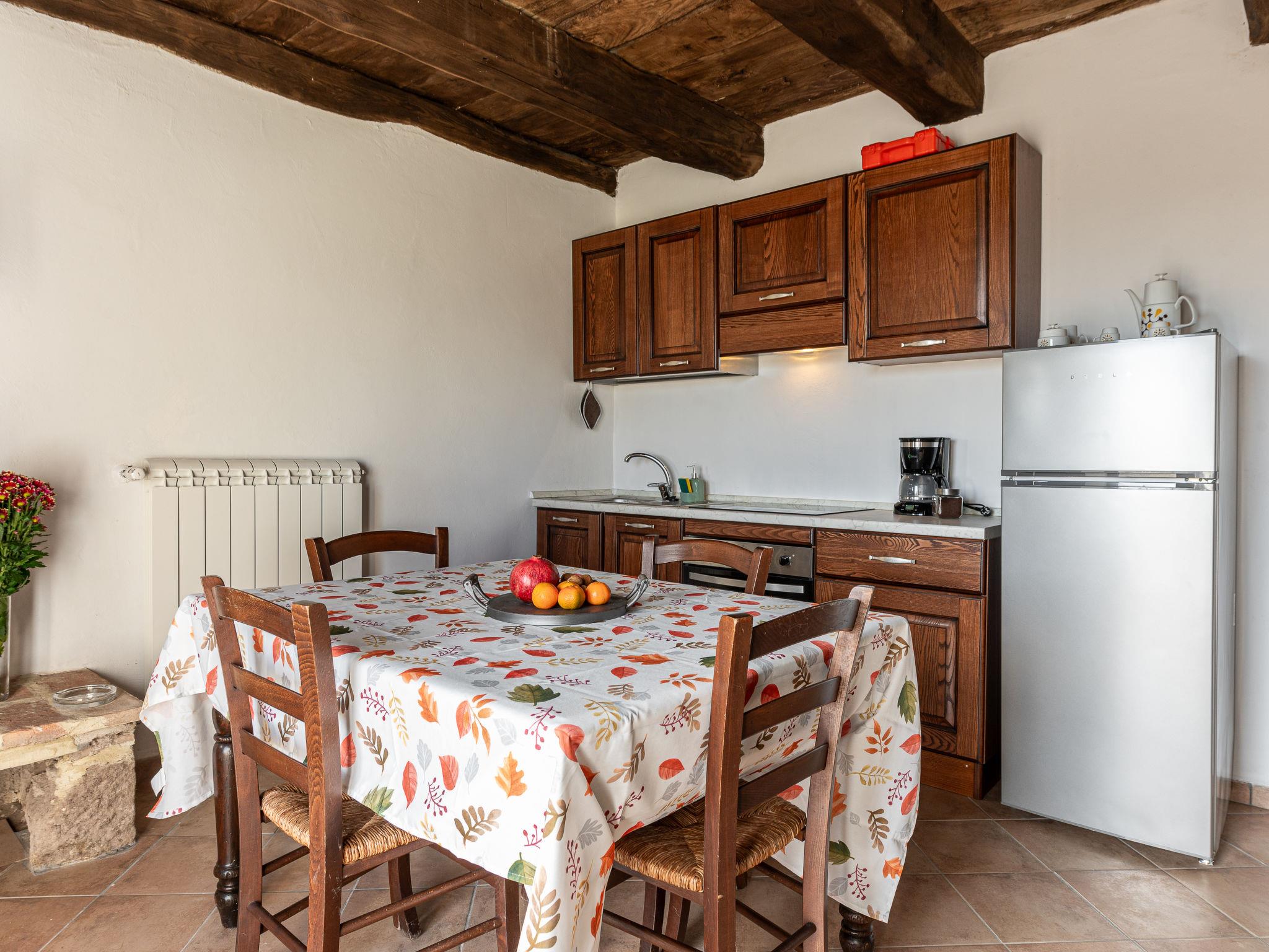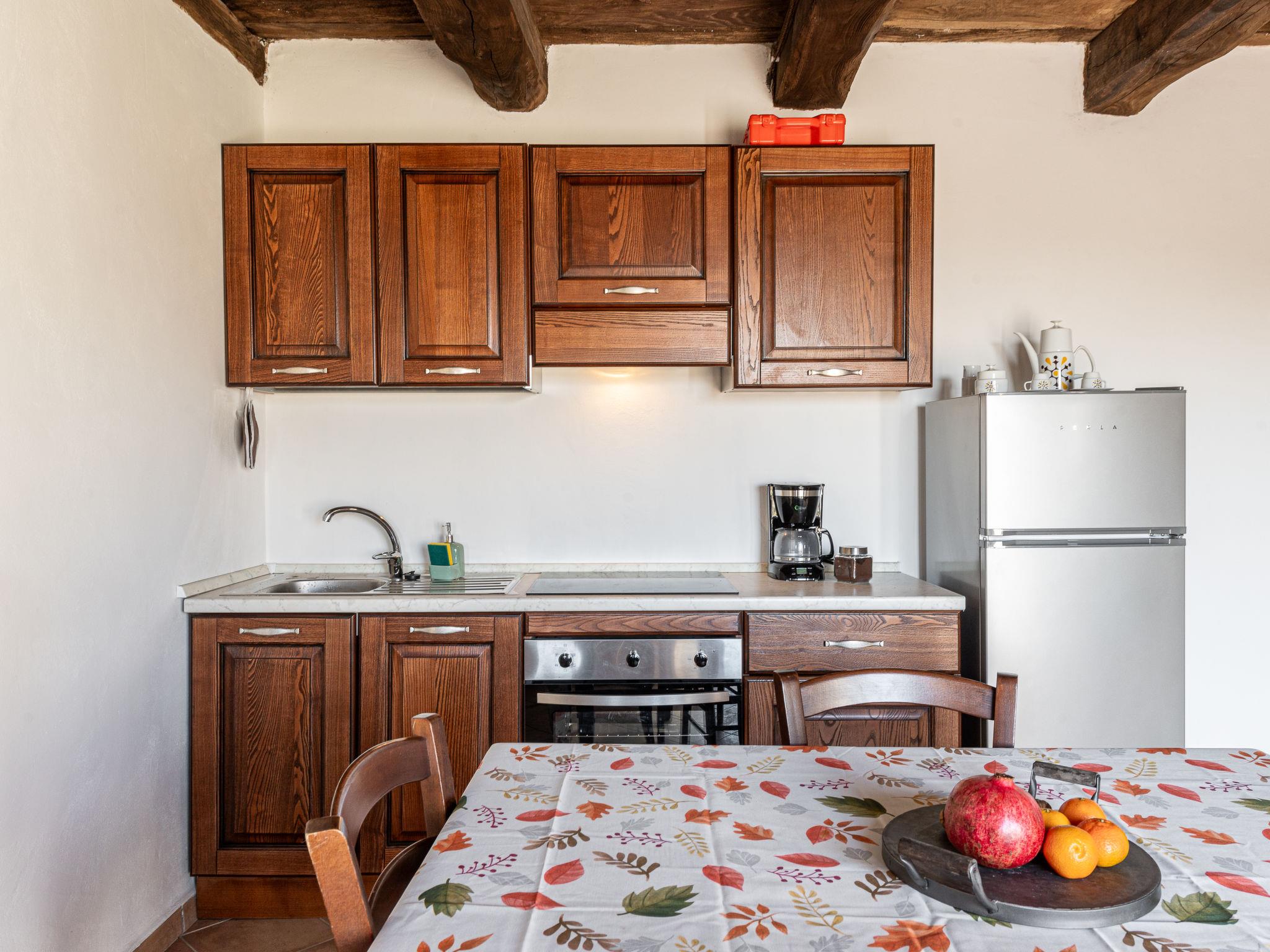 "Aria", 2-room semi-detached house on 2 levels. Fully renovated in 2024, rustic and cosy furnishings: living/dining room with open-hearth fireplace, dining table and dining nook. Exit to the garden. Open kitchen (oven, 4 induction hot plates, electric coffee machine). Exit to the garden. Upper floor: 1 double bedroom with shower/bidet/WC. Patio. Terrace furniture. Marvellous panoramic view of the mountains and the countryside. Facilities: baby cot for up to 2 year olds, hair dryer. Please note: non-smokers only. Private entrance. IT053001B5GPINGIQS