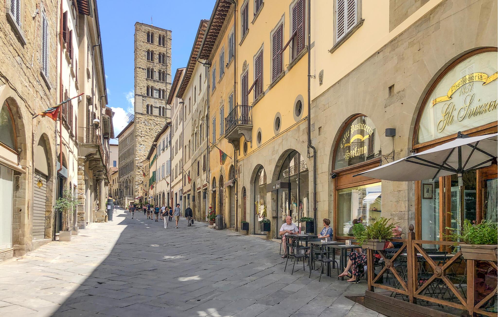 I kan særligt kan glæde jer den gamle bydel og den livlige Piazza Grande med middelalderlige stenhuse, mens I drikker Arezzos egen Chianti.