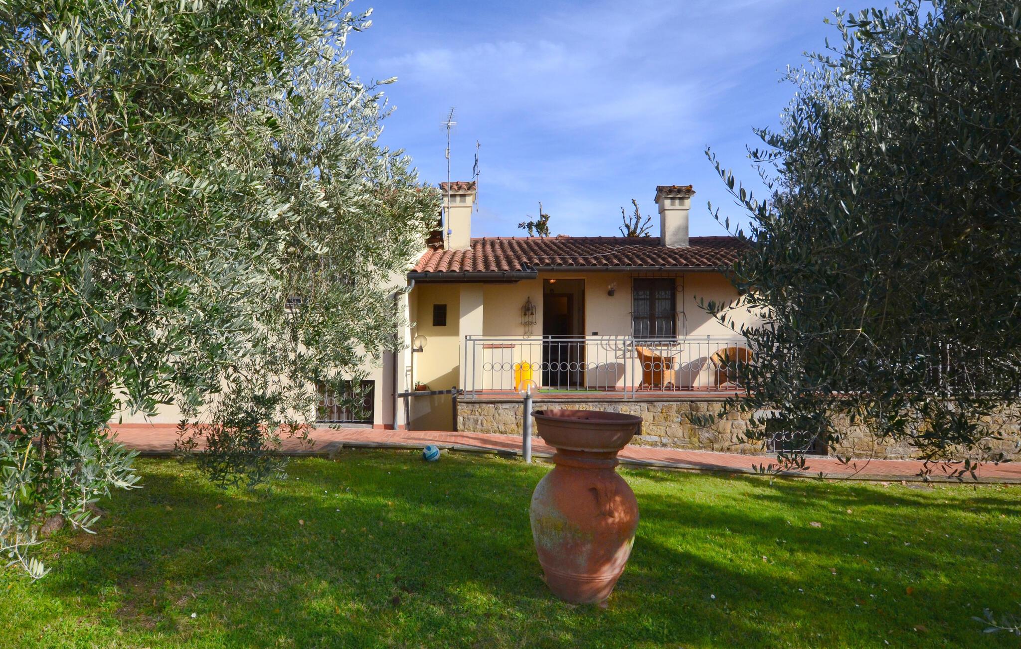 Dette indbydende hus ligger i smukke omgivelser og i forholdsvis kort afstand fra Arezzo. Her kan I se frem til en vidunderlig ferie med et vennepar eller den udvidede familie i en tiltalende atmosfære, hvor der bare er lagt op til afslapning, fred og ro. Stuen inviterer til en masse kvalitetstid og til at se nogle gode film sammen. På terrassen kan I nyde nogle lækre snacks og drinks, og så kan I hoppe i poolen og blive dejlig afkølet. I kan også gå en tur i den parklignende have og bare glemme hverdagens stress og jag.