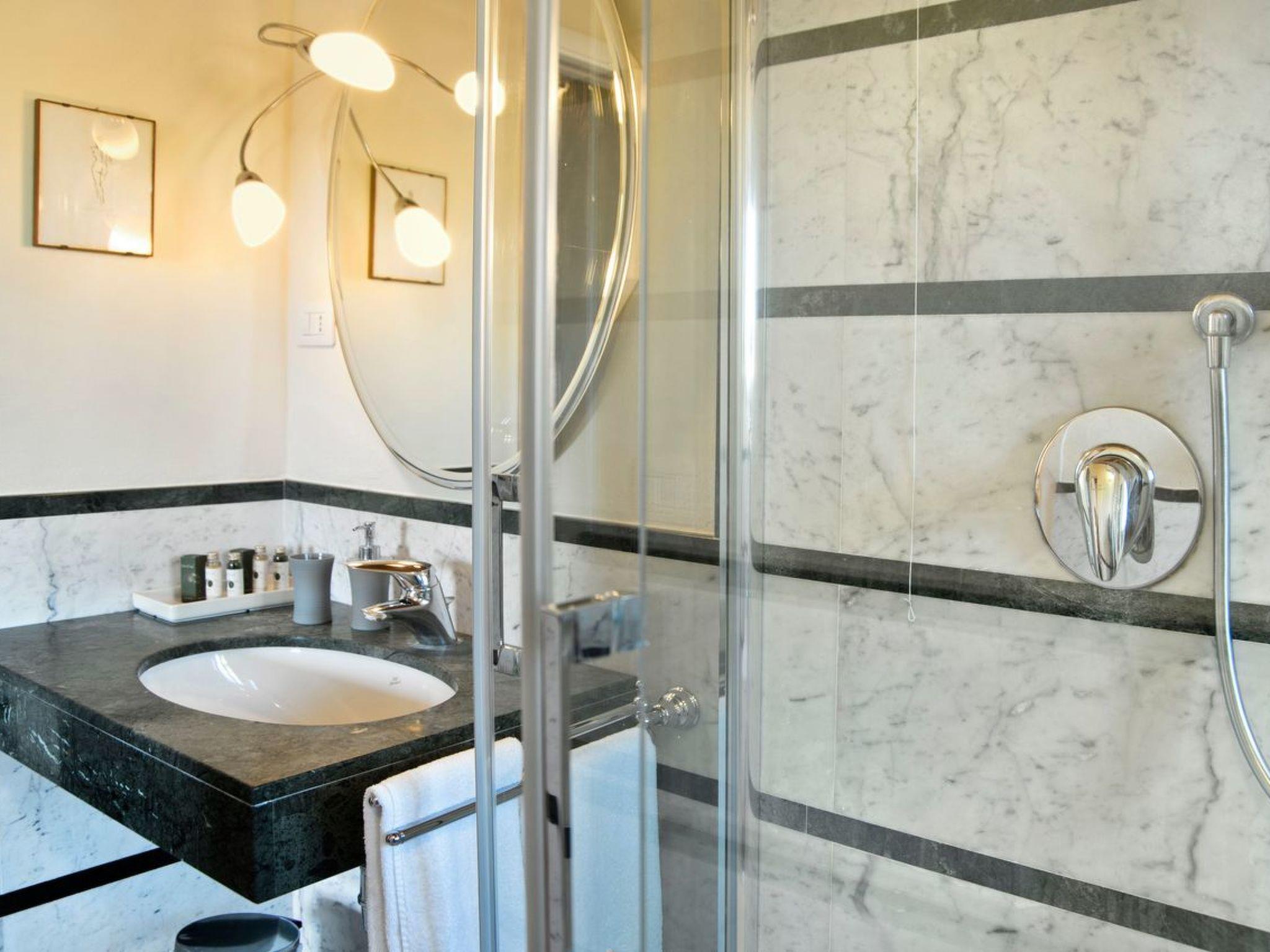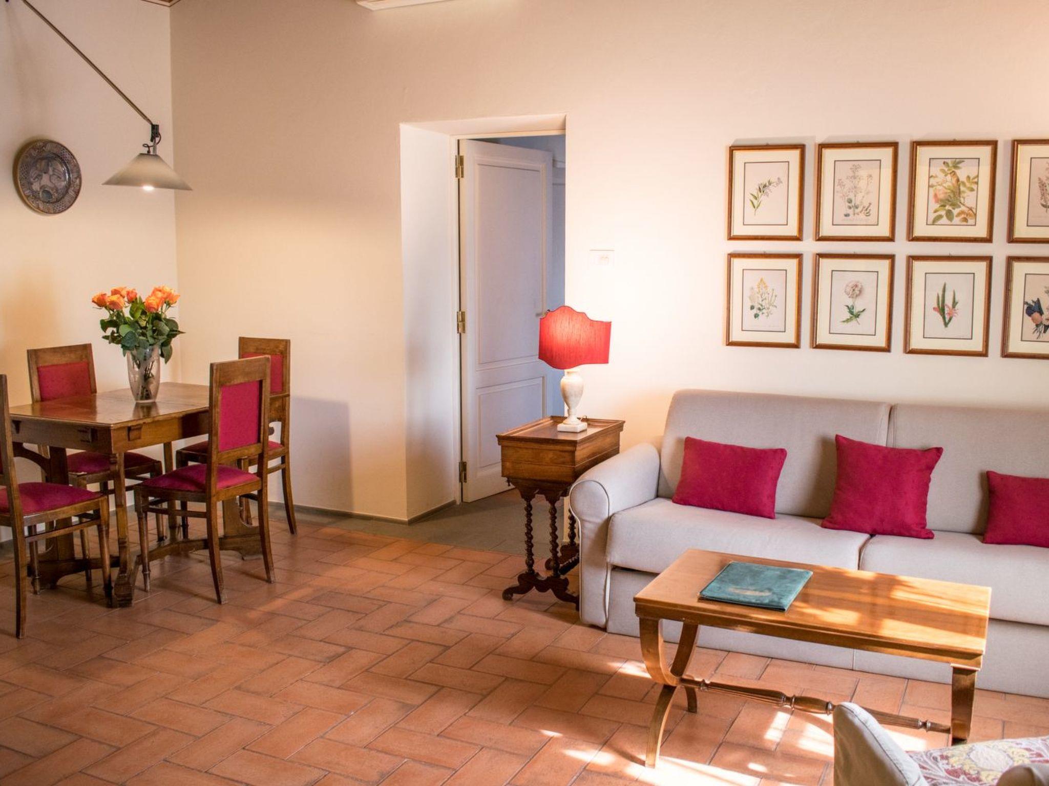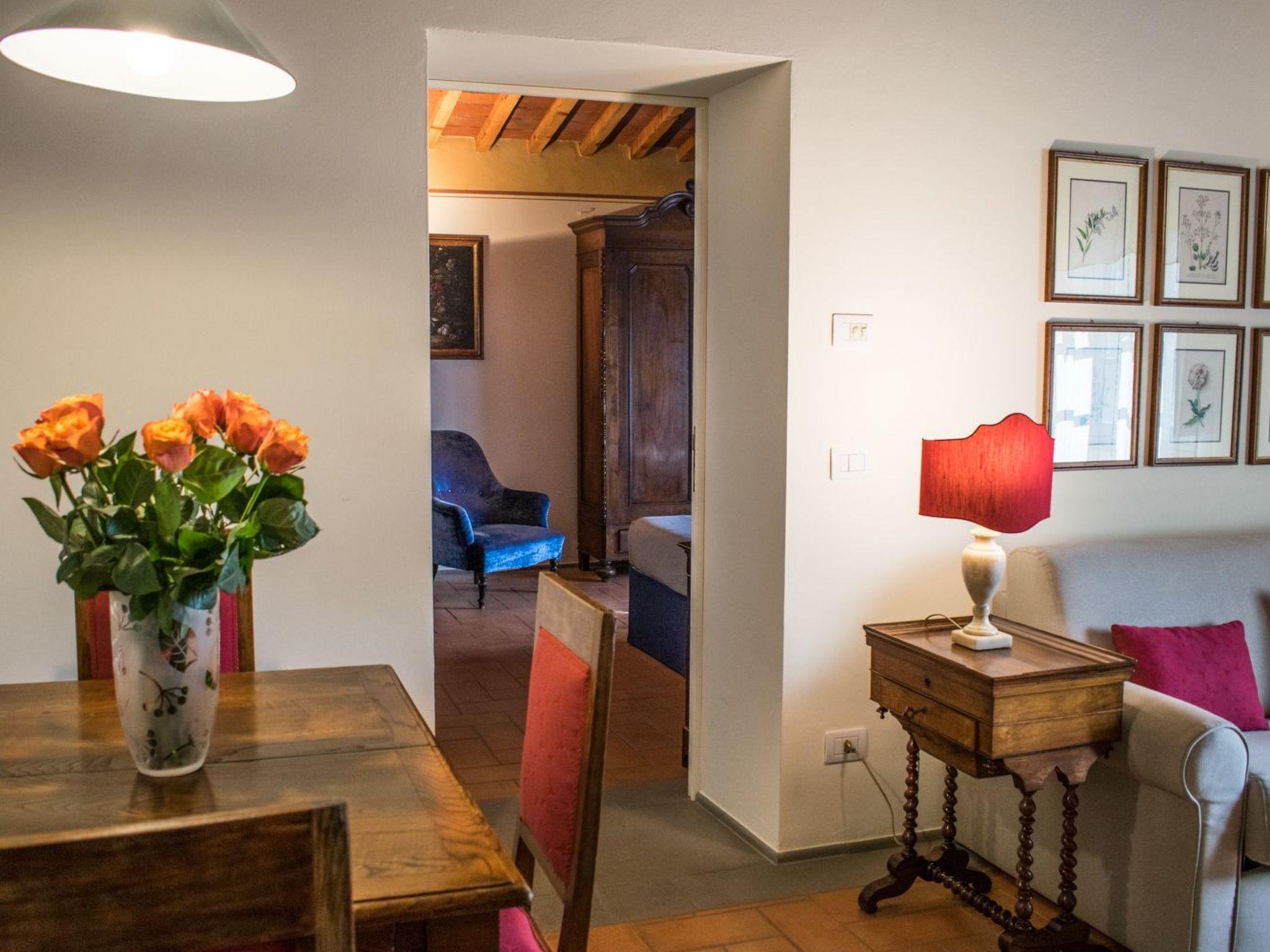 The flat is located on the first floor of a 19th-century Tuscan residence, just a few kilometres from the historical centre of Arezzo, which can be easily reached by car or by train, given the proximity of the structure to a local station that leads directly to the central railway station. Narciso is located on the first floor of the Residence, and consists of a living room with a three-seater double sofa bed and a pullout couch, a flat-screen television, a stereo system, a kitchenette with a small fridge with freezer, a cooker, a 5-burner electric cooker with extractor hood, a microwave and a table; a double bedroom with wardrobe and chest of drawers, a television; a bathroom with shower, bidet and a closet with washing machine.The entire flat has heating, air conditioning and wi-fi. The Residence is surrounded by an Italian-style garden of about 5000 square metres, with an enclosed swimming pool for the use of all guests with sun loungers, umbrellas and pool towels, a pergola with barbecue area, three stone tables, a gazebo for breakfast, a fitness area, a children's play area, a drying rack area and a covered video-monitored car park with a column for recharging electric cars. The entire facility is fenced off and accessed by a gate. Our farmhouse is easy to reach, being just a few kilometres from the centre of Arezzo and bordering a road, but inside you are surrounded by the greenery of our garden, skilfully designed by a landscape architect. Wi-Fi is throughout the entire interior including the swimming pool and is included in the price.