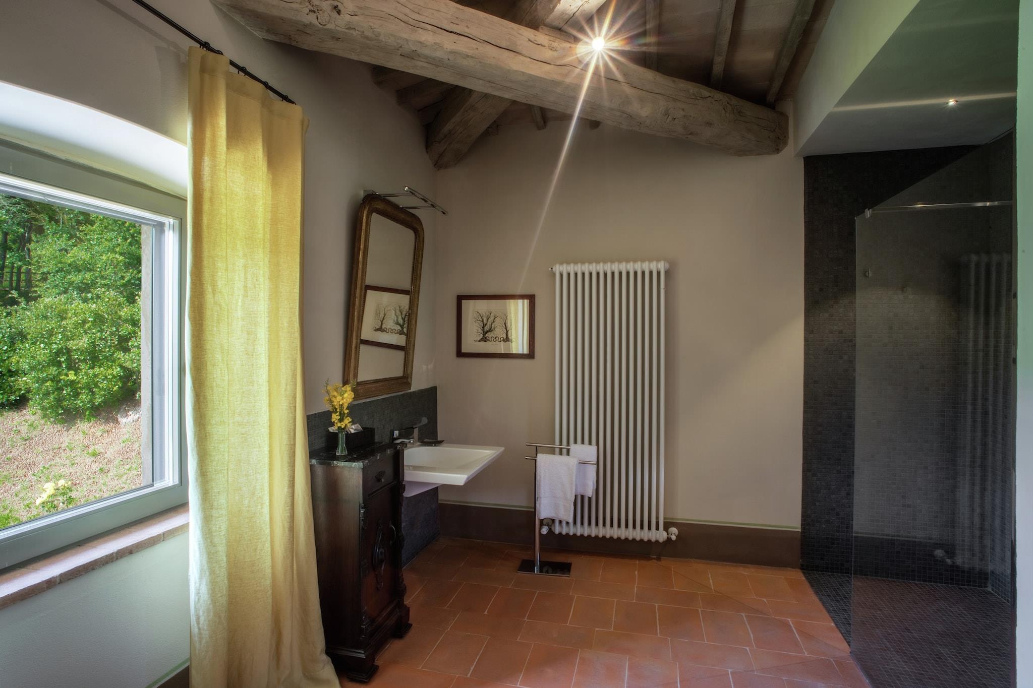 Elegant landlig charme Beliggende på en økologisk vingård i Arezzos bakker, er Villa Leo et tidløst toscansk tilflugtssted, hvor historie, natur og komfort mødes. Omgivet af frodige skove og vinmarker i 550 meters højde, tilbyder villaen en fantastisk udsigt over dalen og de nærliggende bakker. Dens traditionelle buer og originale stentrappe afspejler elegansen i det 18. århundredes arkitektur. Den private have, en rummelig terrasse og en swimmingpool kun få skridt væk skaber en idyllisk atmosfære til afslapning. Udforsk Toscanas kulturelle kerne Villa Leo er perfekt placeret til at opdage regionens rige kunstneriske og historiske arv. Kun en kort køretur væk glæder byen Arezzo besøgende med middelalderlige pladser, antikvitetsmarkeder og de imponerende fresker af Piero della Francesca. Ud over Arezzo kan du udforske den befæstede landsby Anghiari, den kunstneriske arv Sansepolcro og de fredfyldte landskaber i Cortona. Dagsture til Firenze og Siena tilbyder også ikonisk renæssancekunst, gotisk arkitektur og uforglemmelige udsigter over Toscanas bølgende bakker. Smag Toscanas bedste Madelskere vil finde masser at nyde i nærheden. Nyd autentisk toscansk mad på lokale restauranter i Arezzo, såsom Antica Osteria Agania eller Trattoria Il Saraceno, kendt for deres håndlavede pasta og sæsonbestemte retter. Vinentusiaster kan deltage i en guidet tur til ejendommens økologiske vinmarker og kælder, efterfulgt af en smagning af villaens egne vine - en perfekt måde at fordybe sig i regionens smage og historier.