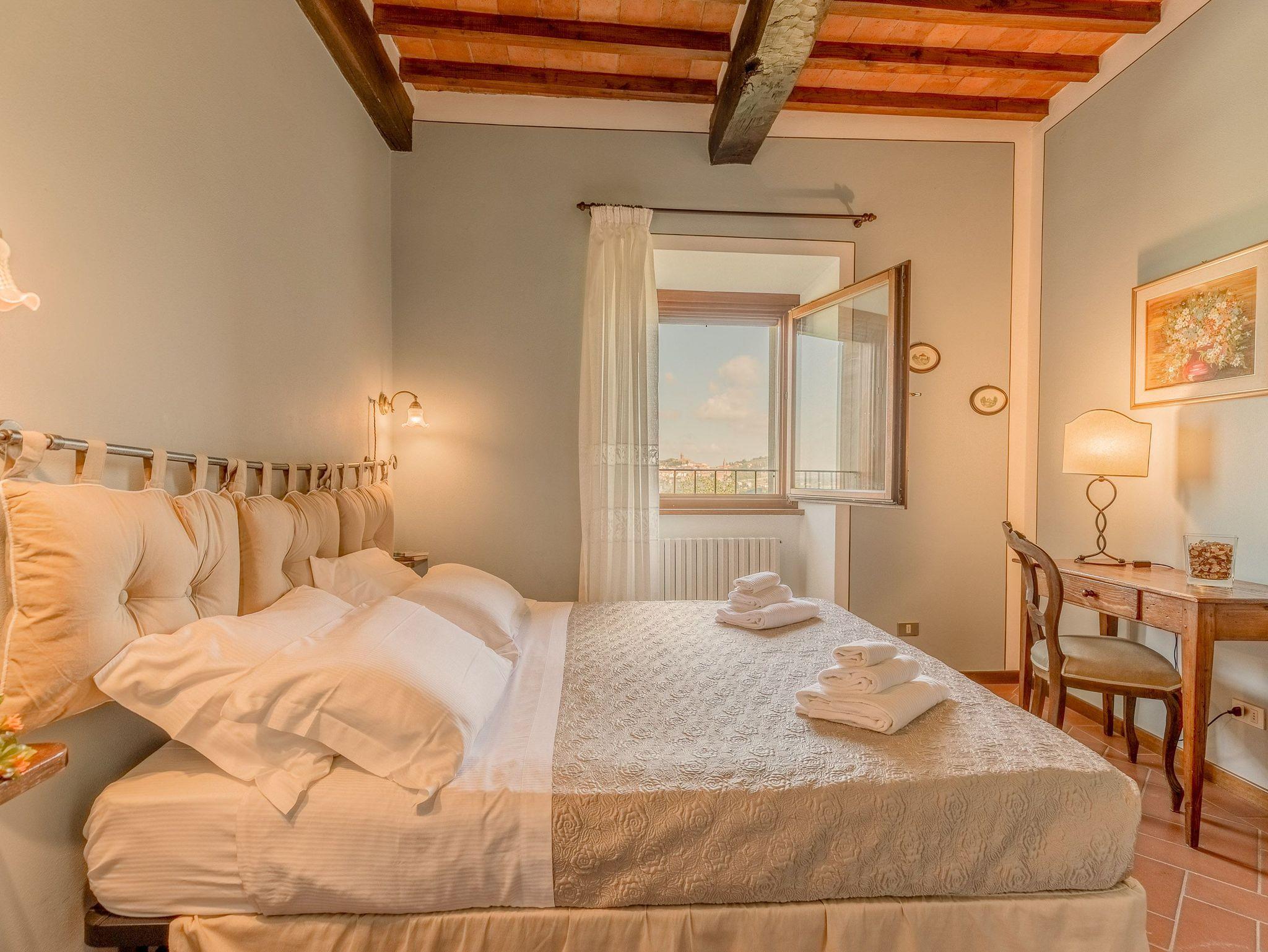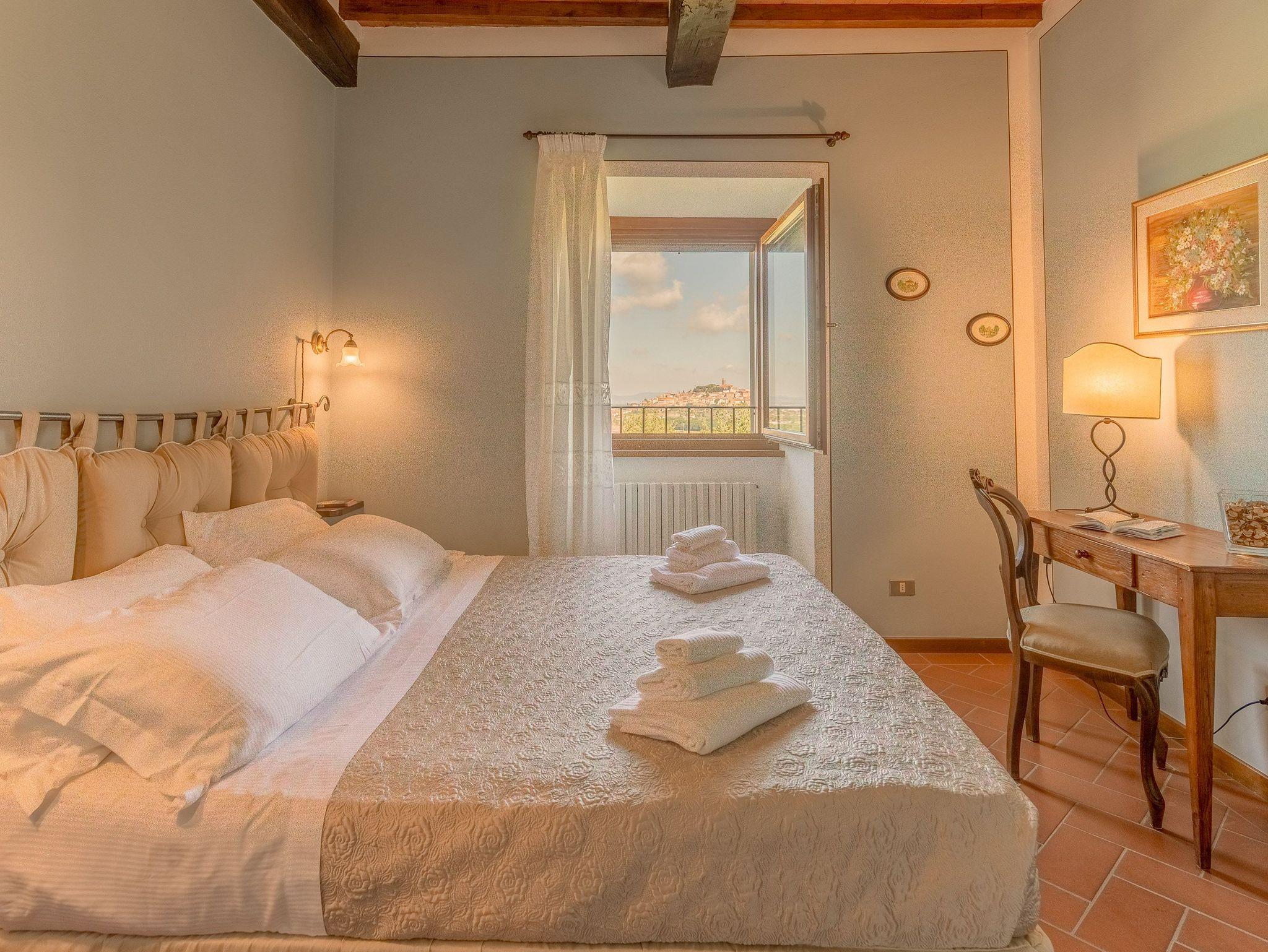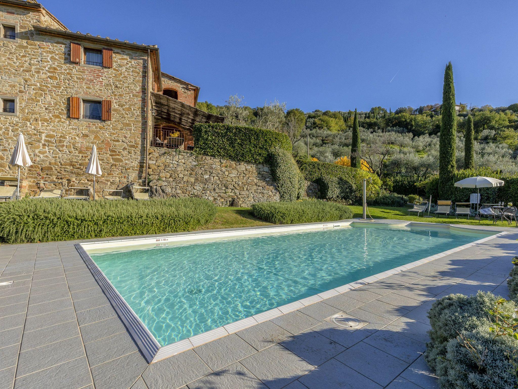 Diese prächtige Villa aus dem 17. Jahrhundert befindet sich nahe dem Dorf Castiglion Fiorentino und Arezzo. Umgeben von Olivenhainen, liegt die Villa in absoluter Alleinlage auf einem Hügel und bietet eine atemberaubende Aussicht ins Tal. Die Ferienvilla wurde 1996 liebevoll von den Gastgebern restauriert und zu einem Rückzugsort für Ruhesuchende und Toskana-Liebhaber gestaltet. Obwohl die ursprüngliche äußere Struktur beibehalten wurde, wurden im Inneren zwei unabhängige Wohneinheiten mit separaten Eingängen geschaffen, damit ein Urlaub mit Freunden oder der Familie eine wunderschöne Auszeit verspricht, ohne auf die eigene Privatsphäre zu verzichten. Der schöne 10 x 5 Meter große Pool ist von einem sehr großen, gepflegten Garten mit zahlreichen mediterranen Essenzen umgeben.