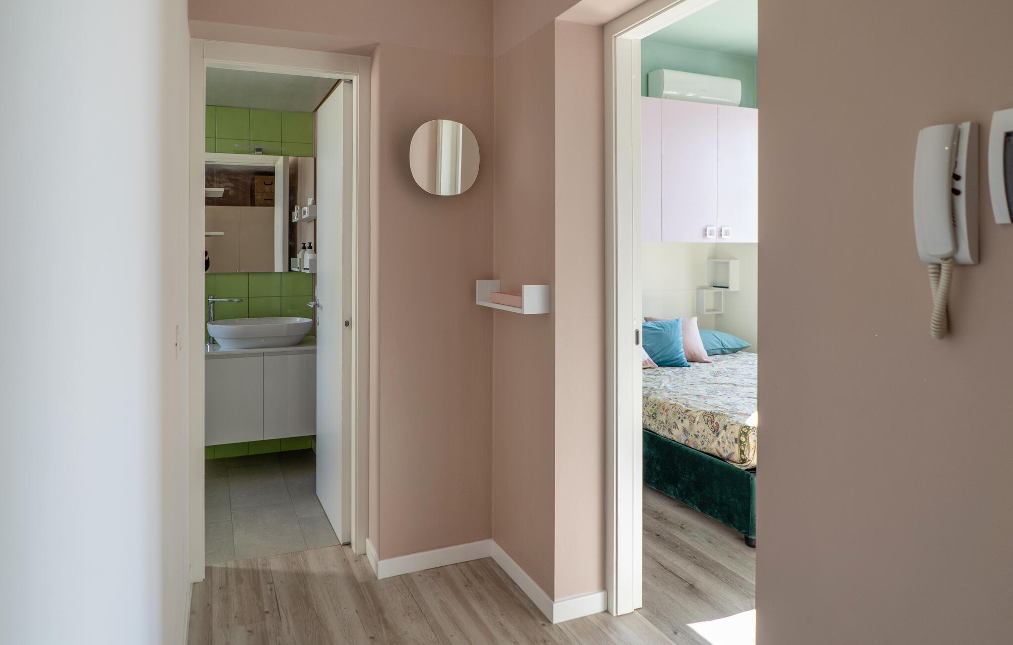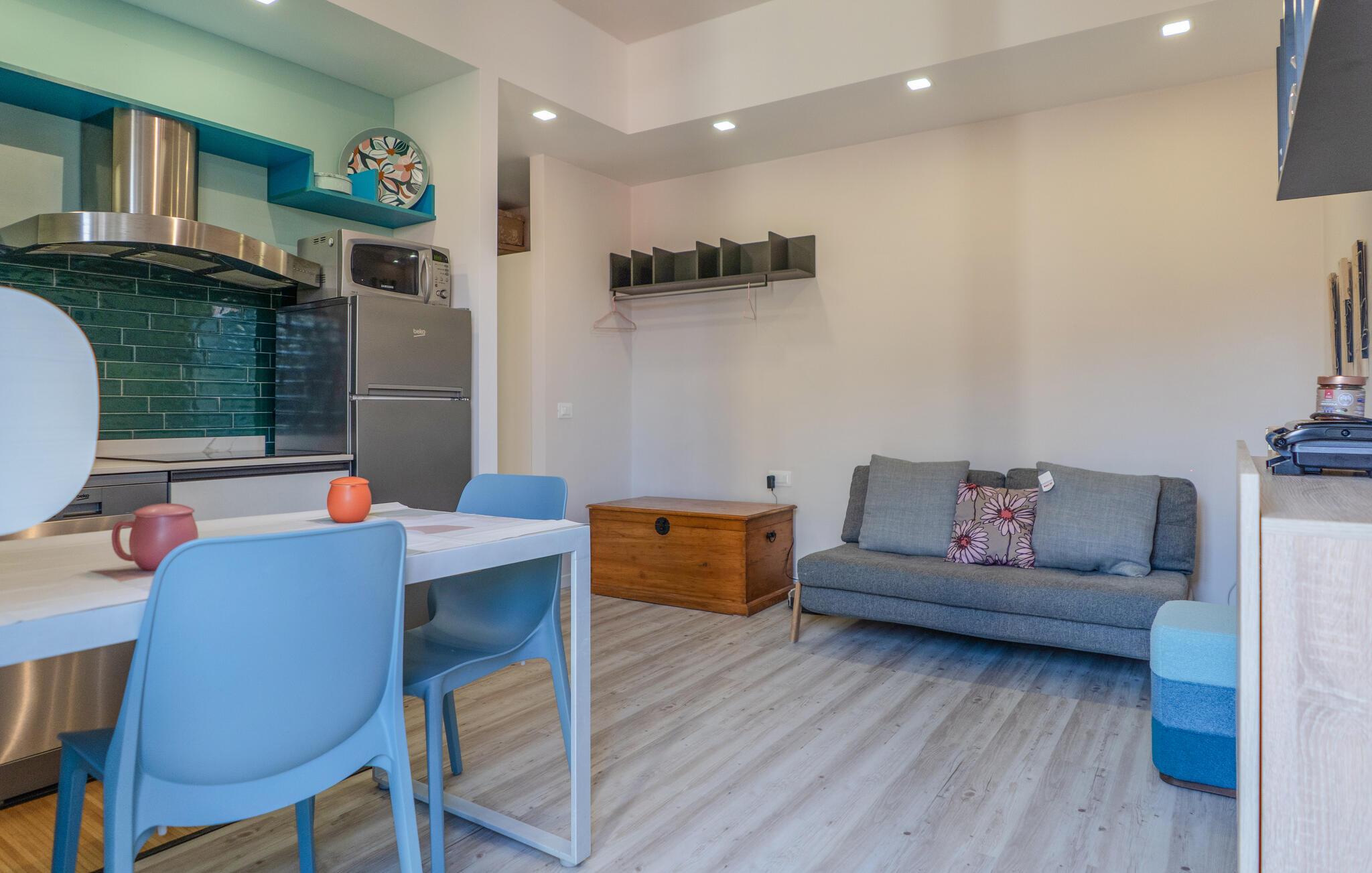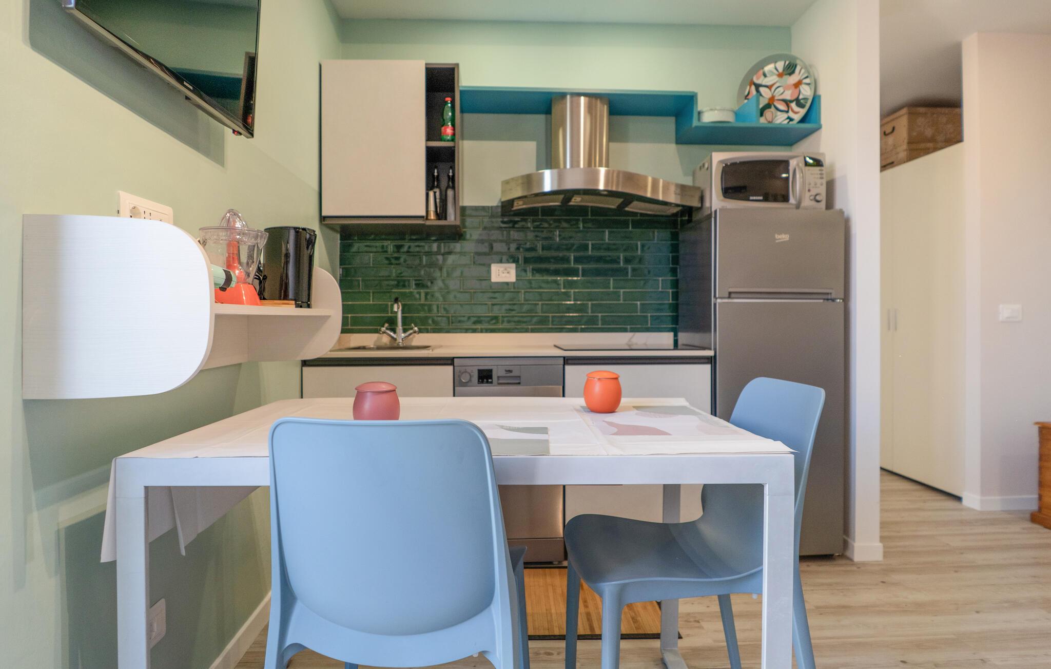 Velkommen til denne lyse og muntre ferielejlighed, som lægger op til at tilbringe afslappende dage i hjertet af Arona. Det smagfuldt og moderne indrettede interiør tilbyder jer et behageligt tilflugtssted året rundt, mens I udforsker den charmerende region omkring den fortryllende Lago Maggiore. Fremstil lækre retter med friske råvarer fra markedet, og planlæg dagens aktiviteter i fred og ro. Efter en lang dag kan I lægge fødderne op og fordybe jer i jeres ferielæsning eller streame en film.