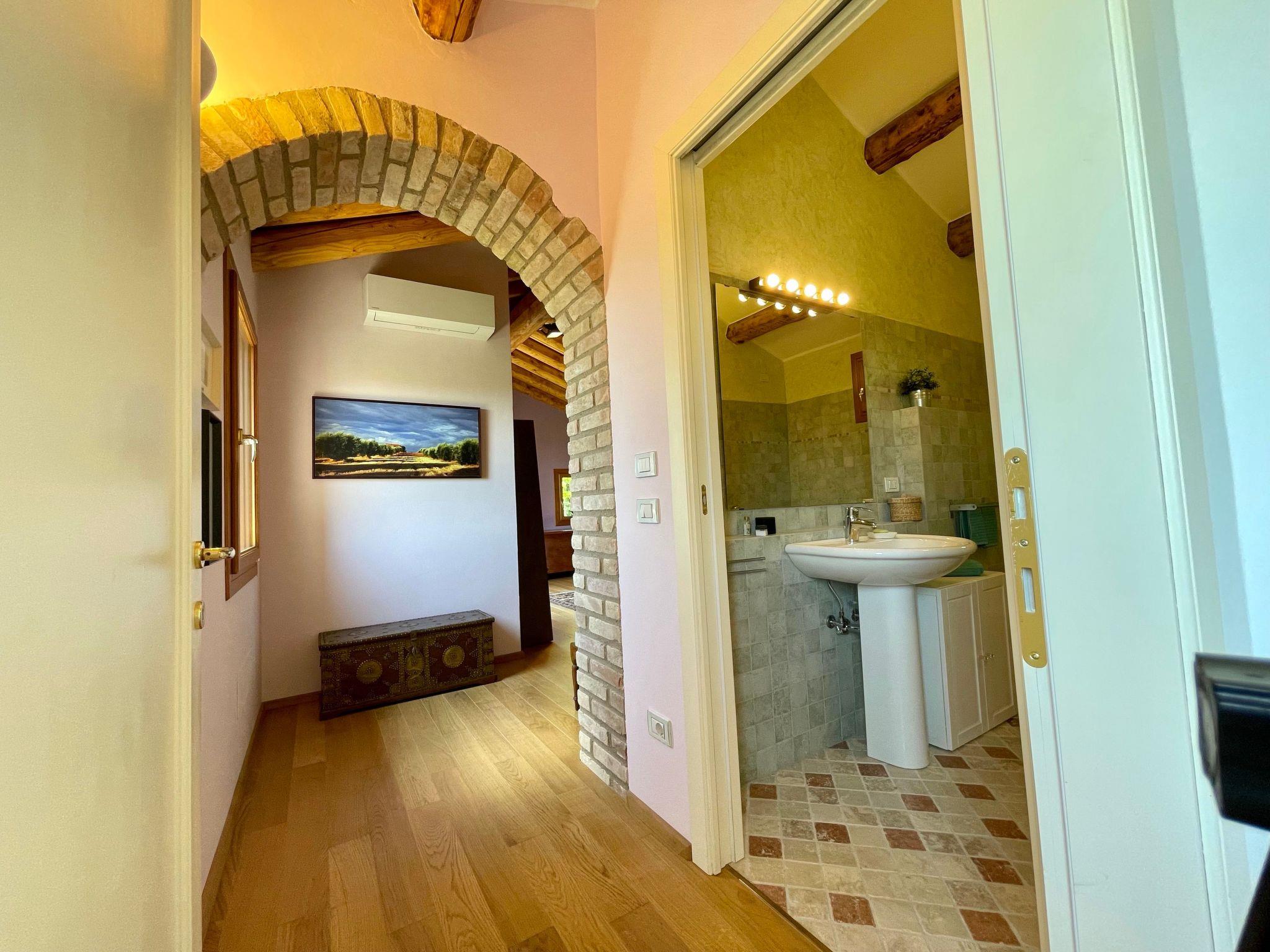 Immersed in the green of the Euganean Hills Regional Park, Villa degli Ulivi is an elegant country house with swimming pool, surrounded by 17,000 metres of land cultivated with olive trees and orchards, in the ancient and intact medieval village of Arquà Petrarca, in the province of Padua. This very characteristic village is considered one of the pearls of the Veneto region, is located in the heart of the Euganean Hills Park and is part of the circuit of the Most Beautiful Villages in Italy.