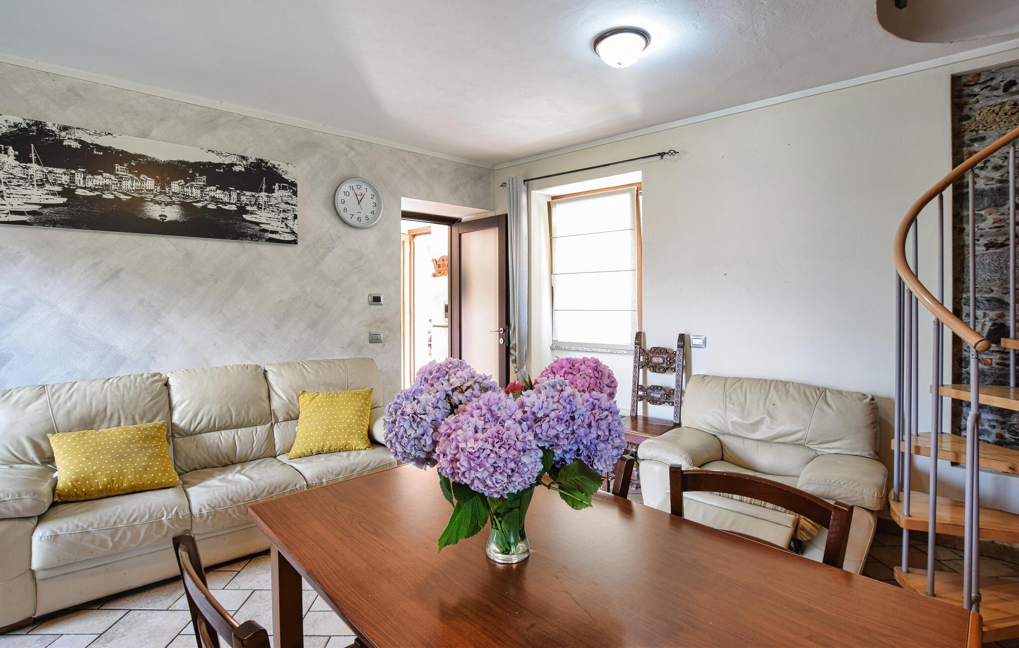 Kom til rette og udforsk de to etager i denne indbydende ferielejlighed. En dejlig ferieoplevelse følger jer gennem feriedagen, hvad enten I laver mad i det veludstyrede køkken eller slapper af på sofaerne. Her finder I alt, hvad I behøver for at føle jer hjemme. Den charmerende atmosfære vil hjælpe jer med at finde ro efter dagens aktiviteter.