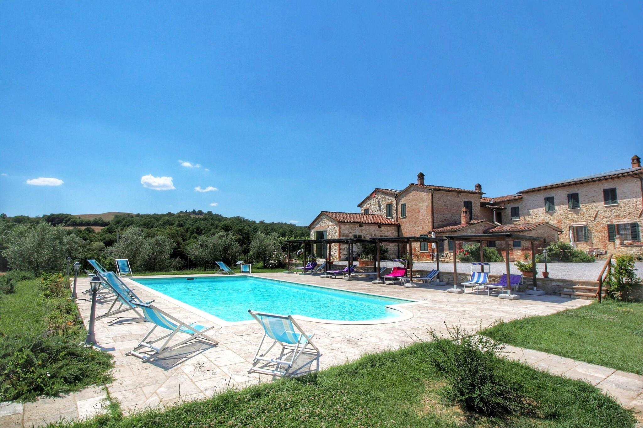 Dette smukt restaurerede gård er beliggende i provinsen Siena nær byen Asciano i hjertet af Kreta Senesi. Dette område er kendt for sin unikke skønhed og smukke farver hver sæson er different.Apartment Terra er en af de fire lejligheder. Det er en meget rummelig og smagfuldt møbleret lejlighed. Der er også en smuk swimmingpool med paraplyer og stole til at slappe af og nyde det toscanske landskab. Terra lejlighed har sit eget bord og stole med paraply på den karakteristiske gårdhave nær indgangen til lejligheden. To andre lejligheder har også eget bord og stole på gården. . De venlige og hjælpsomme ejere bor i et hus på grund af agriturismo og gør alt for at glæde gæsterne fornøjelsen. Takket være sin strategiske beliggenhed er det en ideel base for Firenze, San Gimignano, Volterra, Cortona, Pienza, Montalcino, Montepulciano. Sovesofaen er velegnet til børn op til 12 år. Huset er til 2 voksne og 1 barn under 12 år.Have en dejlig ferie i denne dejlige agriturismo med swimmingpool.