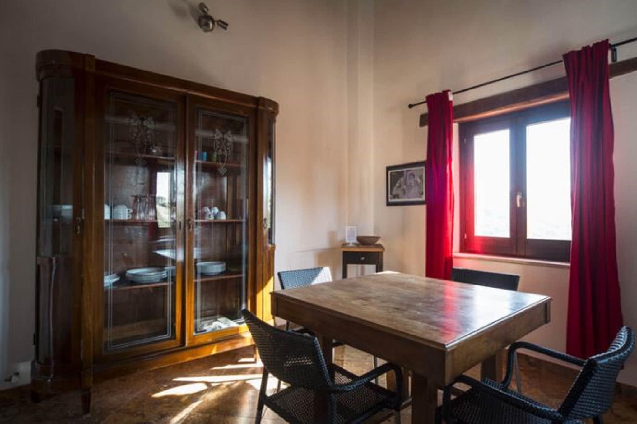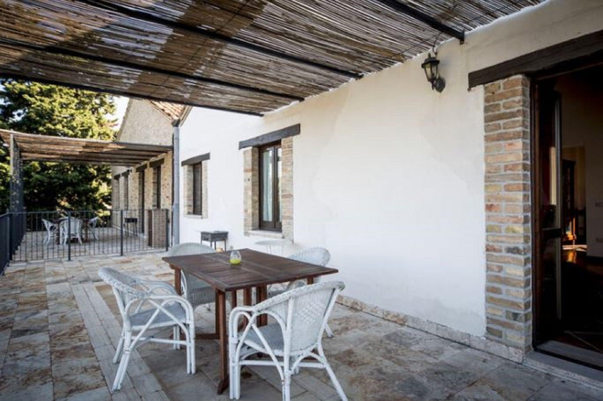 Dette charmerende, kæledyrsvenlige feriehus i Ascoli Piceno tilbyder et roligt tilflugtssted for op til fire gæster. Beliggende kun 2 km fra landsbyens centrum og 7 km fra Adriaterhavskysten, er det en ideel base for at udforske regionen. Besøgende kan beundre Piazza del Popolos renæssanceskønhed, den historiske Cattedrale di Sant'Emidio og Castel Trosinos middelalderlige charme. Området er også perfekt for naturelskere, med naturskønne stier og panoramaudsigtspunkter i nærheden. Lejligheden på første sal har en hyggelig stue med pejs og tv, et fuldt udstyret køkken med moderne apparater og to komfortable soveværelser, det ene med en dobbeltseng og det andet med to enkeltsenge. To badeværelser, herunder et med boblebad, sikrer afslapning og bekvemmelighed. Gæsterne kan slappe af på den private 30 m² store terrasse, nyde måltider i haven eller nyde solen ved den fælles udendørs pool. Yderligere faciliteter omfatter aircondition, vaskemaskine, grill, liggestole og cykler til at udforske landskabet. Omgivet af bølgende bakker og rig kultur byder området på dejlige spisesteder kun 2 km væk. Lokale favoritter omfatter Osteria Nonna Nina til traditionelle retter, Quanto Basta til middelhavssmag og Il Desco Ristorante til fiske- og skaldyrsspecialiteter. Uanset om du nyder det lokale køkken eller opdager historiske perler, er dette hjem et perfekt italiensk tilflugtssted.