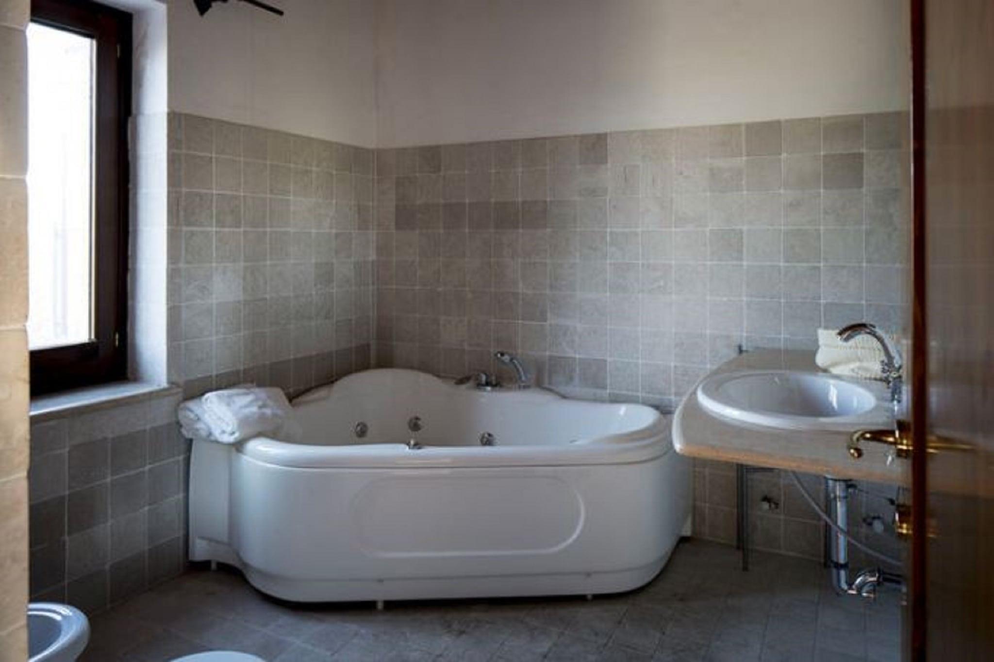 Dette hyggelige, kæledyrsvenlige feriehus i San Savino, Ascoli Piceno, tilbyder en fredelig flugt for familier eller par. Kun 2 km fra landsbyen og 7 km fra Adriaterhavskysten er det ideelt placeret til at udforske renæssancens skønhed Piazza del Popolo, den historiske Cattedrale di Sant'Emidio og den naturskønne landsby Castel Trosino på en bakketop. Området er rigt på kultur med nærliggende museer, kirker og panoramaudsigter, der viser Marche-regionens charme. Hjemmet har en varm stue/spisestue med pejs, tv og opholdsområde samt et fuldt udstyret åbent køkken med moderne apparater, herunder en opvaskemaskine, mikroovn og vaskemaskine. Soveværelset på mezzaninen har en dobbeltseng og en enkeltseng, mens badeværelset har et boblebad og et andet badeværelse med bidet. Gæsterne kan nyde den private 16 m² store terrasse, slappe af i haven med liggestole og grill eller tage en dukkert i den fælles udendørs pool. Aircondition, kaffemaskine og privat parkering bidrager til komforten. Området er omgivet af bølgende bakker og lokal smag, og byder på fremragende spisning kun 2 km væk. Nyd det traditionelle Marche-køkken på Osteria Nonna Nina, nyd fisk og skaldyr på Il Desco Ristorante, eller prøv rustikke retter på Quanto Basta. Uanset om du udforsker historiske vartegn eller slapper af under solen, er dette hjem en perfekt base for din italienske ferie.