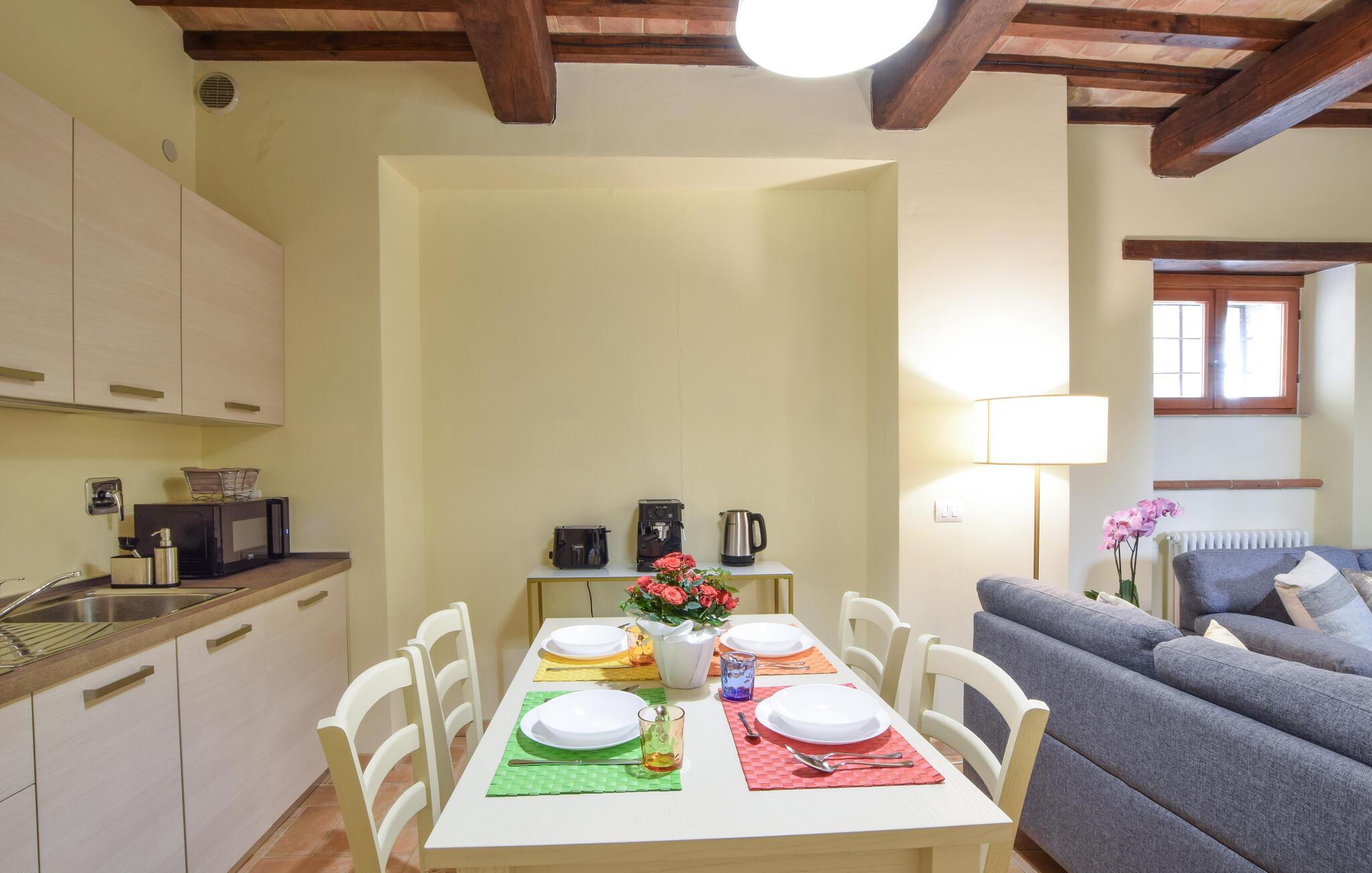Denne omhyggeligt renoverede ferielejlighed er en del af en fantastisk ejendom fra 1200-tallet og byder jer velkommen med en hyggelig atmosfære af smagfulde møbler og charmerende, autentiske detaljer. Server lækre pastaretter og sæt jer ved det indbydende spisebord. Planlæg jeres aktiviteter i fred og ro, og sæt jer til rette i sofaerne til en film eller en god bog efter en lang dag.