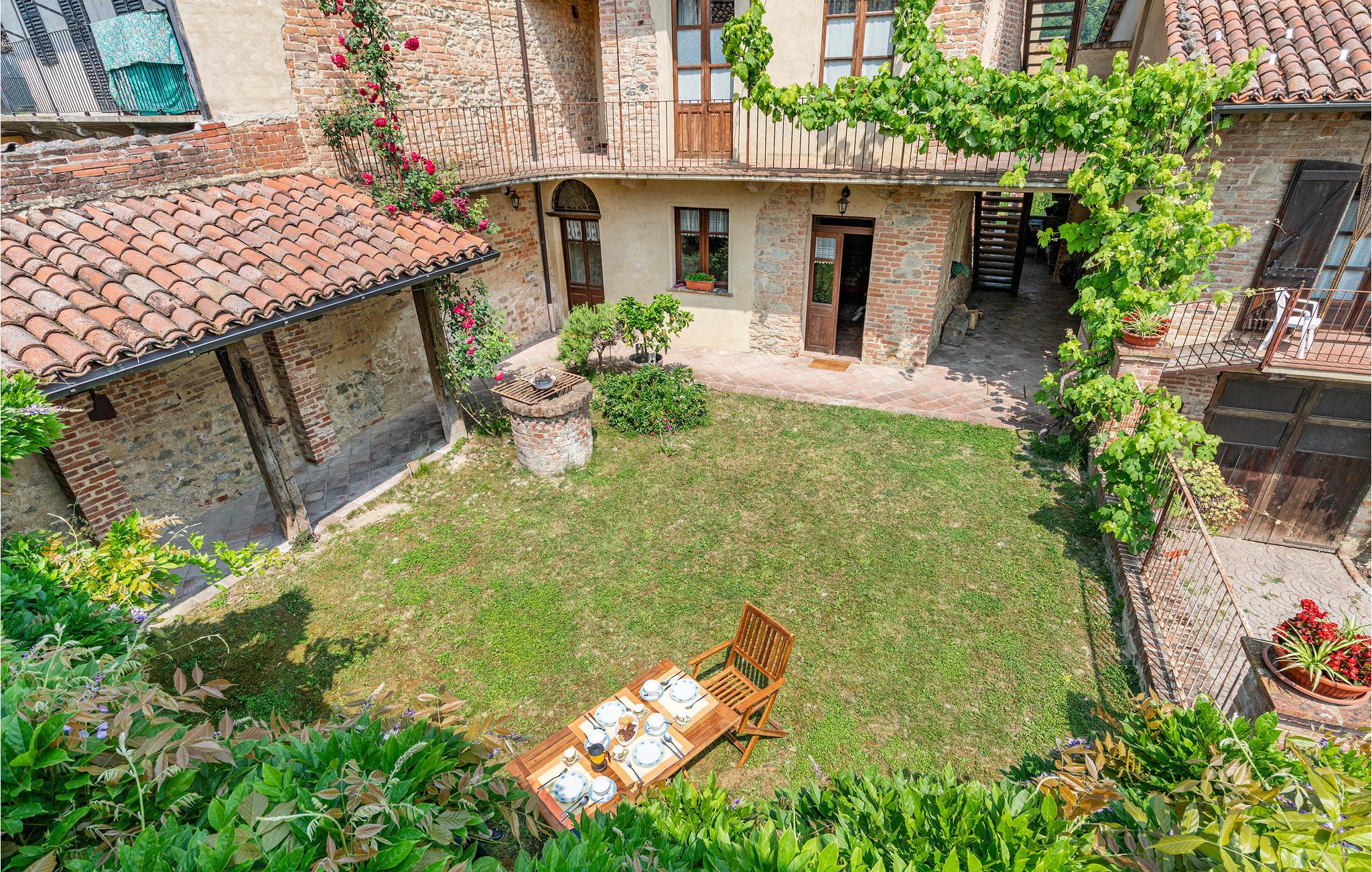 Rummeligt rækkehus i flere etager i Aramengo regionen i provinsen Asti. Huset er indrettet som et oprindeligt landsted i Piemonte. Et stort indhegnet udendørs område er indrettet med borde, stole, liggestole og en grill til behagelige timer udendørs. Der er 49 km til Torino, den Italiens første hovedstad med utallige monumenter og museer, især det berømte egyptiske museum og Det kongelige palads i Venaria Reale (51 km). På bestilling og mod betaling: vinsmagningskurser, madlavningskurser, trøffeljagt og catering. I stueplan er der opholdsområde, soveværelser på første sal og badeværelse i underetagen.