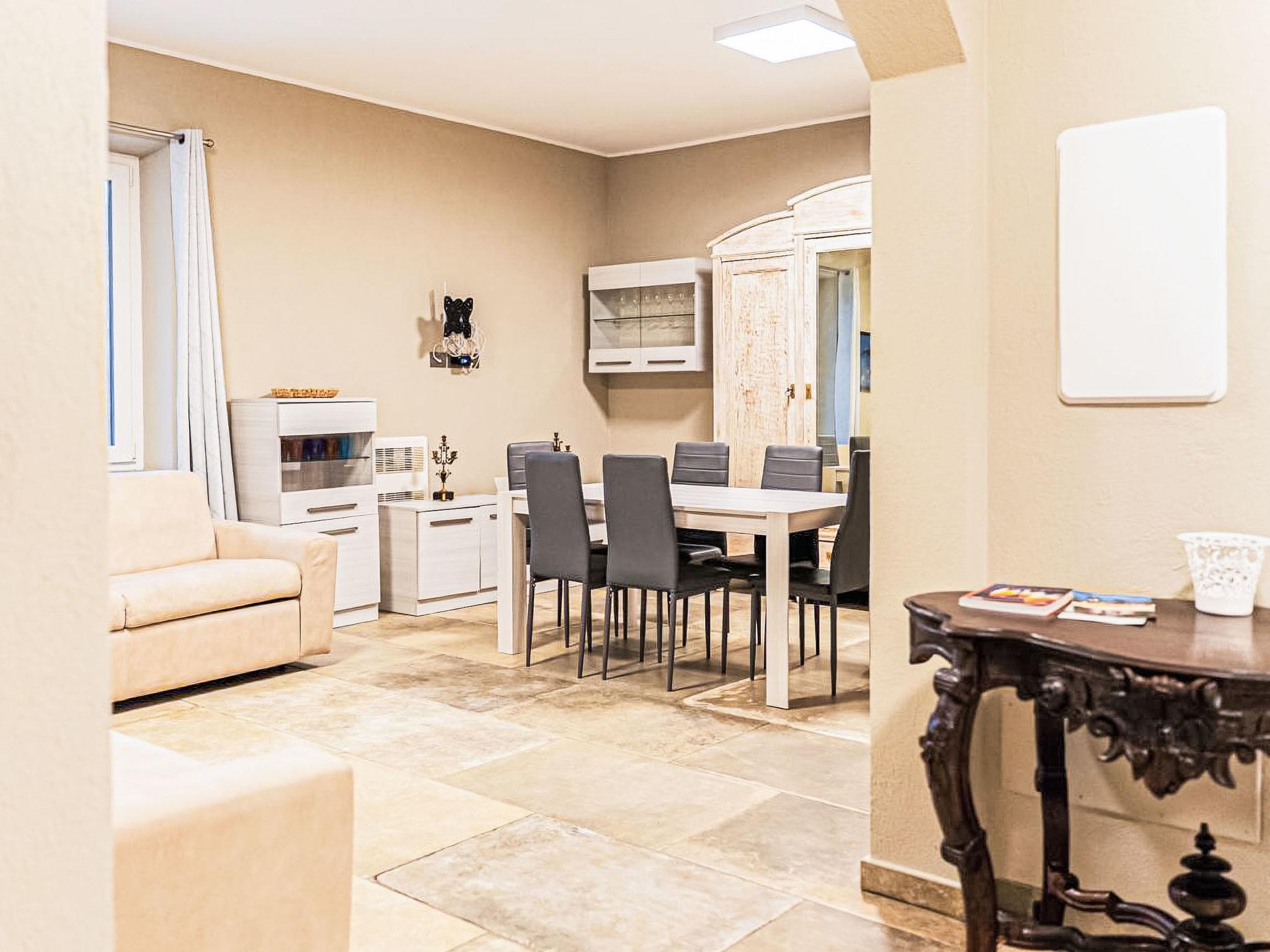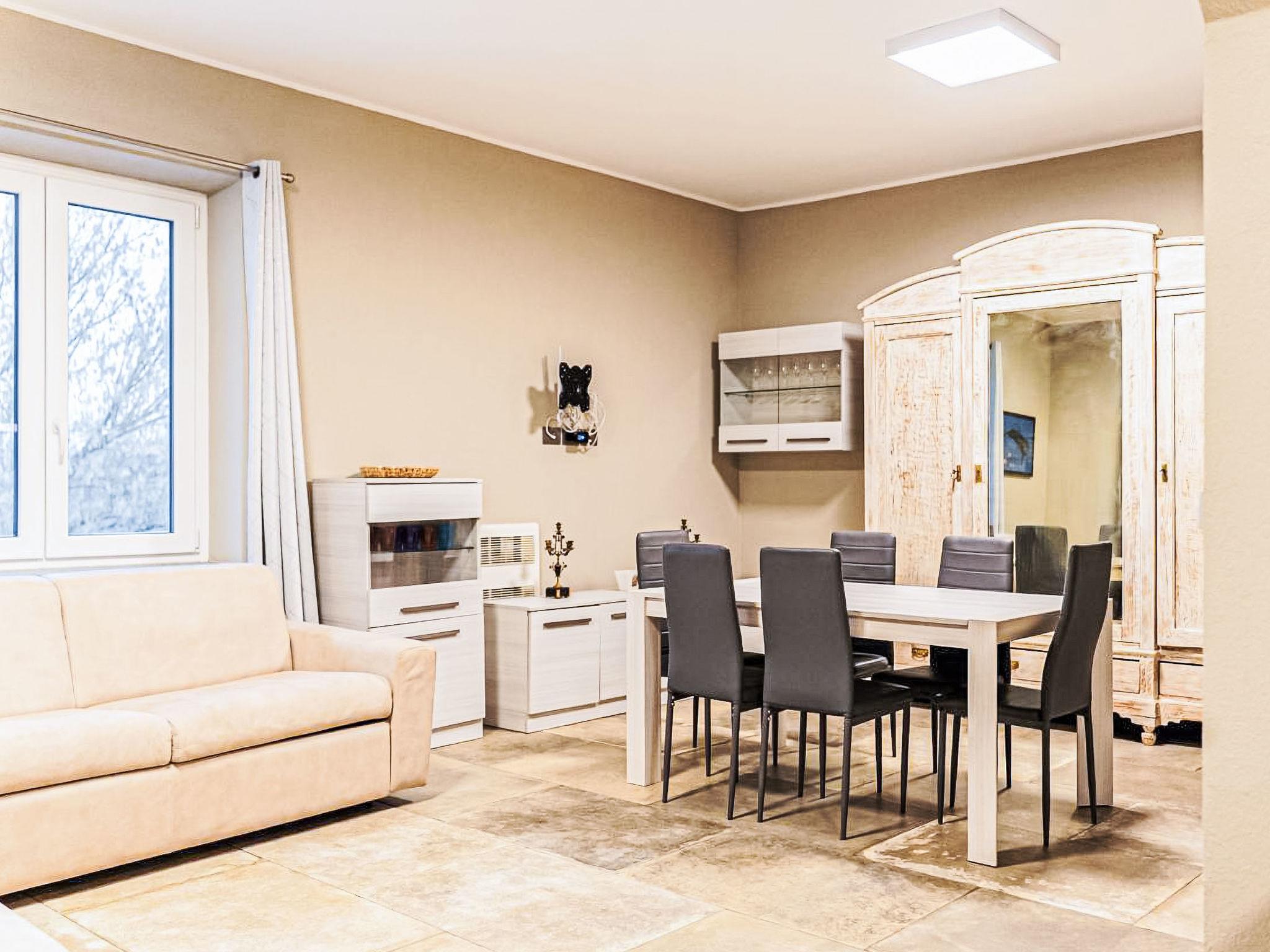 5-room semi-detached house 150 m2, on the ground floor. Modern and cosy furnishings: living/dining room with 1 double sofabed, dining table and TV. 1 room with 1 double bed (160 cm, length 190 cm). Living/sleeping room with 1 double sofabed, dining table and kitchen corner. 1 room with 1 double bed (160 cm, length 190 cm). 1 room with 2 beds. Kitchenette (oven, 4 induction hot plates, toaster, kettle, electric coffee machine) with TV. 2 showers/bidet/WC. Underfloor heating. Heating available only from 15.10. to 30.04. Natural stone floors. Patio roofed. Terrace furniture. Beautiful panoramic view of the countryside. Facilities: hair dryer. Internet (WiFi, free). Please note: 1 pet/ dog allowed. Private entrance, smoke alarm, fire extinguisher. No internal connecting door between the separated properties. IT005005B4W6MTTKNE