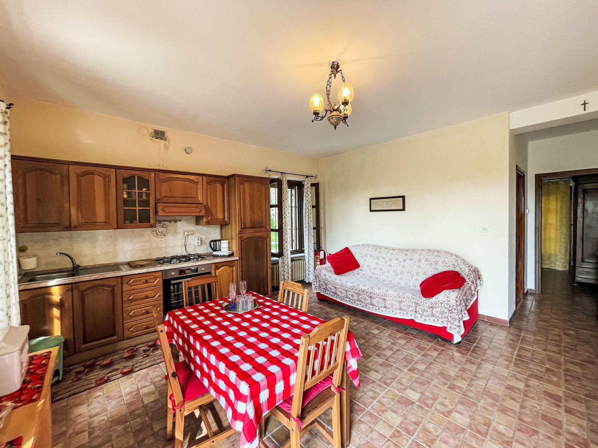 "Tulipano", 2-room apartment 70 m2, on the ground floor. Practical and rustic furnishings: living/sleeping room with 1 double sofabed (140 cm), TV. Exit to the garden. 1 double bedroom. Kitchenette (oven, Gas stove, 4 gas rings, toaster, kettle, electric coffee machine). Exit to the garden. Bath/WC. Heating available only from 01.10. to 30.04. Natural stone floors. Small terrace 15 m2, large patio. Beautiful panoramic view of the countryside. Facilities: children's high chair, baby cot for up to 2 year olds. Internet (WiFi, free). Please note: maximum 1 pet/ dog allowed. Smoke alarm, fire extinguisher. IT005005B56JM69RP4