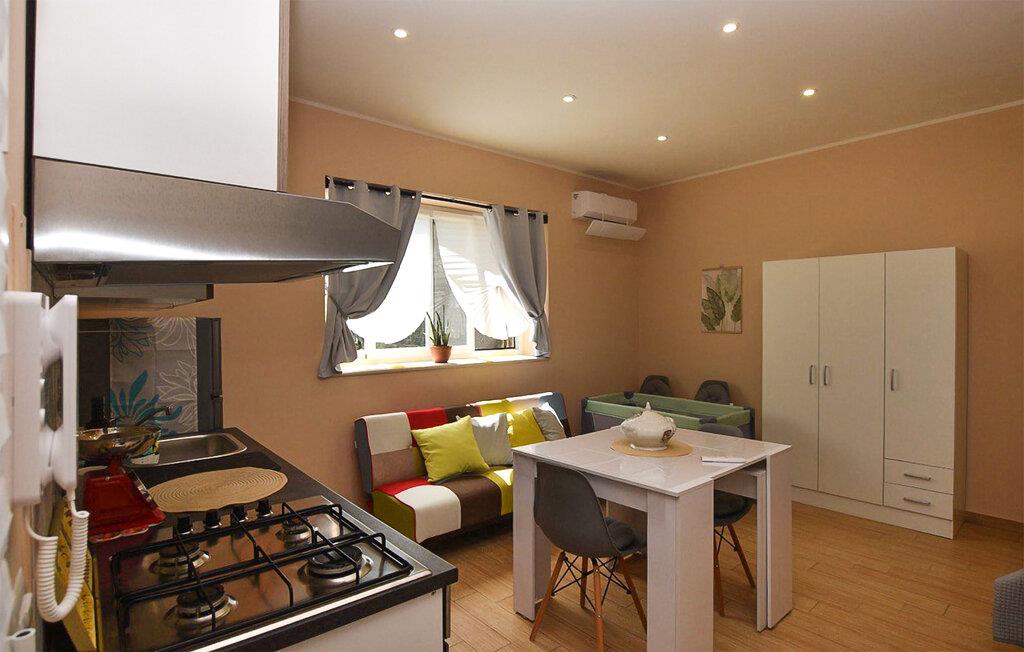 Jeres bolig nær Brucoli er kompakt og velegnet til par eller en lille familie, der ønsker en pause tæt på stranden. Den nærmeste sandstrand, hvor I kan nyde solrige dage og det klare vand fra Middelhavet, ligger kun en kort afstand fra jeres lejlighed. Benyt den indbydende, overdækkede terrasse til at slappe af udendørs. Nyd jeres måltider udenfor, og lad den friske luft virke ind på jer. Indenfor finder I et lille køkken og et opholdsområde, der forener komfort og funktionalitet. Slap af efter en dag fuld af oplevelser i denne hyggelige atmosfære.