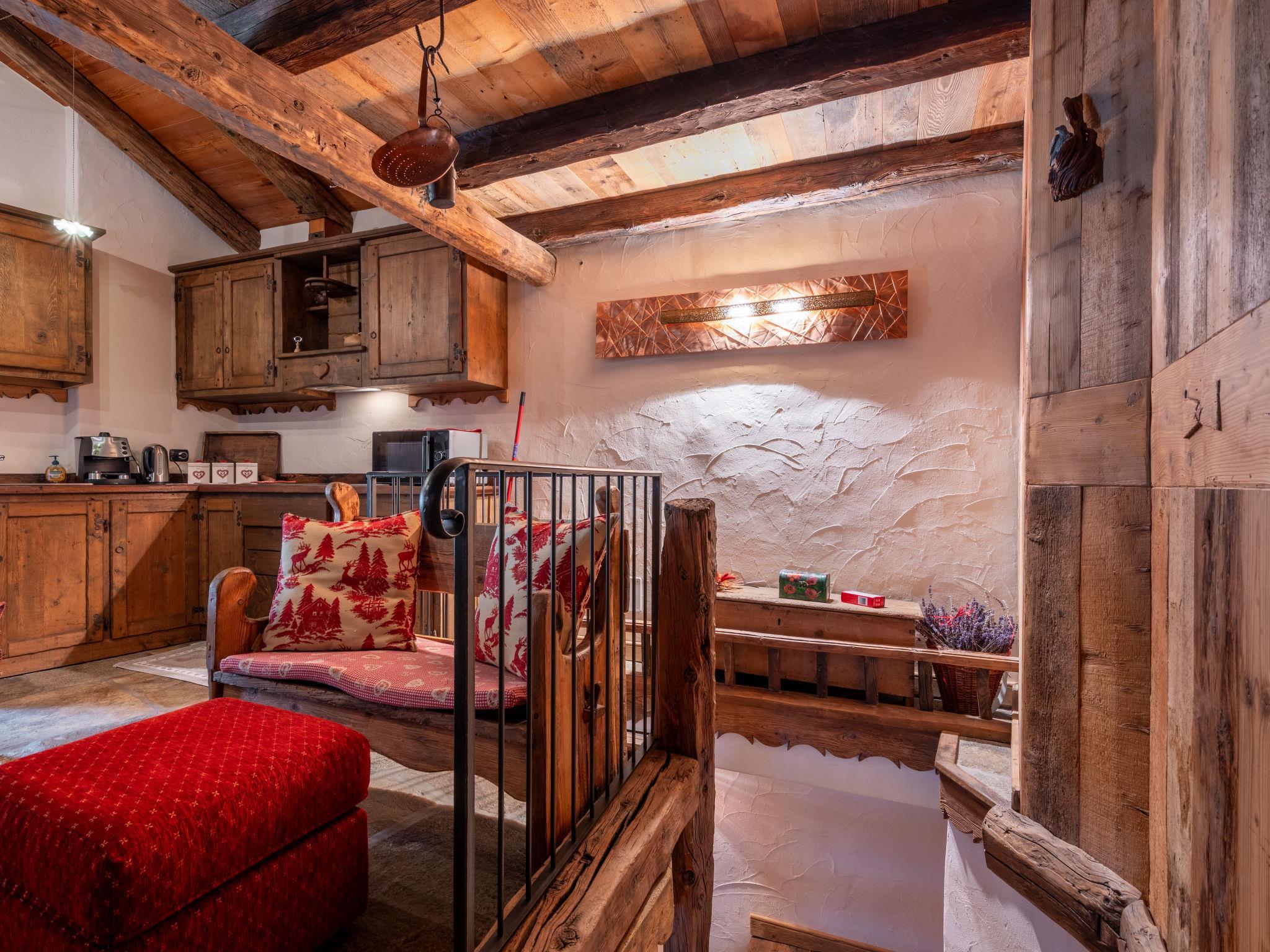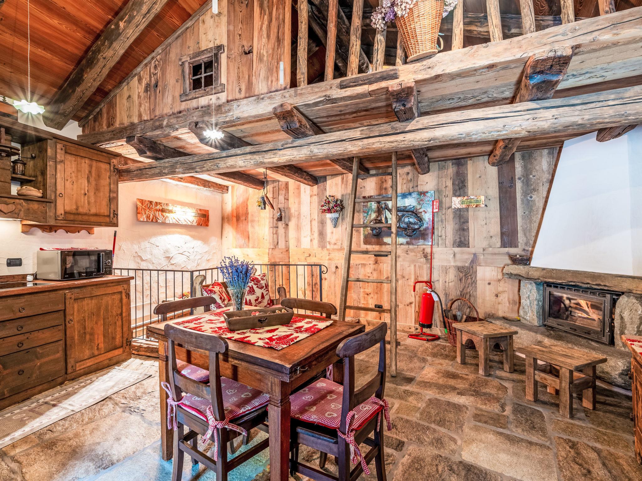 2-room apartment 40 m2 on 2 levels. Partly with sloping ceilings, fully renovated in 2016, comfortable and wooden furniture furnishings: living/dining room with open-hearth fireplace, dining table, kitchen corner and TV (flat screen). Kitchenette (4 induction hot plates, microwave, electric coffee machine). On the lower ground floor: 1 double bedroom with shower/bidet/WC. Exit to the terrace. Deck chairs. Partial view of the mountains and the valley. Facilities: hair dryer, logs (free). Please note: non-smokers only. Private entrance. IT007006C25YXXT3ST