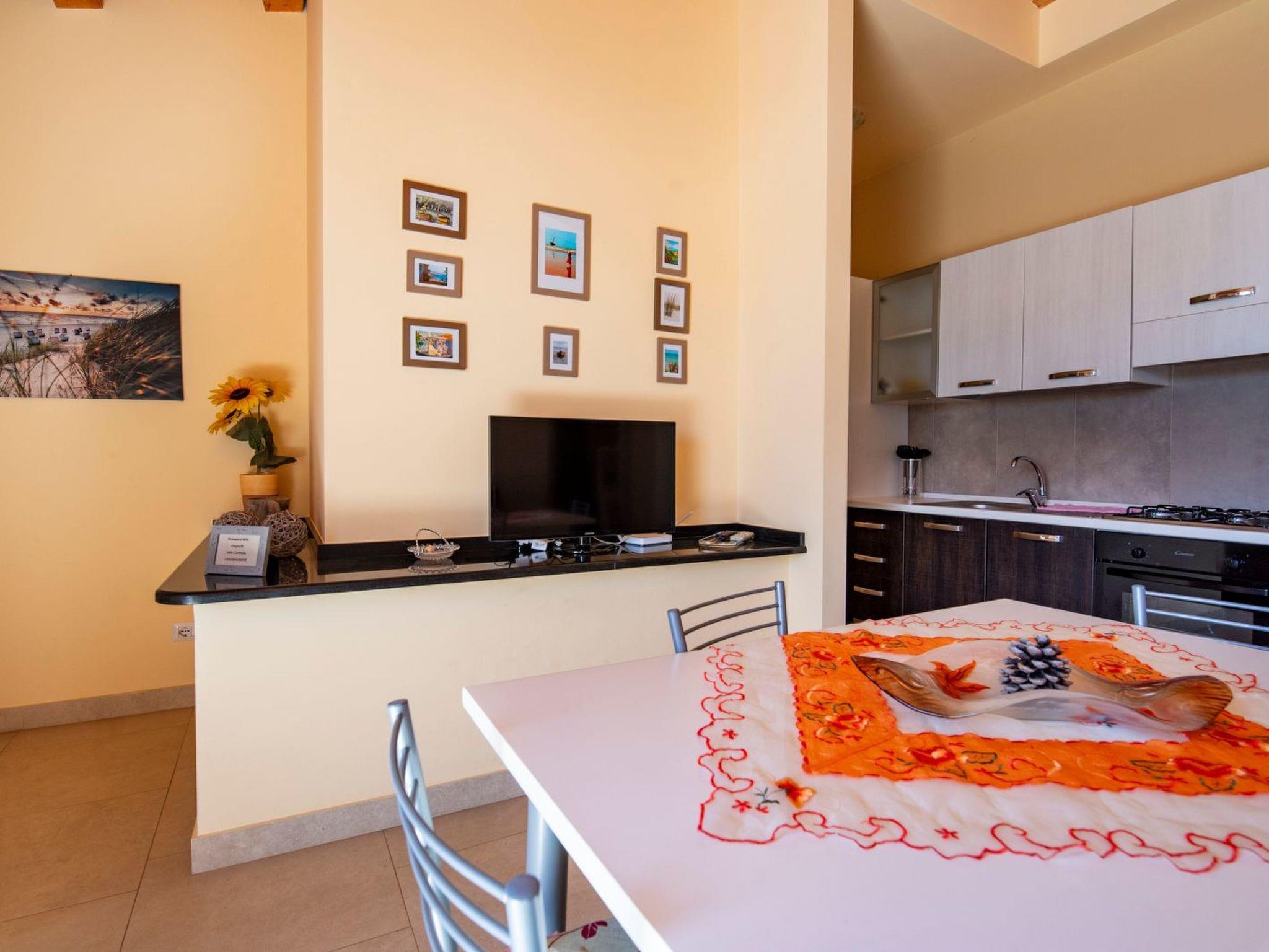 It has a spacious kitchen/living room with exposed beams and complete with all utensils and a sofa bed, a bedroom with a double bed and one with two single beds. The strength of the Villa is its large outdoor area and the veranda furnished with tables and chairs, with a sea view that will invite you to relax with a glass of good wine or simply enjoy an excellent dinner with the sound of the sea in the background.