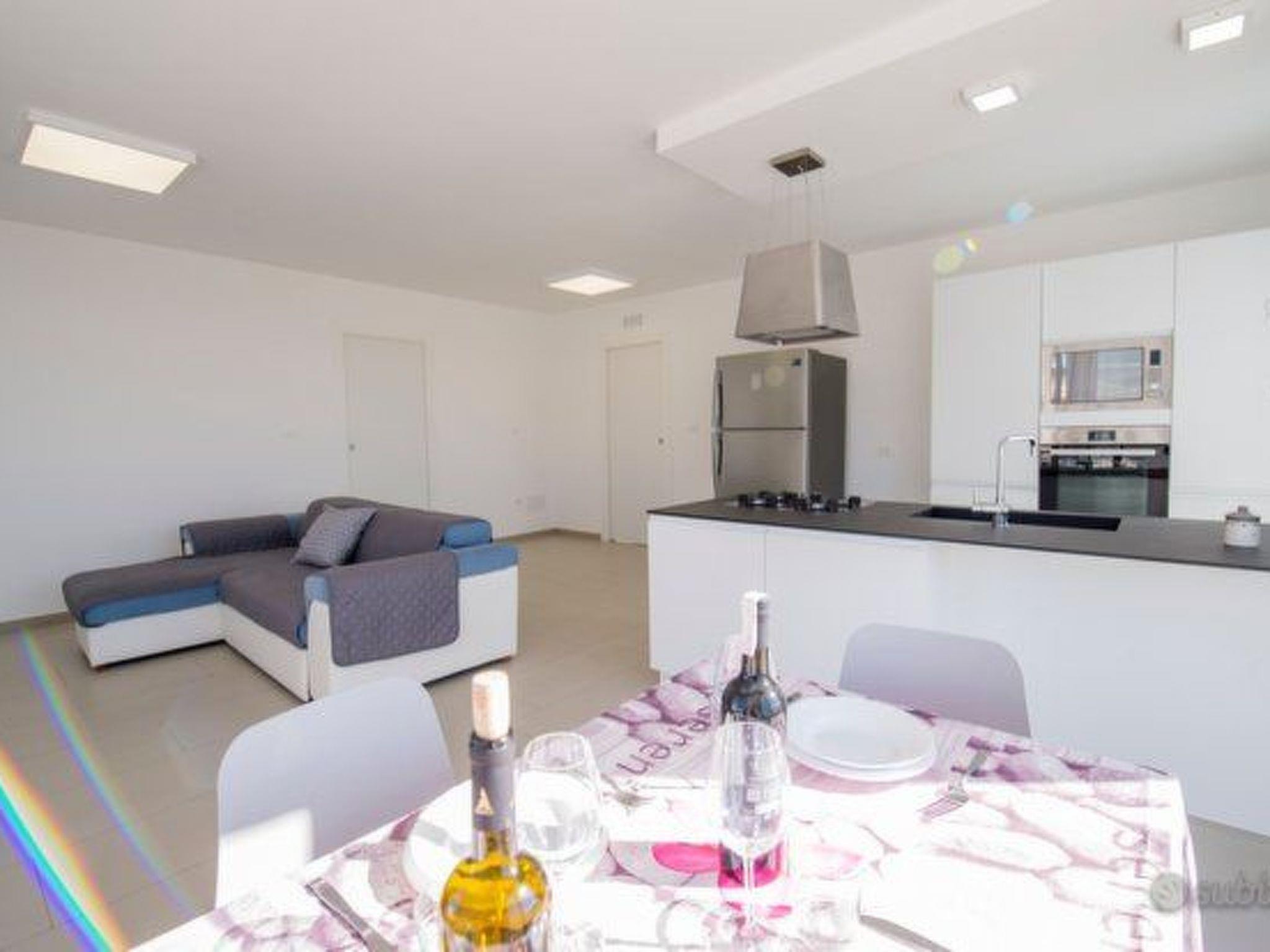 Die Onde di Sicilia Suite, eine Villa mit vier völlig unabhängigen Wohnungen, befindet sich im ersten Stock und verfügt über eine große Terrasse und einen herrlichen Blick aufs Meer. Sie besteht aus einer voll ausgestatteten Küche, einer Kochecke mit zentraler Kochinsel und großen Fenstern mit Blick aufs Meer, einem Entspannungsbereich mit Fernseher und einem großen Sofa. Der Schlafbereich besteht aus drei Doppelzimmern, eines davon mit eigenem Bad und Dusche. Jede Wohnung in der Struktur (3 Wohnungen im Erdgeschoss und 1 Suite im ersten Stock) verfügt über einen eigenen Parkplatz für 1 Fahrzeug auf dem Gemeinschaftsparkplatz.