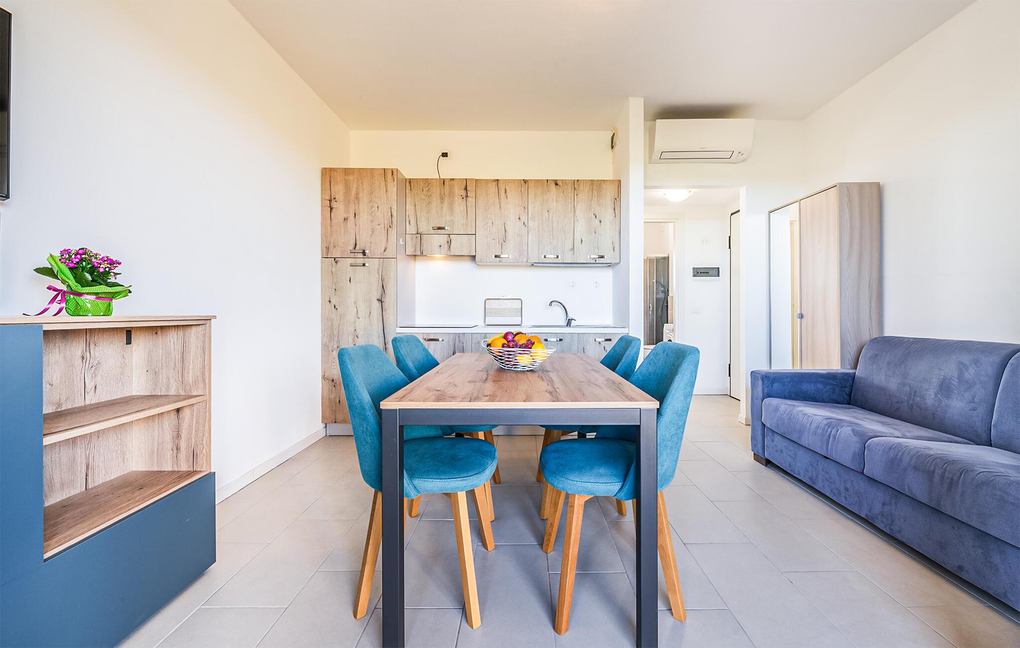 Denne lyse og smagfulde lejlighed ligger kun få skridt fra det turkisblå vand og tilbyder den perfekte base for en afslappende ferie med familien. Tilbered middelhavsretter, find sammen omkring spisebordet og nyd en behagelig aftenbrise under harmoniske spilleaftener.