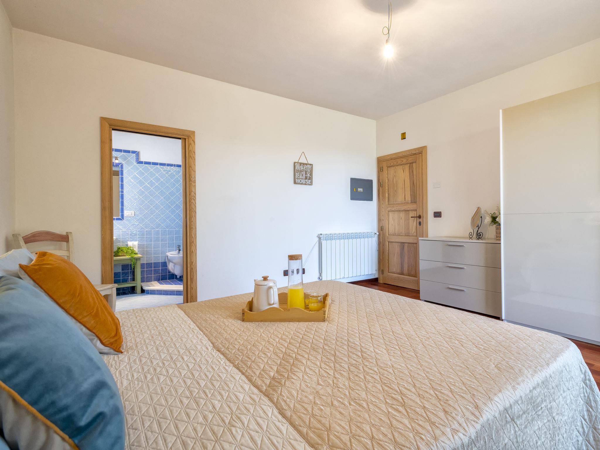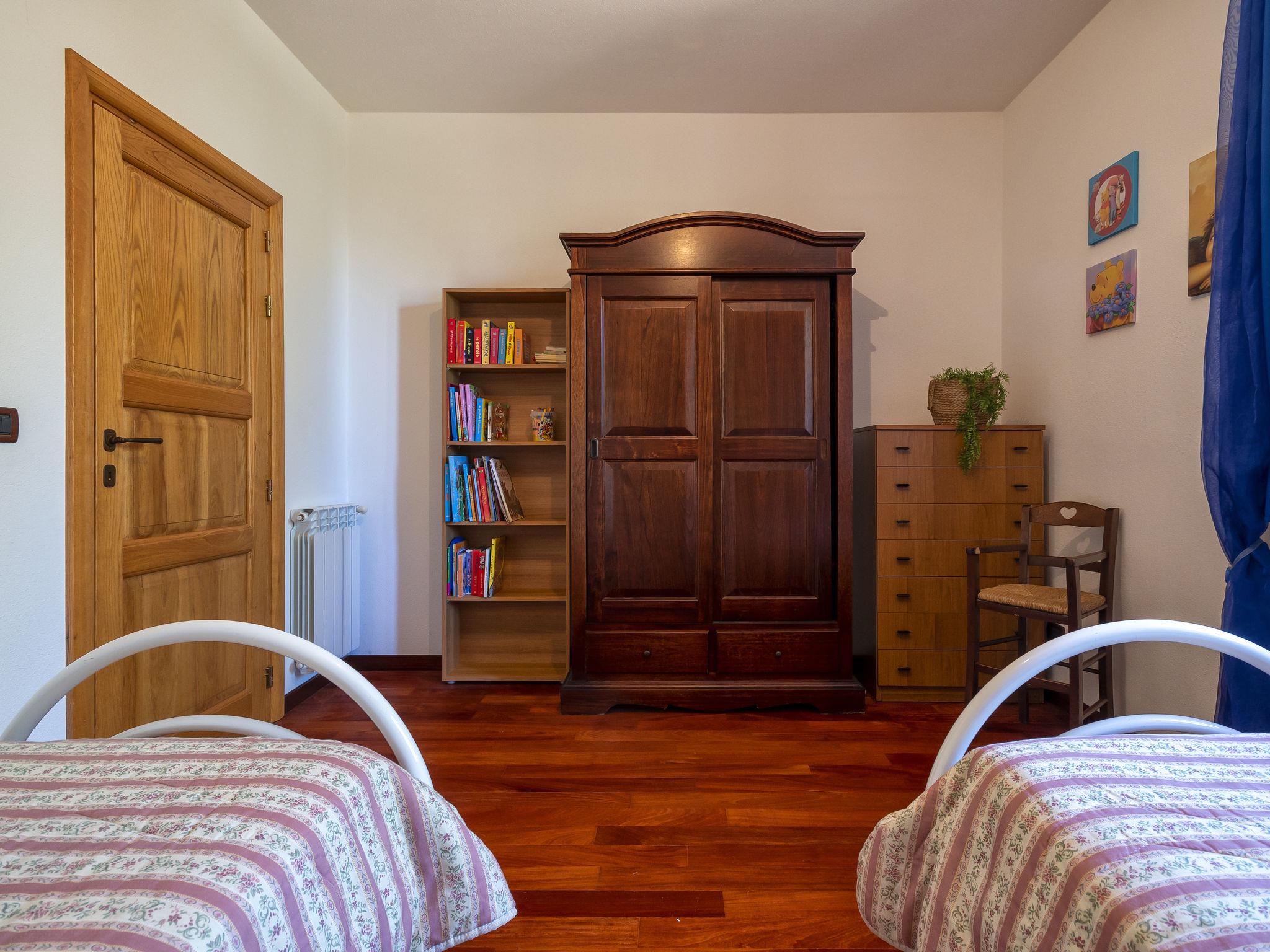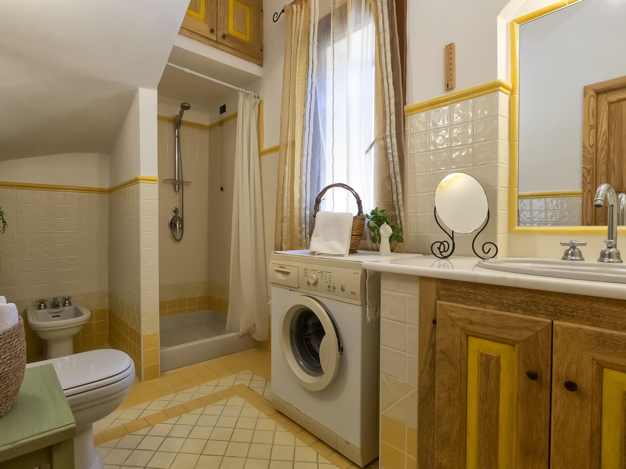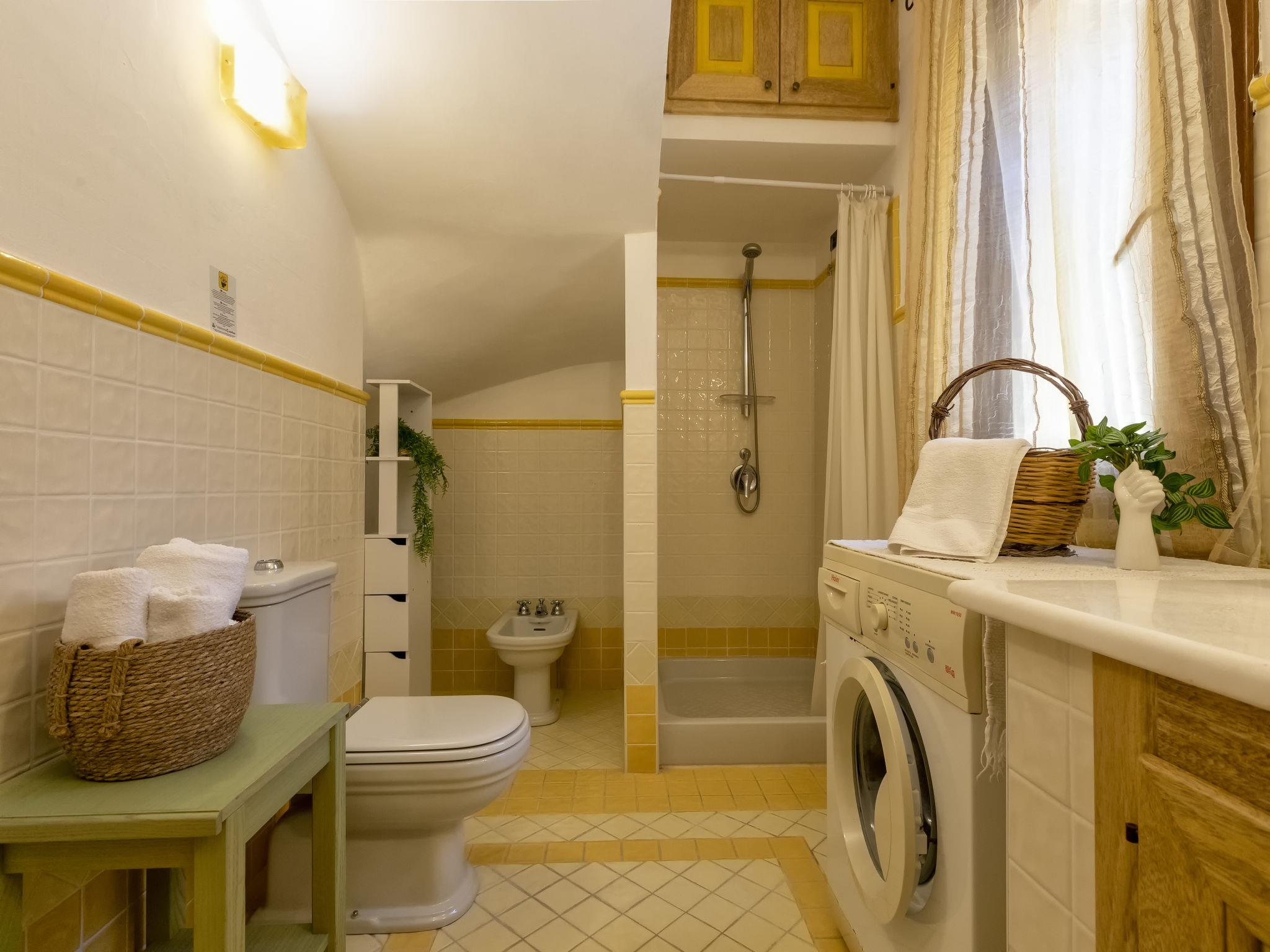 5-room house 120 m2 on 2 levels. Large living room with TV (flat screen). Exit to the patio. Kitchen-/living room (4 hot plates, oven, dishwasher, microwave, freezer). Exit to the garden. Shower/bidet/WC. Upper floor: with 1 bed and 1 double bed. Exit to the terrace. 1 children's room with 2 beds. 1 double bedroom with shower/bidet/WC and hydro massage shower. Exit to the terrace. Bath/shower/bidet/WC. No heating option. Parquet floors. Facilities: washing machine. Internet (WiFi, free). Parking. Please note: private entrance. IT090081C2000Q2777