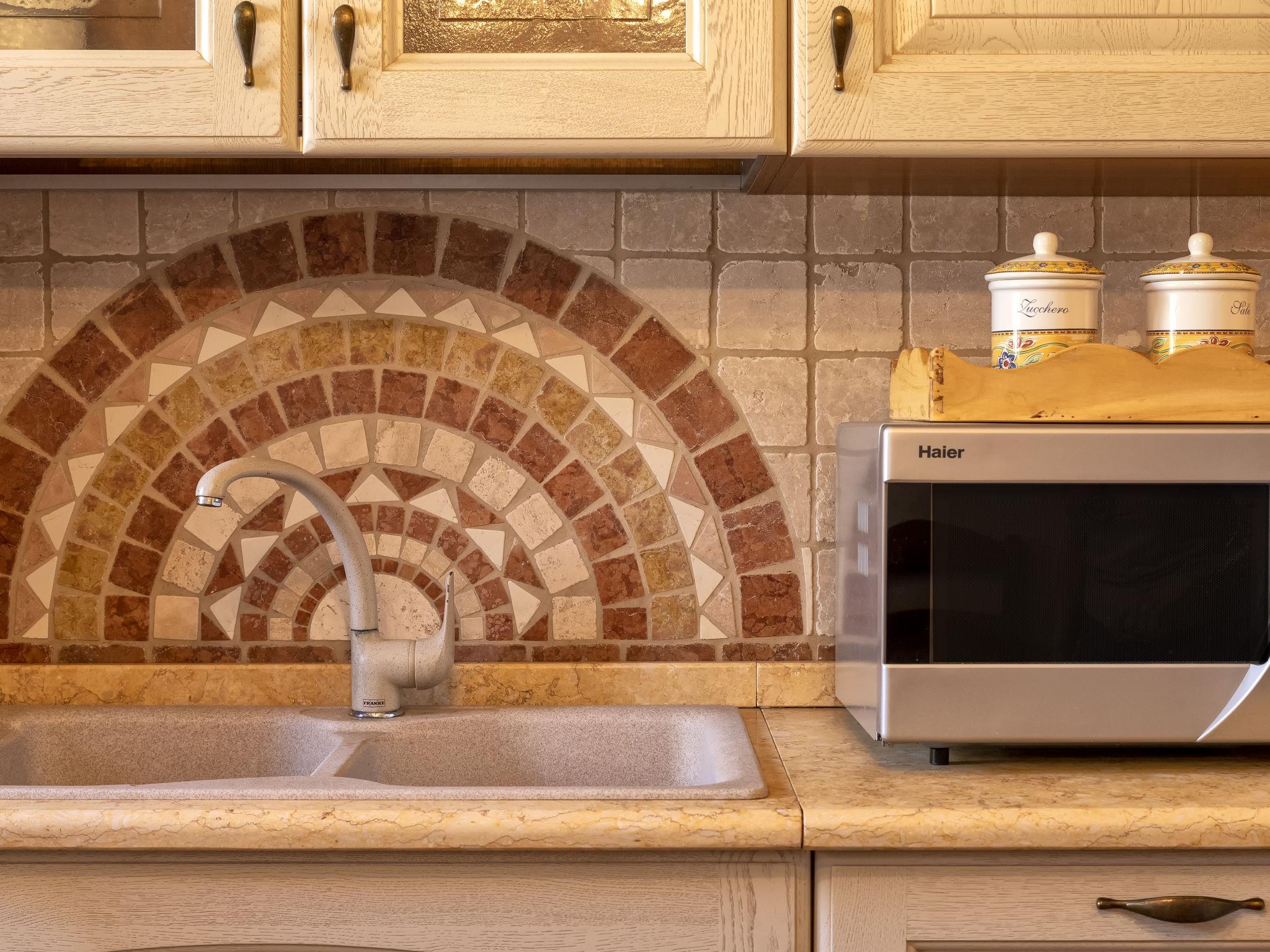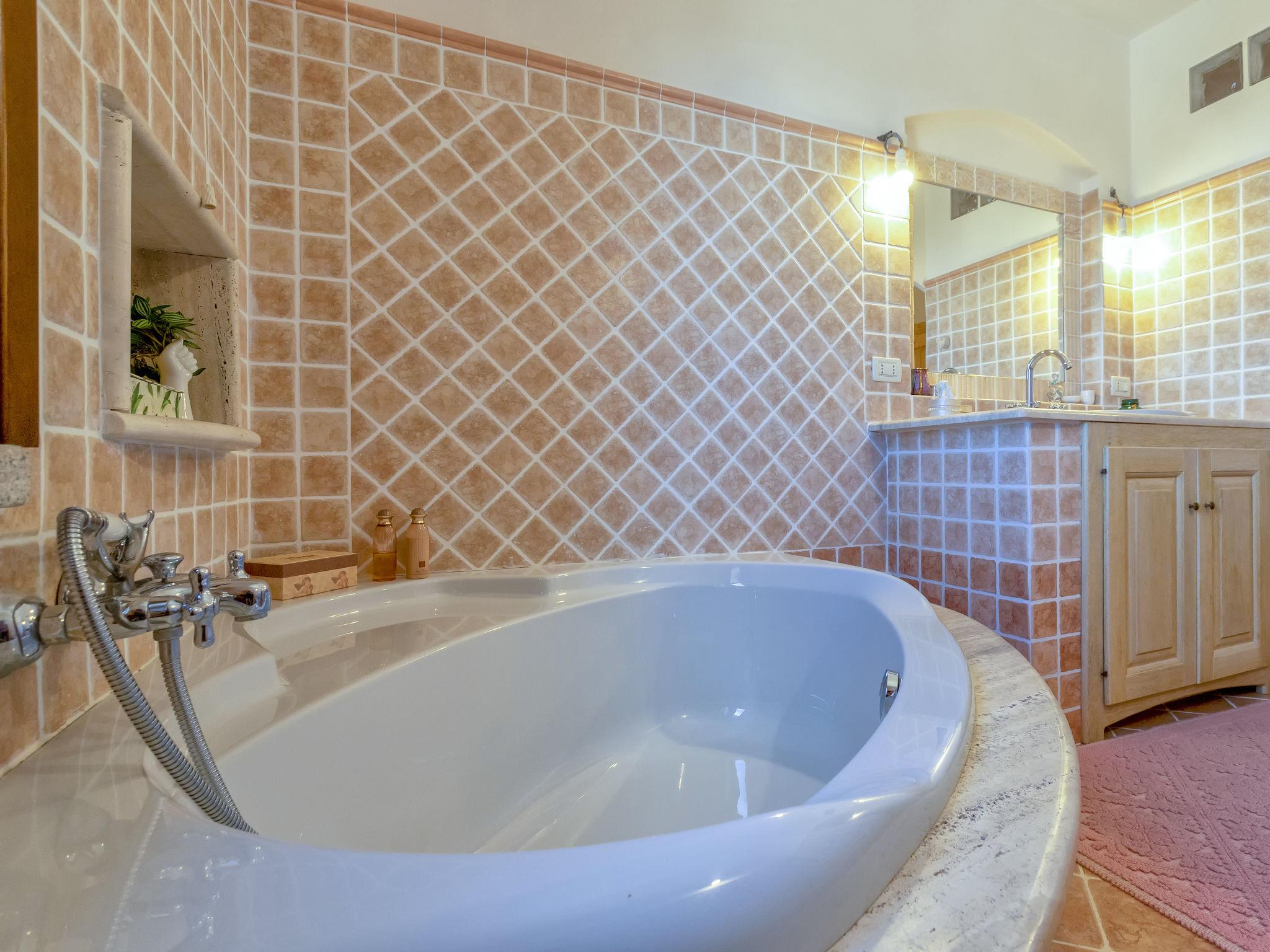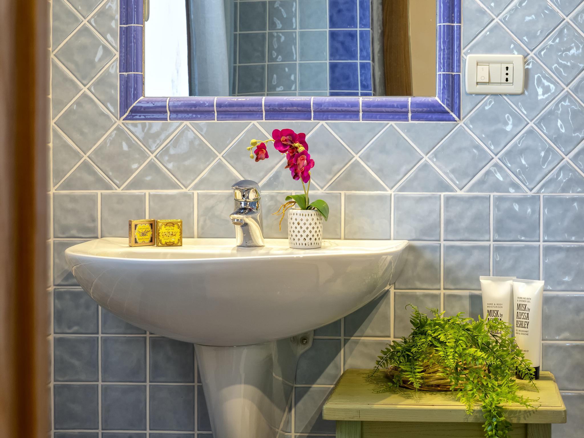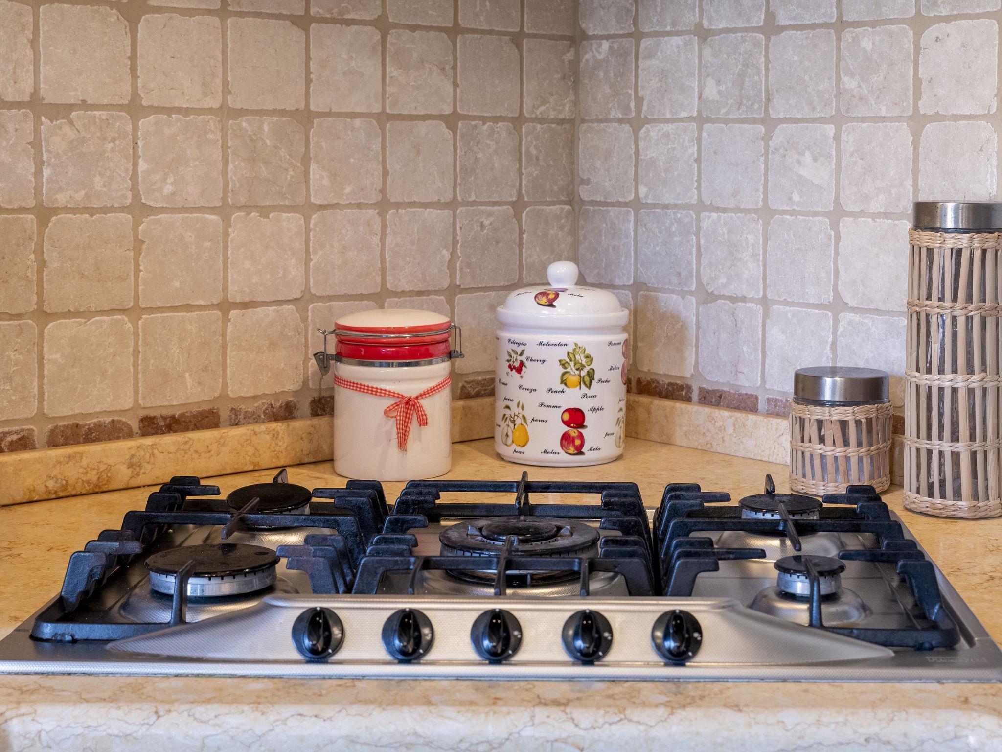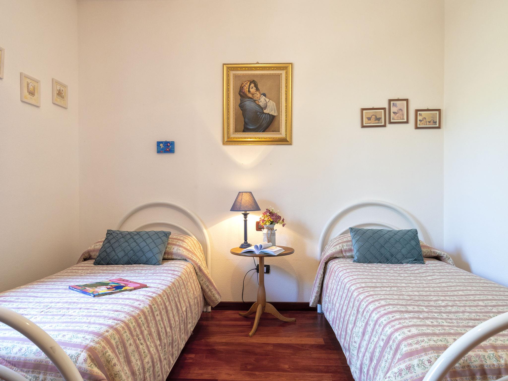 5-room house 120 m2 on 2 levels. Large living room with TV (flat screen). Exit to the patio. Kitchen-/living room (4 hot plates, oven, dishwasher, microwave, freezer). Exit to the garden. Shower/bidet/WC. Upper floor: with 1 bed and 1 double bed. Exit to the terrace. 1 children's room with 2 beds. 1 double bedroom with shower/bidet/WC and hydro massage shower. Exit to the terrace. Bath/shower/bidet/WC. No heating option. Parquet floors. Facilities: washing machine. Internet (WiFi, free). Parking. Please note: private entrance. IT090081C2000Q2777