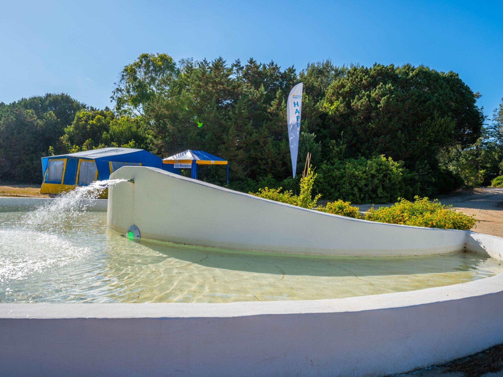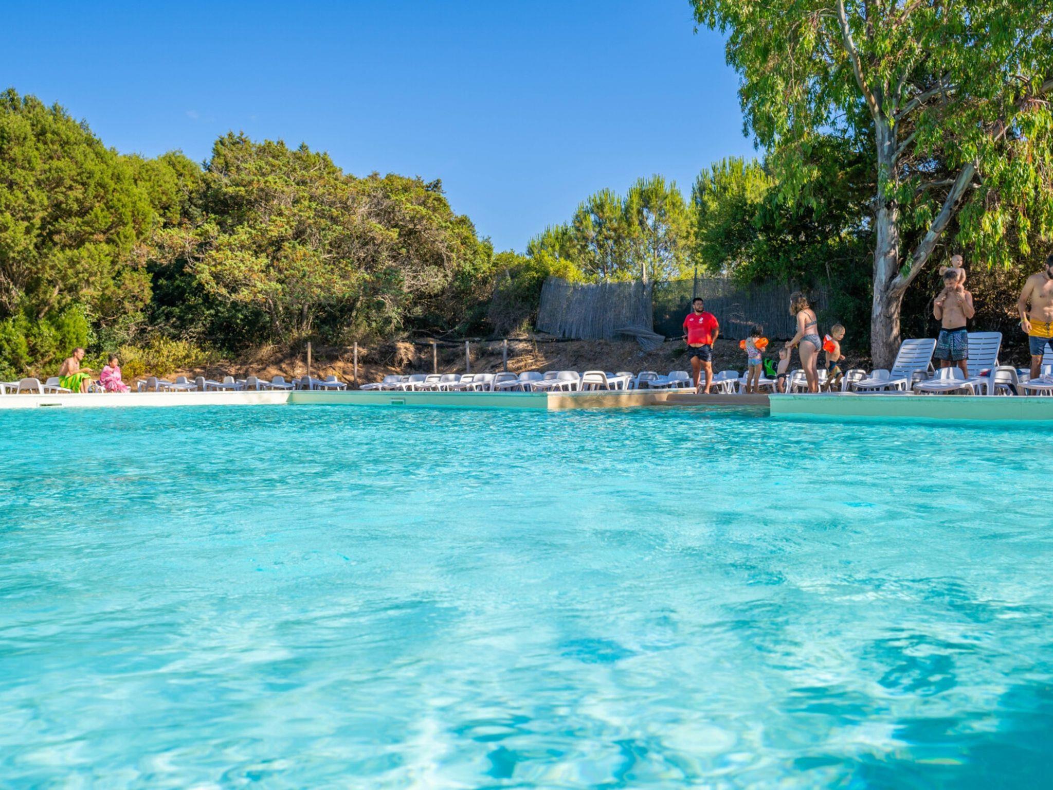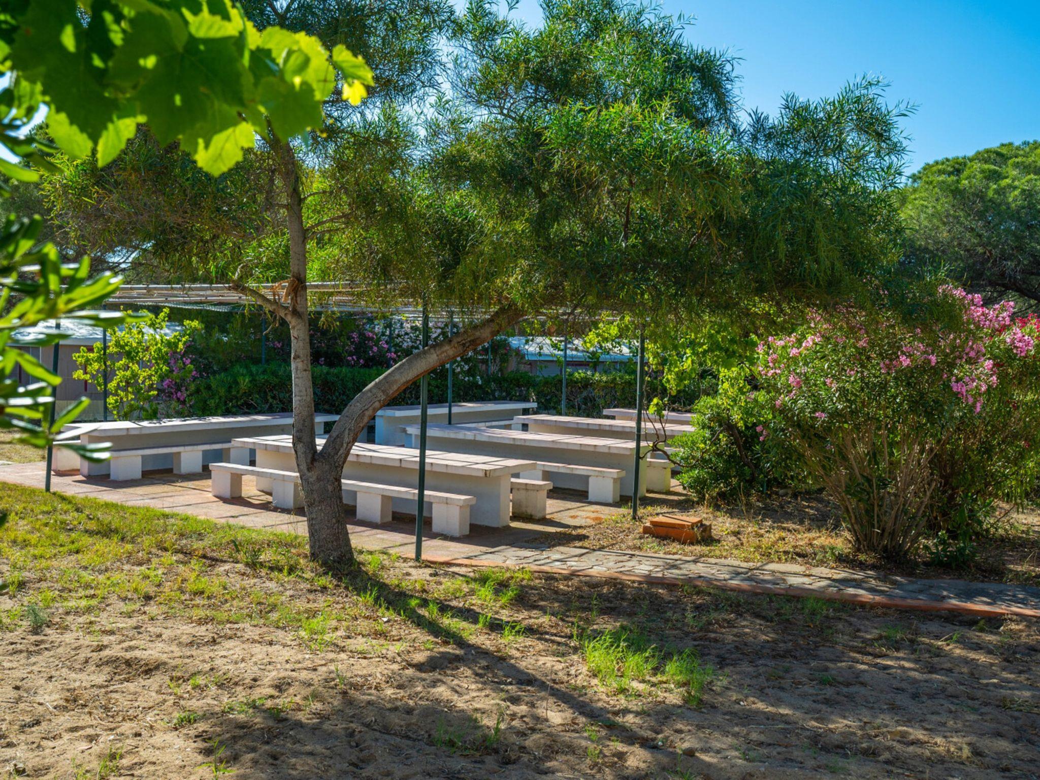 Gallura: Holiday village "Camping Baia Paradiso", surrounded by trees. Outside the resort, 3 km from the centre of Badesi, 400 m from the sea, 400 m from the beach, in the countryside. For shared use: natural state property 9 ha, 2 swimming pools (seasonal availability: 01.Jun. - 15.Sep.). Outdoor shower, table tennis, basketball, barbecue. In the complex: reception, restaurant, bar, shopping facilities, washing machine (extra) (for shared use), bicycle rental. Parking. Bus stop 3 km, sandy beach "Li Junchi" 400 m. Nearby attractions: Castelsardo 22 km, Santa Teresa di Gallura 52 km, Porto Torres 52 km, Sassari 55 km. Please note: entertainment in the season. Baby equipment on request (extra). The owner does not accept any youth groups.