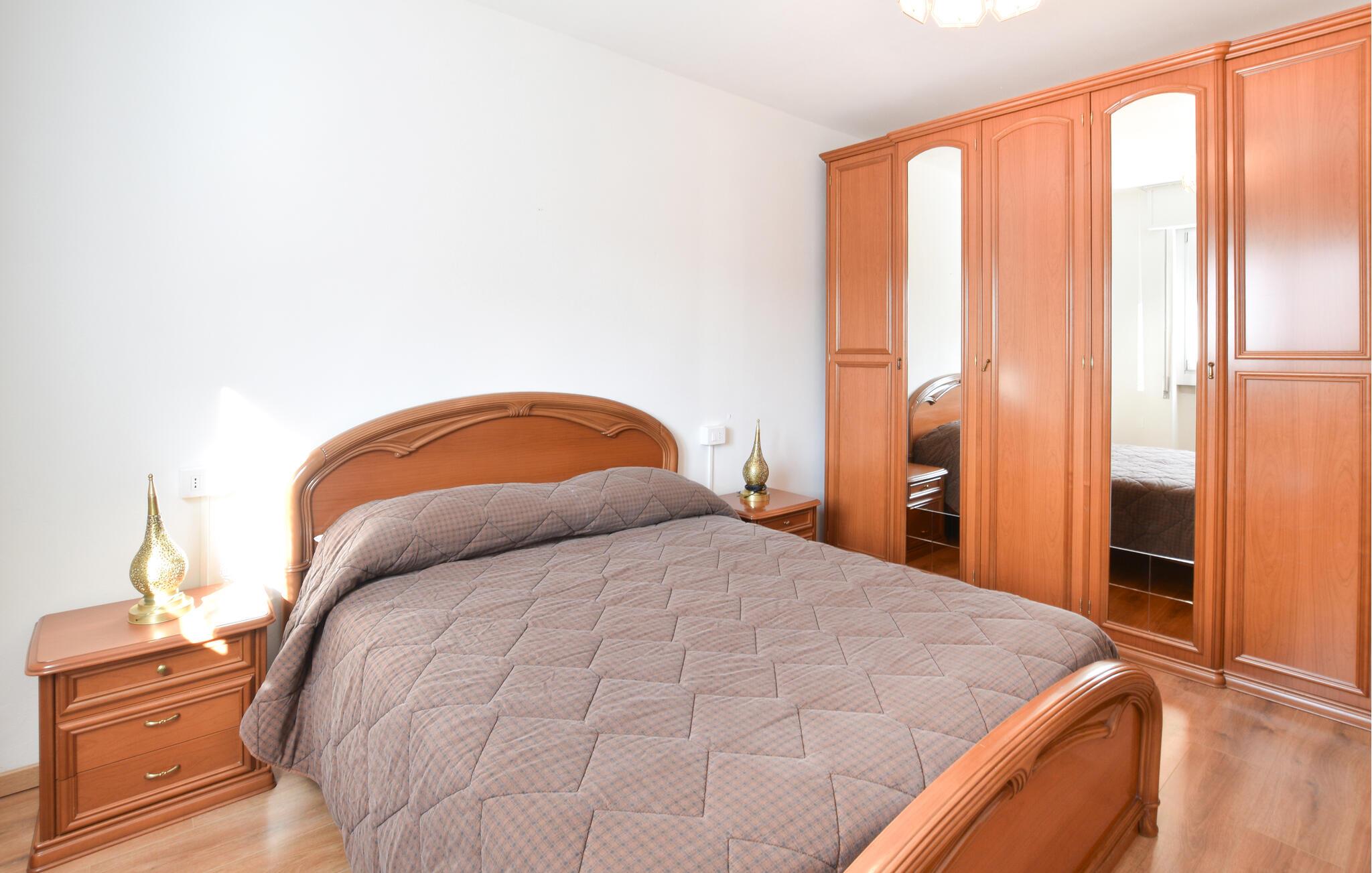 For vandreentusiaster og naturelskere tilbyder denne velholdte lejlighed, beliggende nær attraktive destinationer, den ideelle base for en varieret ferie. Tilbered lækre pastaretter, planlæg jeres udflugter sammen over afslappede måltider og nyd en pause efter en lang dag med et brætspil på den rummelige sofa.