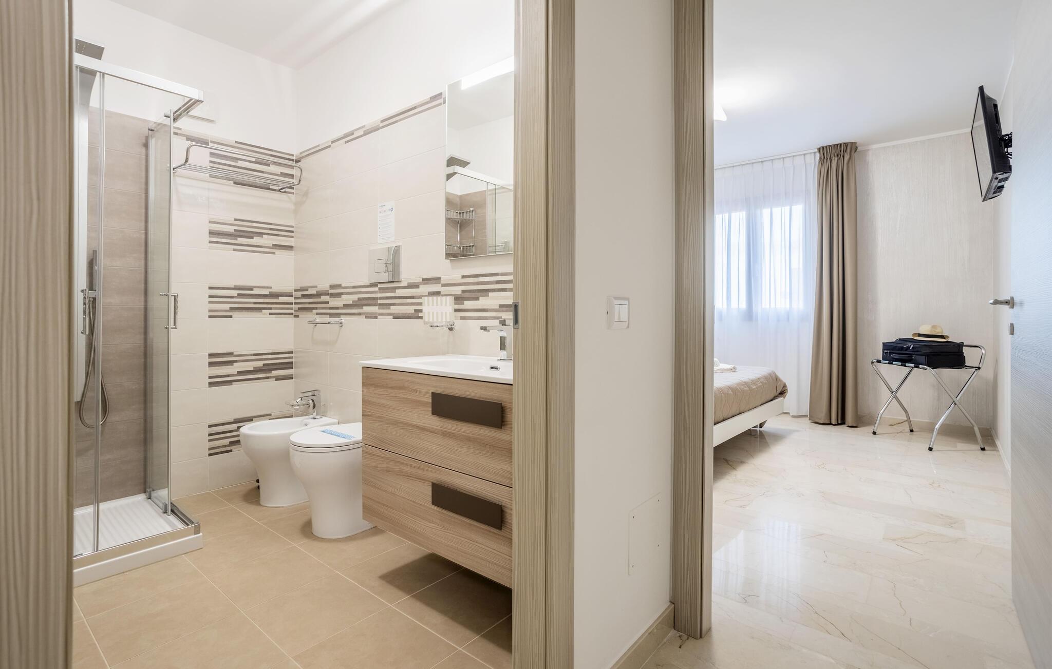 Velkommen til denne indbydende lejlighed, der har alt I behøver for at få en dejlig ferie. Lejligheden venter jer på 2. sal i et hus og er komfortabelt møbleret. Takket være aircondition er der behageligt køligt på varme sommerdage.