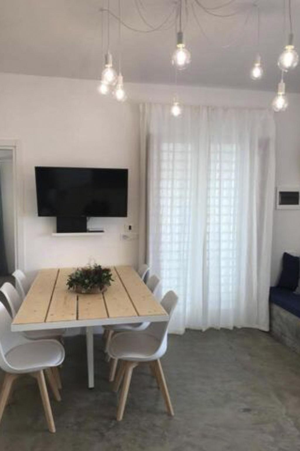 The interior of the villa is configured to offer all the comfort you need. It includes a living area where you can relax, three cosy bedrooms for a peaceful rest, and a fully equipped kitchen that includes a gas cooker, a coffee maker, a capsule coffee machine and a dishwasher to ensure a comfortable and carefree stay. There is also a washing machine for shared use, partial air conditioning to keep you cool on hot summer days, and a bathroom with a shower to cool down.