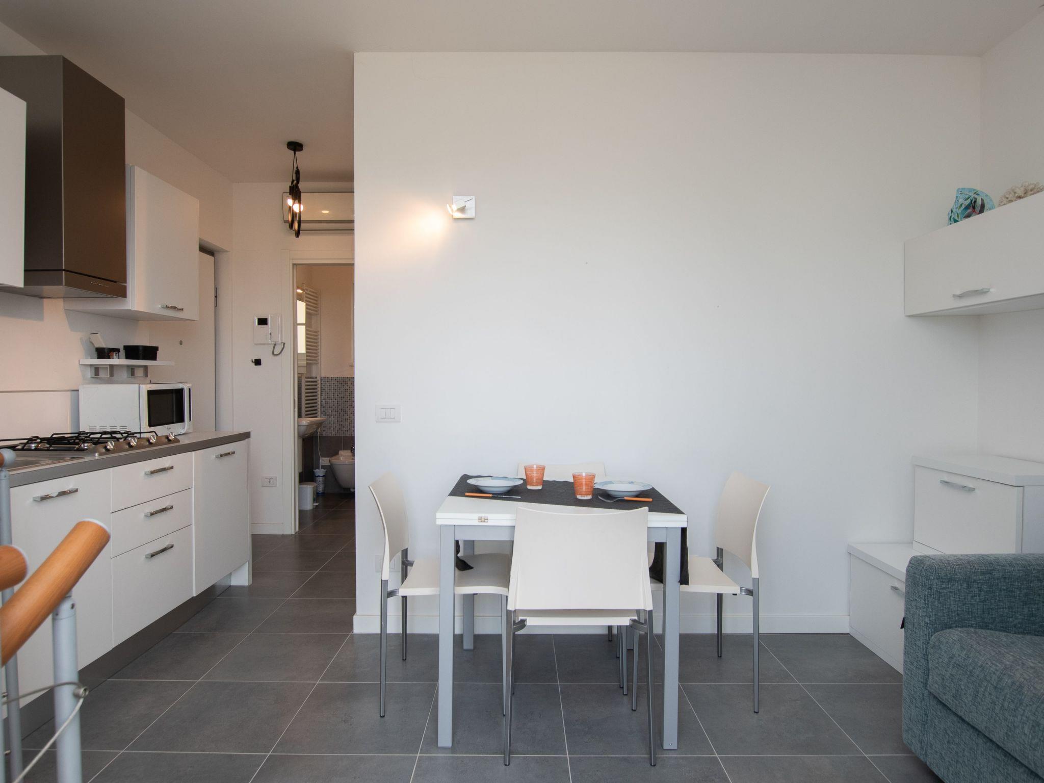 Inside, 'Dolce Rifugio' welcomes guests with an inviting open-plan space that combines elegance and functionality. The lively living area features a fully equipped kitchenette, which includes a microwave, refrigerator and everything necessary for cooking, along with a comfortable double sofa bed, TV, dining table and air conditioning, all bathed in natural light from the large outdoor terrace. The modern and functional bathroom offers a shower and all the essential amenities for a carefree stay.