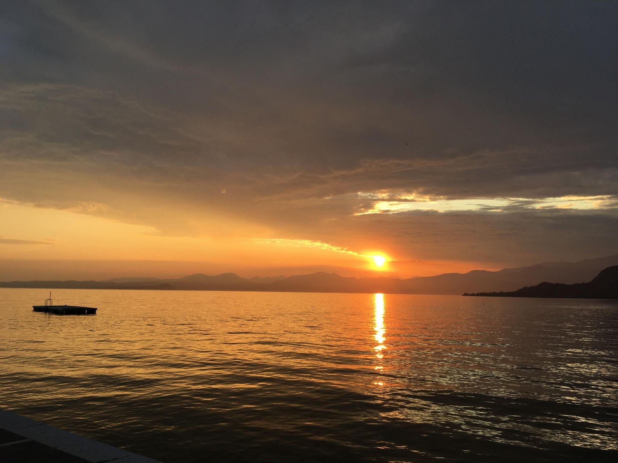 The panoramic terrace affords a grandiose view of Lake Garda. The terrace has a brick-built, open grill fireplace, lovely seating with cushions, a big table and a parasol shading the whole table. The house has window grids for your safety, also during your absence. The completely fenced garden of 600m² with a big palm tree is right in front of the terrace. Steps lead conveniently to the big shared pool, used by nine apartments and not crowded. The pool area is very well-maintained and is taken care of several times a week by a specialist company. It is open from around mid-May to the end of September. Cars can be parked conveniently and securely in the big double garage for two cars, with an electronic garage door.