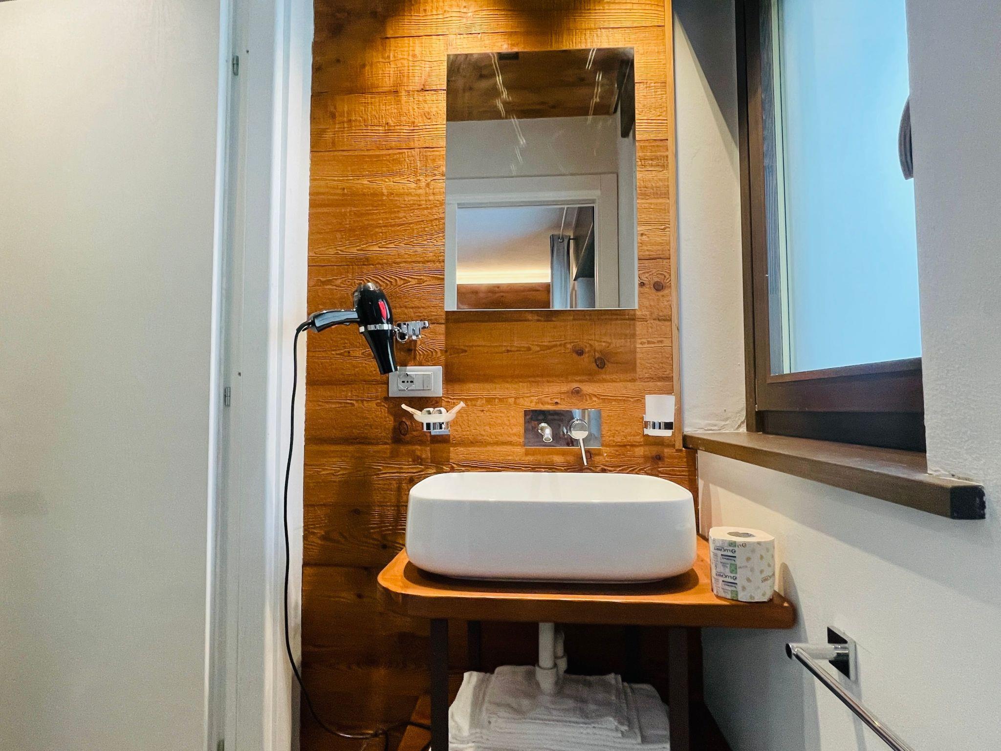 Inside, each studio apartment can accommodate up to 4 guests and extends over several floors: ground, first and second floor. Each flat is a perfect fusion of living and sleeping area, equipped with a double bed, a comfortable double sofa bed, a practical kitchenette with induction cooker, coffee maker, dishwasher and electric kettle, and a table for meals. A private bathroom with shower cubicle, hairdryer and weekly supply of towels and bed linen complete the comfort inside. For moments of relaxation, a smart TV and a washing machine for exclusive use are at guests' disposal.
