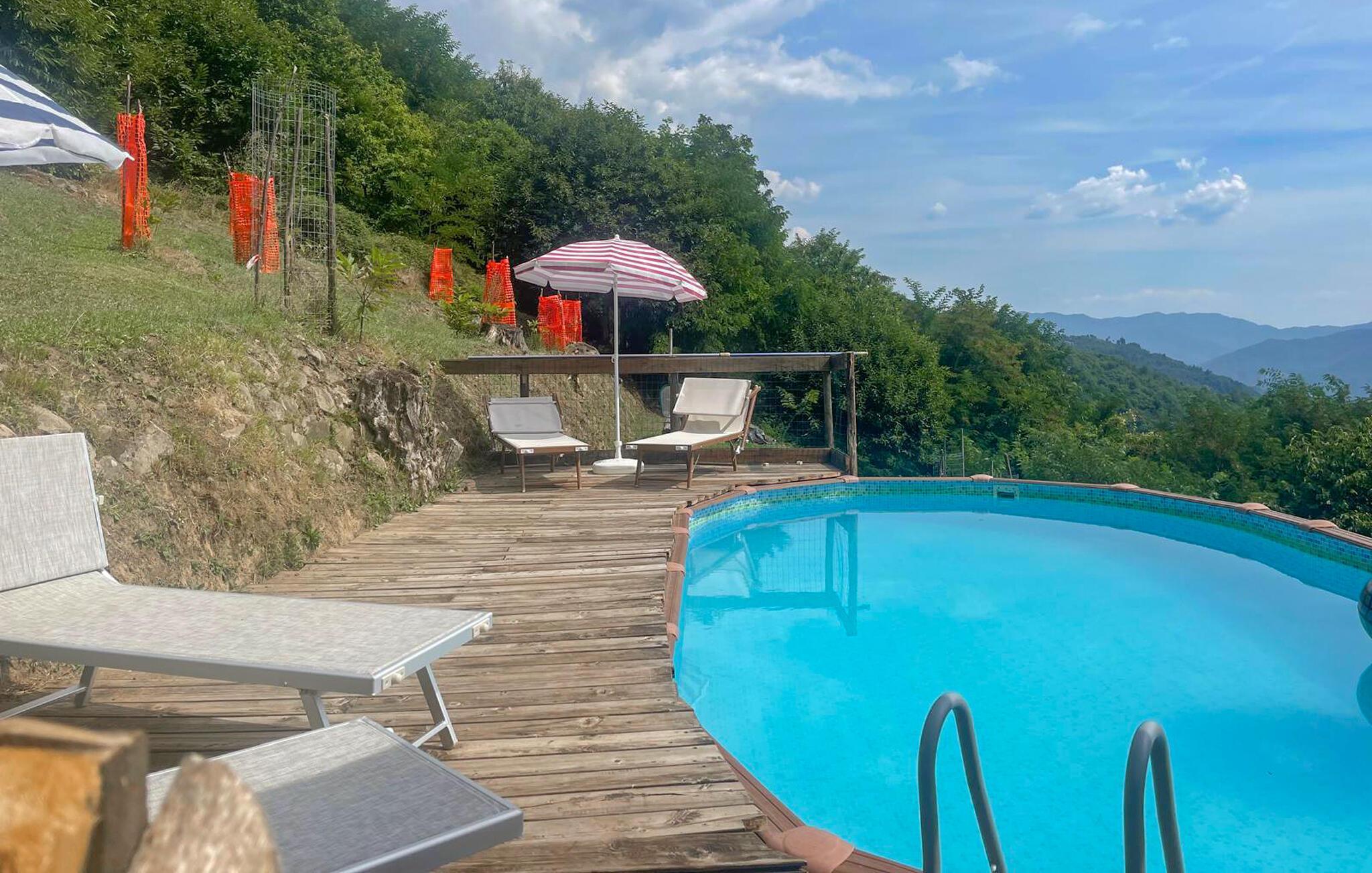 Dette afsidesliggende feriehus ligger nord for Lucca i et charmerende, kuperet landskab. Indenfor finder I hyggeligt indrettede værelser, der gør et rustikt indtryk og tilbyder de perfekte rammer for en afslappende ferie. Både inde og ude byder huset på en række gode faciliteter for store og små.