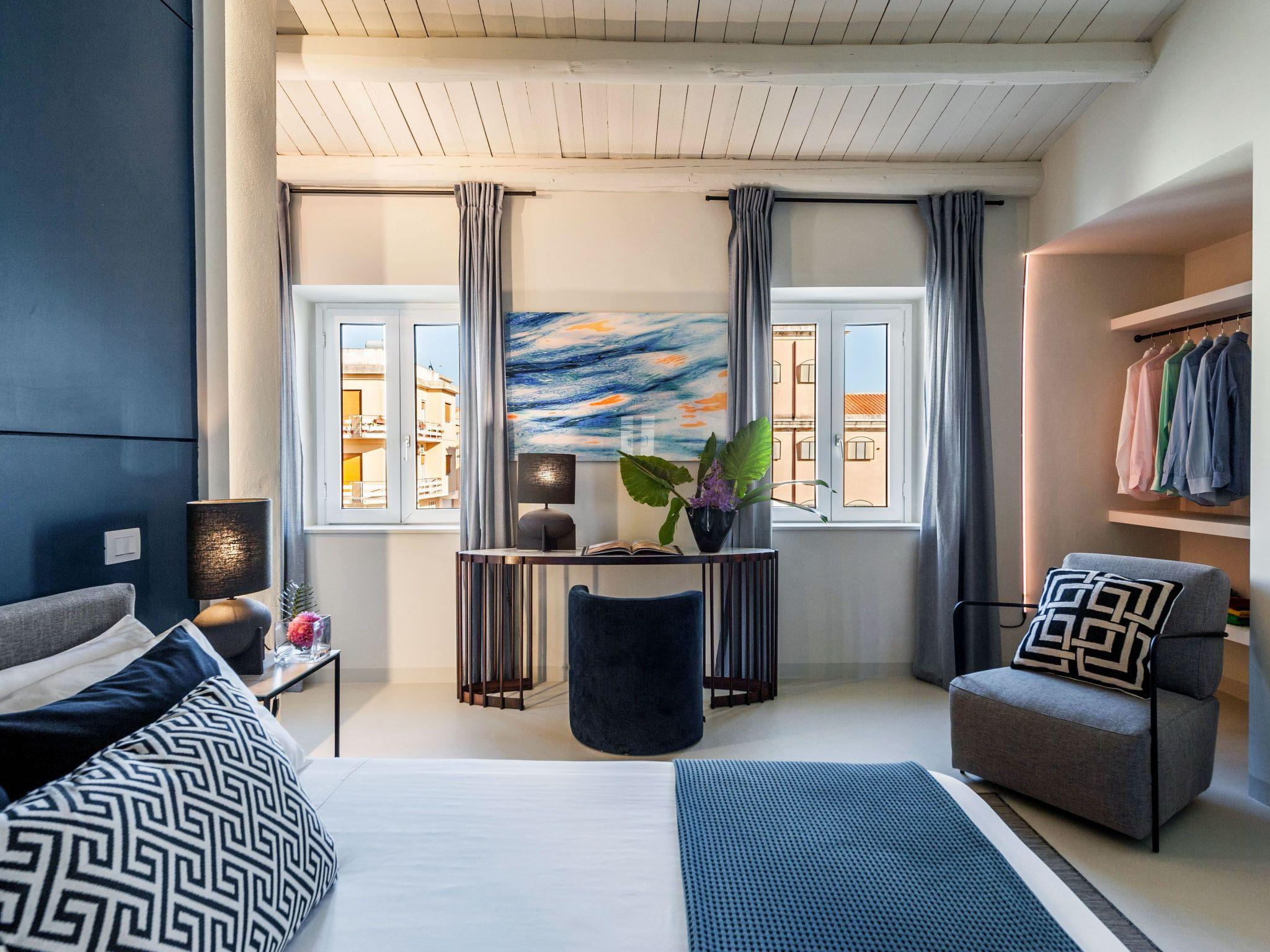 - on the second floor, the 'Blue Room', a bedroom with bathroom, which stands out for its open wardrobe and the atmosphere of serenity it exudes. Finally, the added value of Casa San Lio: the magical terrace where you can enjoy hours of relaxation and refreshment.