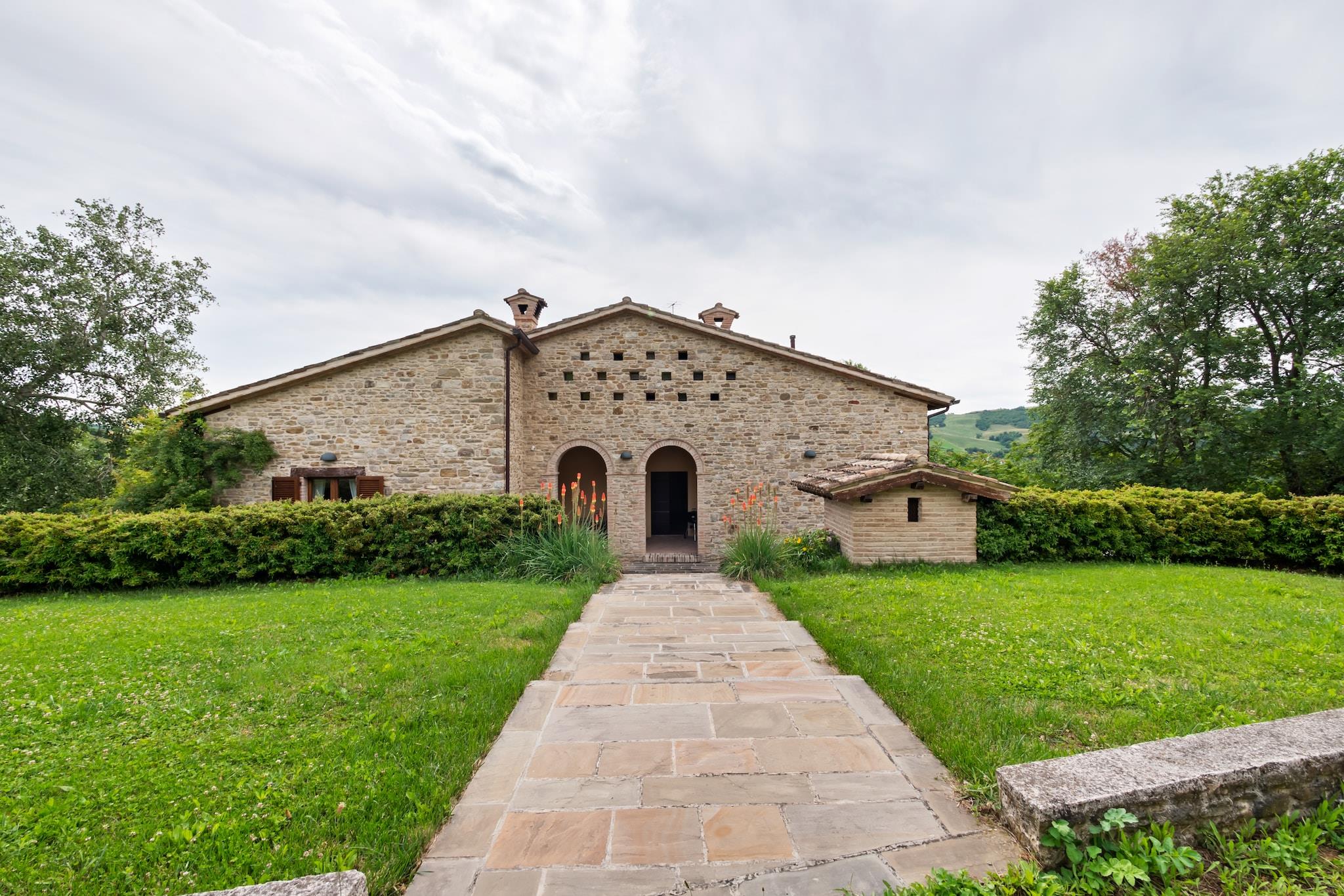 Denne villa, der ligger i Belforte all'Isauro, har plads til 15 personer fordelt på 5 soveværelser. I en oase af ro på landet vil swimmingpoolen holde dig frisk. Ideel til en familie eller en stor gruppe venner, byder dette hjem både kæledyr og børn velkommen. Nær naturparken Sasso Simone e Simoncello og det smukke slot San Leo, få km fra Toscana og Emilia Romagna. En køretur fra Republikken San Marino, er dette hjem en perfekt kombination af rustikt og nem adgang overalt. Den smukke eventyrpark, Carpegna Park, ligger få km væk og er et sjovt sted at dyrke vandreture, mountainbiking og mange andre aktiviteter i naturparken. Poolens dimensioner er en meter og fyrre centimeter (1,40). Poolen er 13 meter lang og 5 meter bred. Haven har udsigt over landskabet i Marche, samt en bowlingbane til sjov med familie og venner. Dette hjem har en smuk verandaindgang, hvorunder du finder pizzaovnen og grillen. Huset er jordskælvssikkert og Det veludstyrede køkken sikrer, at du kan prøve alle de opskrifter, du har i tankerne. For at forbedre dit ophold byder villaens grund på en stor swimmingpool, en bocciabane og spil som bordfodbold og bordtennis. Den rummelige have er udstyret med udendørs spiseborde og stole med plads til cirka 20 personer til store gruppemåltider. For ro i sindet er villaen jordskælvssikret og leverer drikkevand.