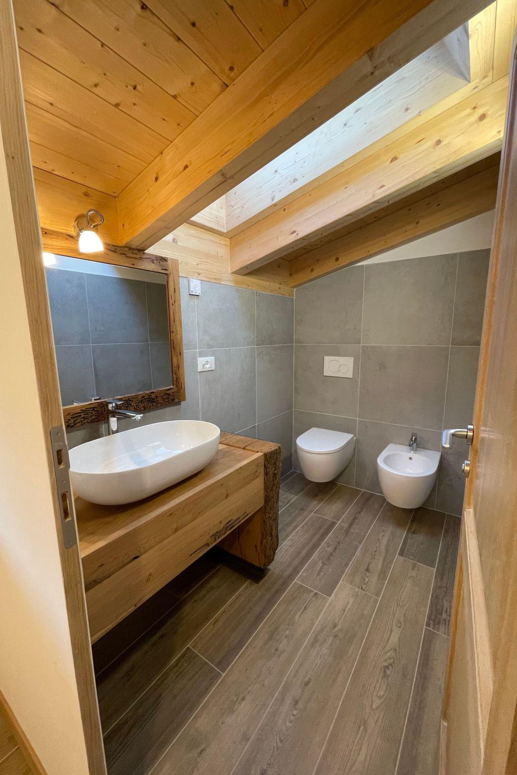 On the first floor there is a large 50sqm open space with living room, dining area, well-equipped kitchen and a bathroom. In addition there is a large balcony with a view of the lake and mountains