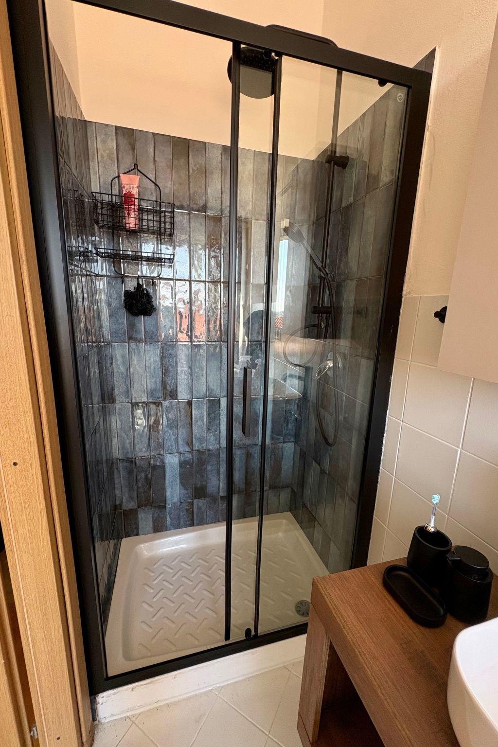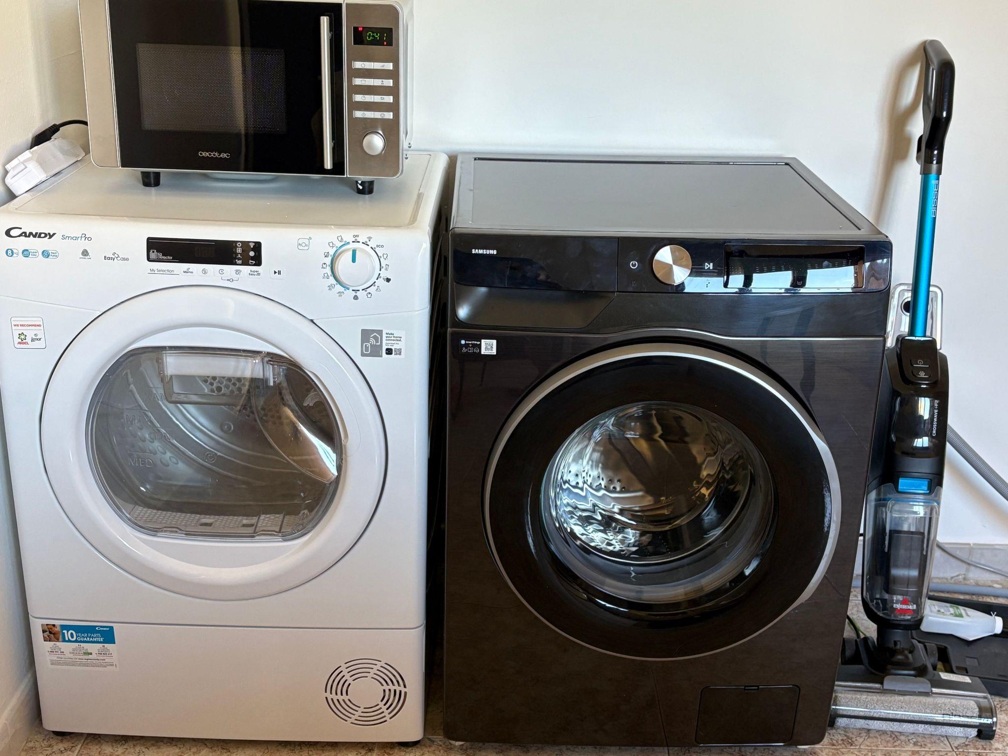 Inside, the flat has 100 m² of finely furnished living space with two bedrooms and two spacious living rooms equipped with sofa beds to comfortably accommodate families or groups. The modern, fully equipped kitchen, together with a bathroom with shower, ensures a highly comfortable stay. The home experience is complemented by conveniences such as a Samsung AI washing machine, Candy tumble dryer, Bissell hoover, Wi-Fi, towels, bed linen, crockery and a Samsung 65" Crystal UHD 4K Smart TV for movie nights at home.
