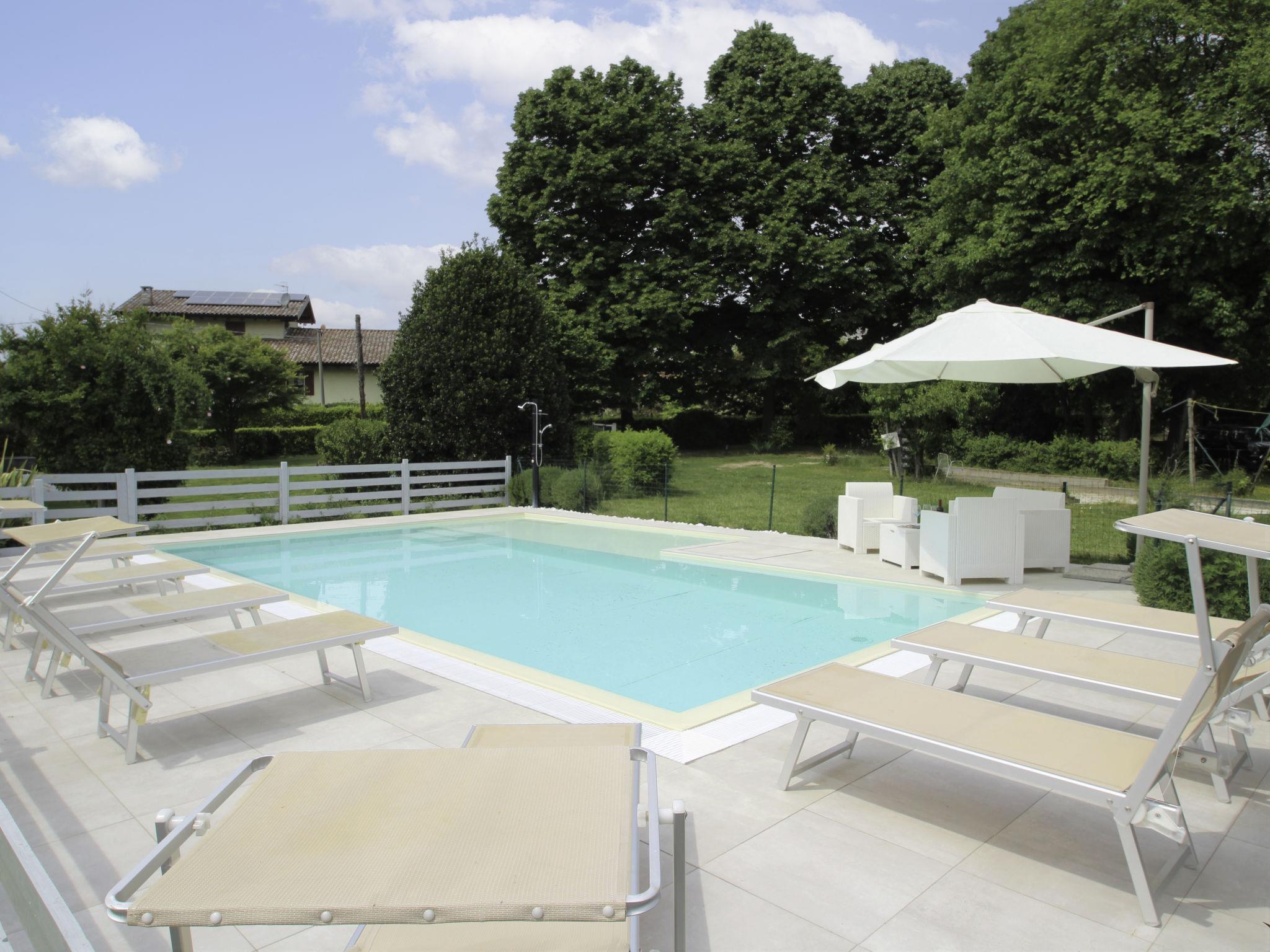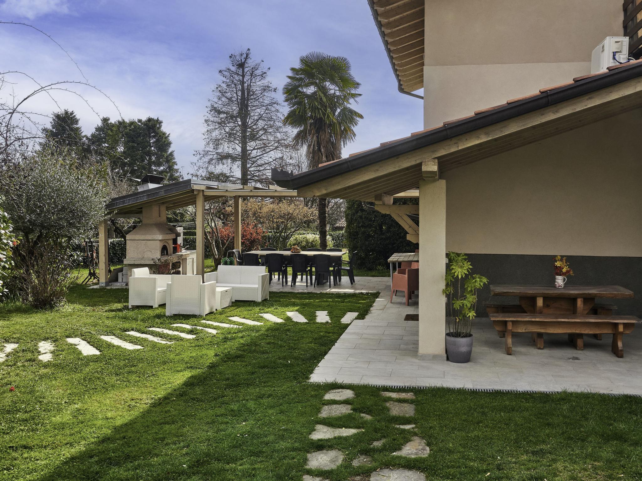 Modern villa "Giuseppina". 2 km from the centre of Besozzo, 8 km from the centre of Ispra, residential area (villas), 5 km from the lake. Private: garden 1'000 m2 (fenced) with lawn and trees, swimming pool (9 x 4 m, depth 140 - 160 cm, seasonal availability: 15.Apr. - 30.Oct. pool opening hours: 09:00-20:00). Outdoor shower, hot tub, boules, garden furniture, barbecue house, pool maintenance by the owner/gardener. Motor access to the house. Parking (for 2 cars) at the house. Shopping centre 5 km, restaurant 1.5 km, bar 1.5 km, bus stop 1 km, railway station "Besozzo" 2 km. Nearby attractions: Santa Caterina del Sasso 9 km, Chiostro di Voltorre 8 km. Well-known lakes can easily be reached: Varese 5 km, Maggiore 5.5 km, Monate 7.5 km. Please note: car recommended. The hot tub has 4 seats and is located in the pool area.