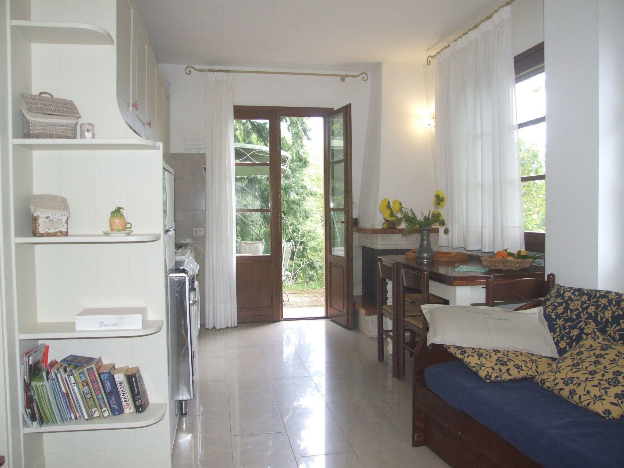Moon is a flat located on the ground floor of a villa with a large garden and swimming pool, surrounded by greenery. The flat consists of a living room with a double sofa bed, a kitchenette and a dining area. From the living area there is direct access to the garden equipped with wrought iron tables, chairs and sofa, barbecue and outdoor shower. Moon has one bedroom with a double bed and a single bed and a bathroom with shower. The flat is particularly cosy with curtains and cushions that make outdoor living particularly pleasant. In the living room, a door divides the Moon flat and the Star flat, which can be connected on request. It is possible to use the swimming pool shared with the guests of the Villa and Villa Il Cipresso. Moon is located in the hills of Sassetta, in the calm and tranquillity of the countryside. It is about 800 metres from the centre of Sassetta and 12 km from the sea at Castagneto Carducci. Guests have free access to a botanical garden and a private beach located 17 kilometres from the Villa.