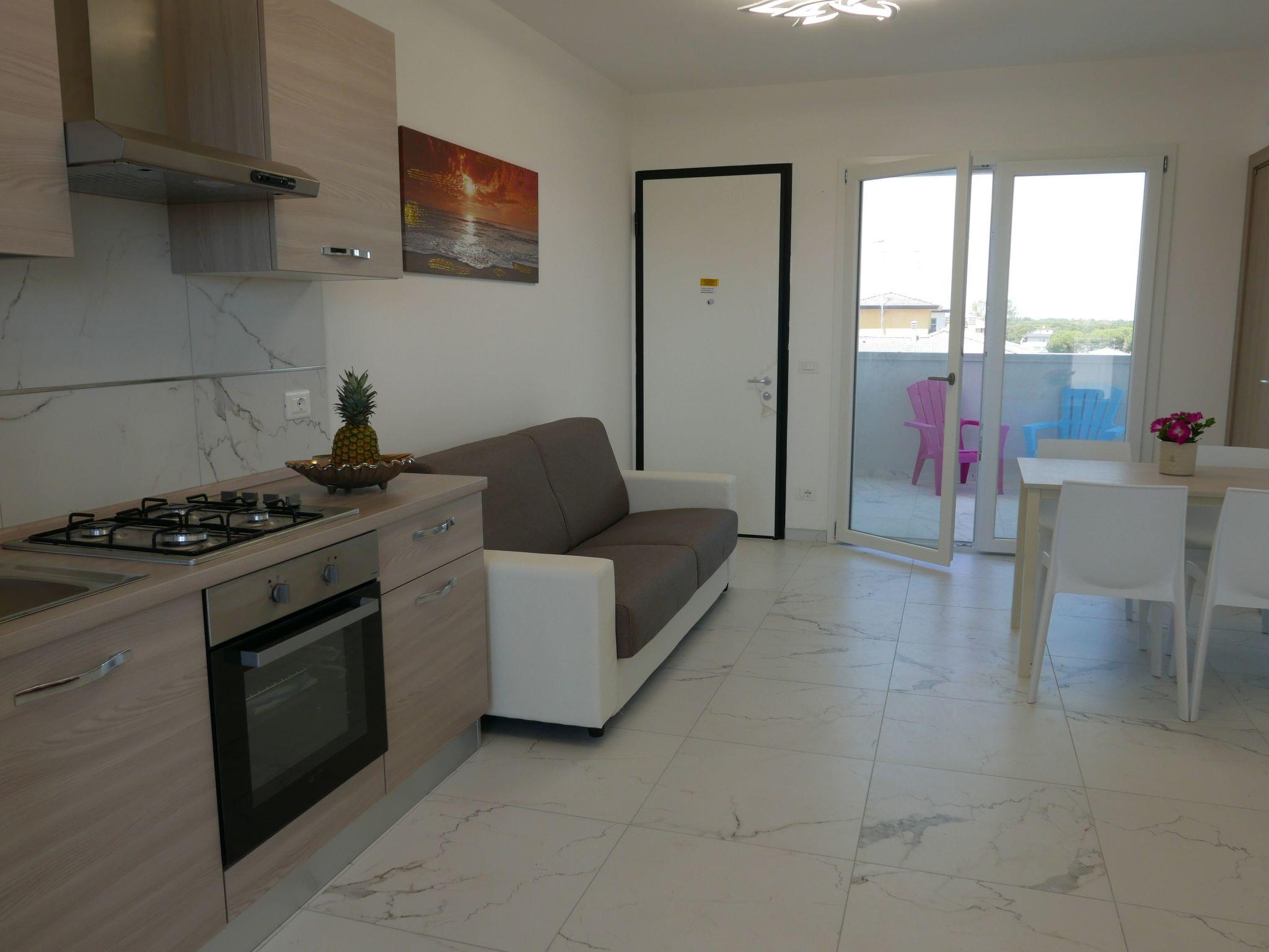 Our residence with studio apartments is located within walking distance of the centre. Its strategic location allows you to reach the beach with a short walk of only 500 metres, thus combining the pleasure of days at the beach with the fun of nights in the city.
